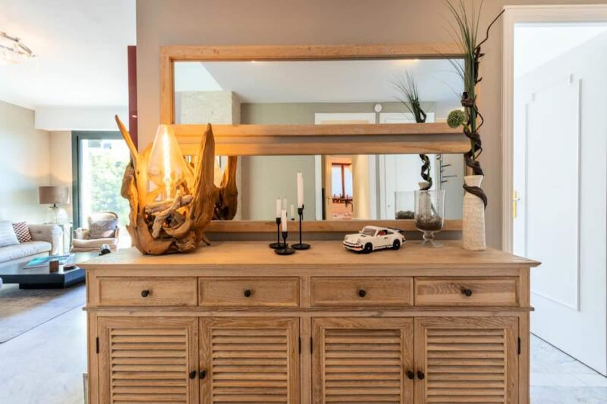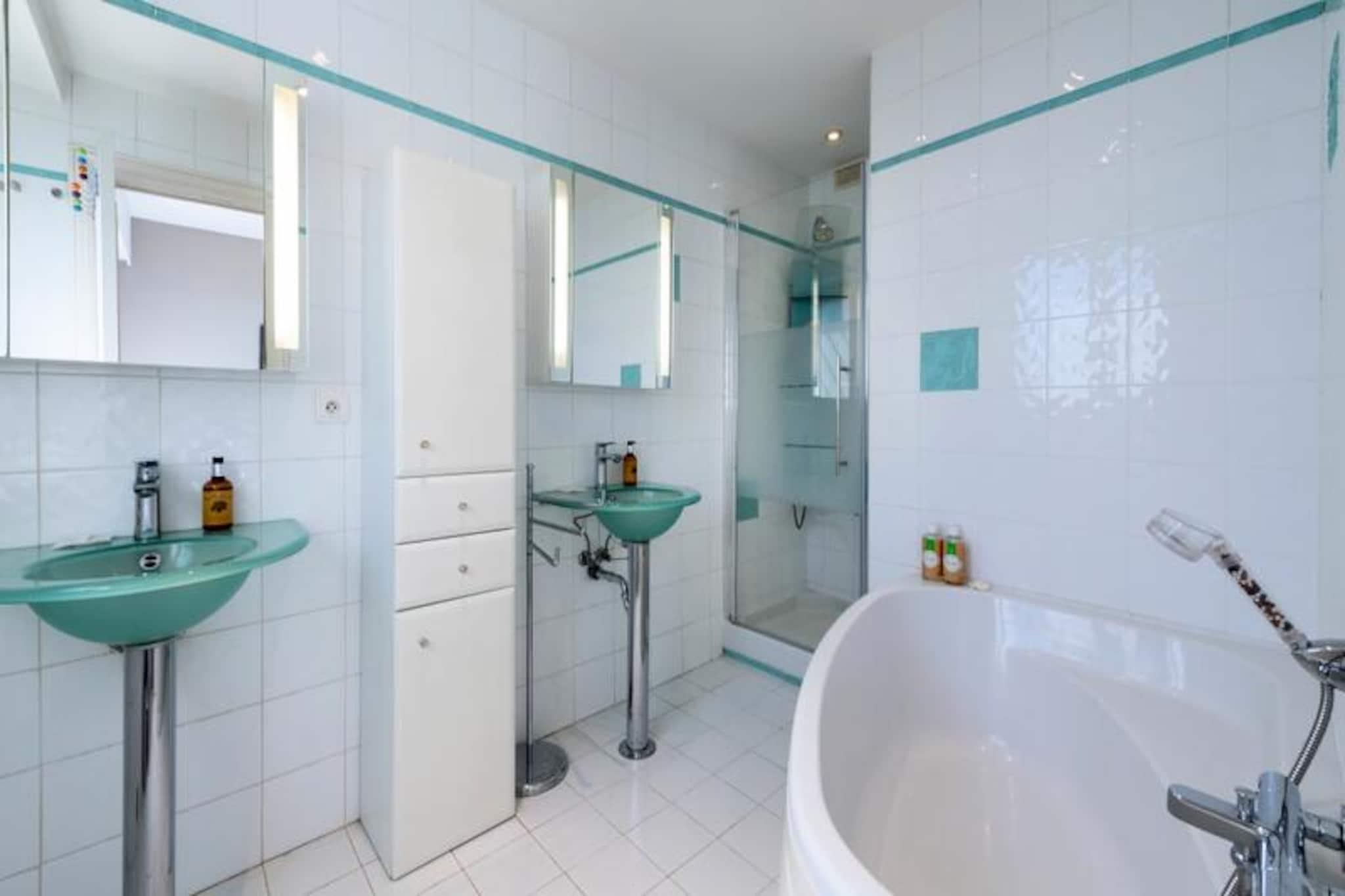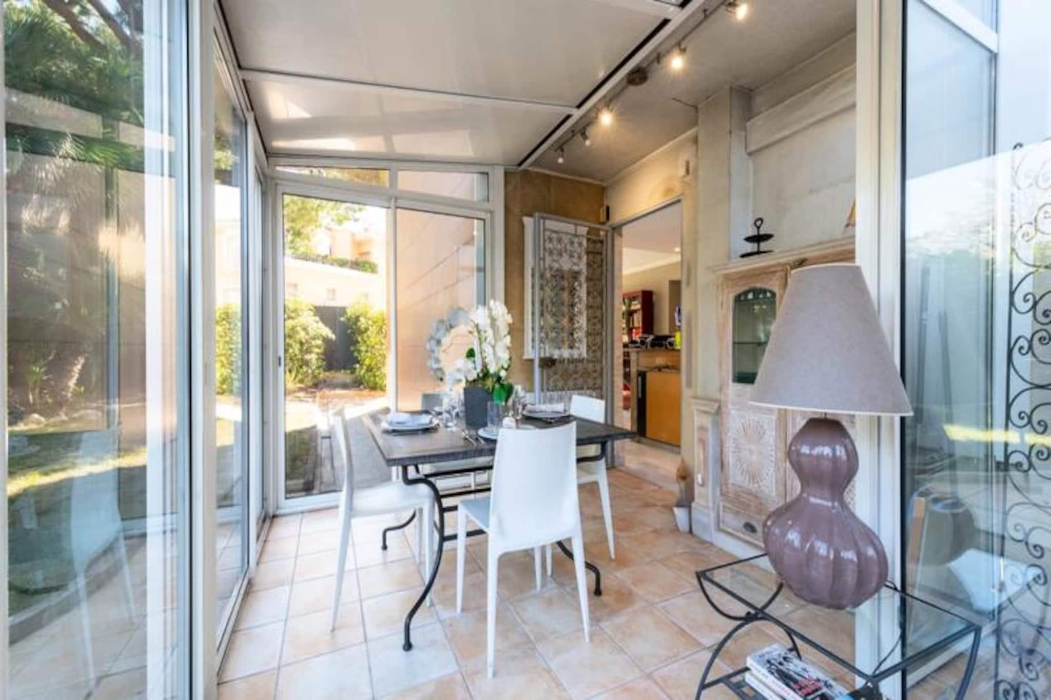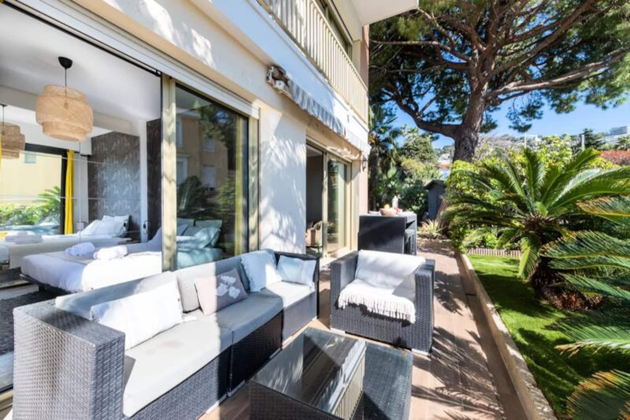Væk dine sanser i hjertet af Cannes, hvor det glitrende Middelhav møder det pulserende Palm Beach-distrikt. Denne forhøjede lejlighed i stueetagen tilbyder et roligt tilflugtssted omgivet af frodigt grønt og betagende havudsigt. Forestil dig morgener med at nippe til kaffe ved din private pool, eftermiddage med afslapning i havens skygge og aftener med at spise udendørs under den varme Riviera-himmel. Her sænker livets rytme farten og inviterer dig til at omfavne den afslappede elegance på Côte d'Azur. \n\nTræd indenfor for at opdage et lyst og luftigt opholdsrum, der problemfrit blander komfort og stil. Det åbne køkken er fuldt udstyret og perfekt til at tilberede friske lokale delikatesser, mens stuen åbner ud til en veranda, der strækker sig ud i den østvendte have. Tre rummelige soveværelser, hver med queensize-senge, sikrer afslappende nætter. To af soveværelserne har direkte adgang til haven, hvoraf det ene har et eget badeværelse med dobbelt håndvask. Moderne bekvemmeligheder såsom reversibel aircondition og Wi-Fi sikrer et behageligt ophold året rundt. \n\nBare en kort gåtur væk venter Palm Beachs gyldne sandstrand sammen med charmerende strandrestauranter og den glamourøse Port Pierre Canto. Gå en tur langs den ikoniske Boulevard de la Croisette, eller udforsk den pulserende Rue d'Antibes for luksusshopping og livlige caféer. For en smag af historie tilbyder Le Suquet-distriktet smalle gader, hyggelige spisesteder og det travle Forville-marked. Eventyrlystne kan nyde vandsport eller tage en færge til de rolige Lérins-øer. \n\nUanset om du søger afslapning, udforskning eller forkælelse, er denne ejendom din port til det bedste af Cannes. Lad Rivieraens tidløse charme og ubesværede sofistikation skabe minder, der vil vare hele livet.