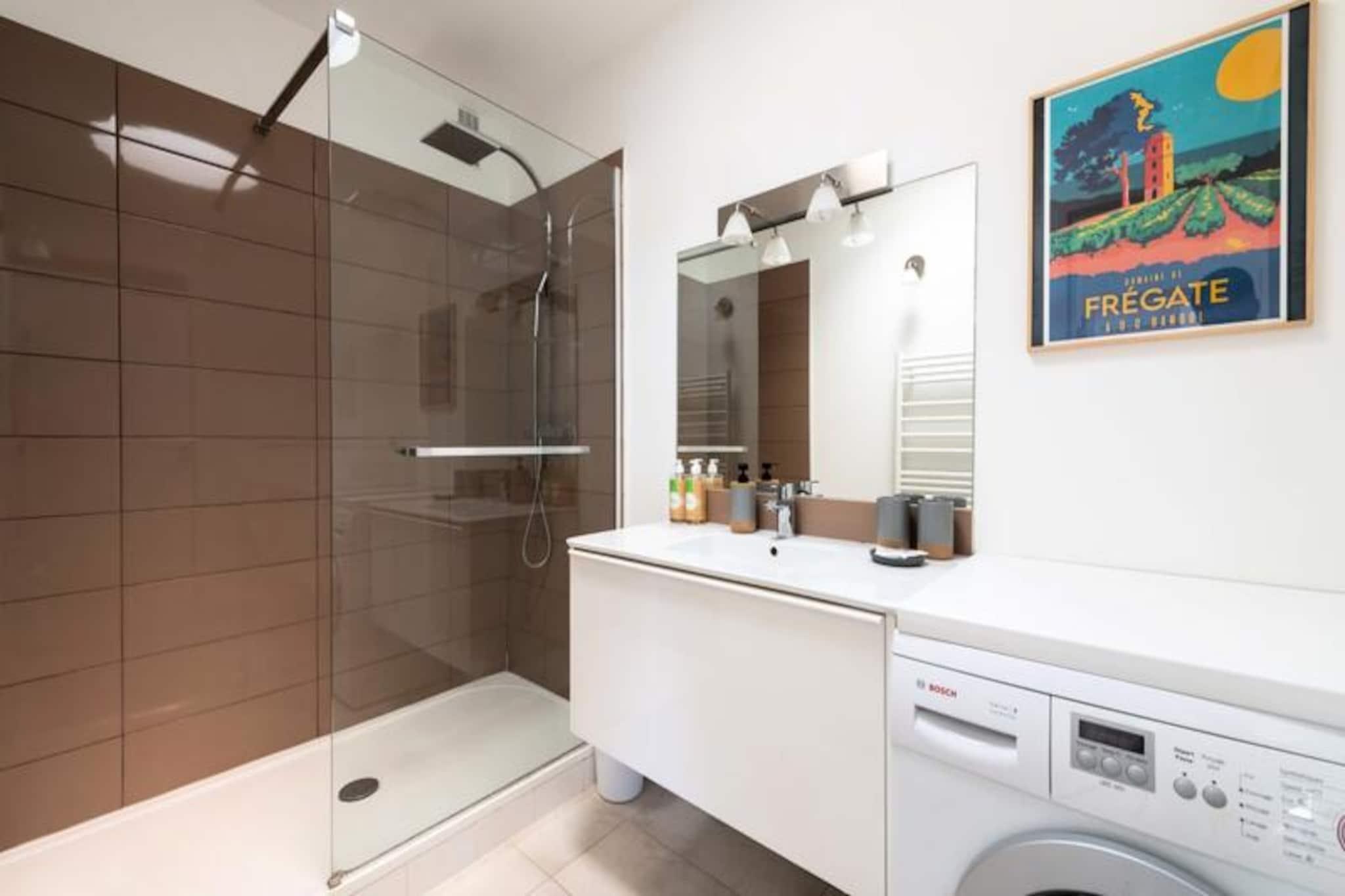 Forestil dig selv på øverste etage i en fredfyldt bolig, hvor gyldne solnedgange maler himlen, mens du slapper af på en rummelig vestvendt terrasse. Med en forfriskende drink i hånden sætter den blide middelhavsbrise den perfekte tone for en afslappende ferie. Her flyder dagene ubesværet mellem afslappende morgenmad i solen, rolige gåture gennem Cannes og aftener tilbragt med stjernekiggeri i den varme glød fra den franske riviera. Dette er mere end bare et ophold; det er en livsstil. Træd ind i et lyst og indbydende opholdsrum, hvor naturligt lys strømmer ind gennem franske døre og forbinder indendørsområdet med den store terrasse. Det åbne køkken, komplet med en central morgenmadsbar, er perfekt til at tilberede måltider, mens du deler øjeblikke med dine kære. Soveværelset, der har en blød queensize-seng, tilbyder direkte adgang til terrassen, så du kan vågne op til de bløde nuancer af morgenlys. Et ovenlysbrusebadeværelse tilføjer et strejf af elegance, mens et separat toilet sikrer bekvemmelighed. Moderne bekvemmeligheder som reversibel aircondition og Wi-Fi forbedrer din komfort, og en privat garage tilbyder sikker parkering. Denne lejlighed ligger i Pointe Croisette-området og er perfekt placeret til at udforske Cannes. De familievenlige strande Mouré Rouge og Gazagnaire ligger kun en kort gåtur væk og byder på roligt vand og solrigt sand. Gå en tur til Port Pierre Canto for at beundre luksusyachter eller nyd en drink ved havnefronten. Den ikoniske La Croisette med sine luksuriøse butikker og filmiske charme er inden for rækkevidde, ligesom den pulserende Rue d'Antibes, hvor man kan shoppe. For et strejf af naturen kan du tage en færge til Lérins-øerne, et skjult paradis af fyrretræer og krystalklare bugter. Uanset om du er her for glamouren ved Cannes Film Festival eller et fredeligt tilflugtssted ved havet, tilbyder denne ejendom den perfekte blanding af afslapning og Riviera-tiltrækning. Lad Cannes' charme fortrylle dig fra denne idylliske base.