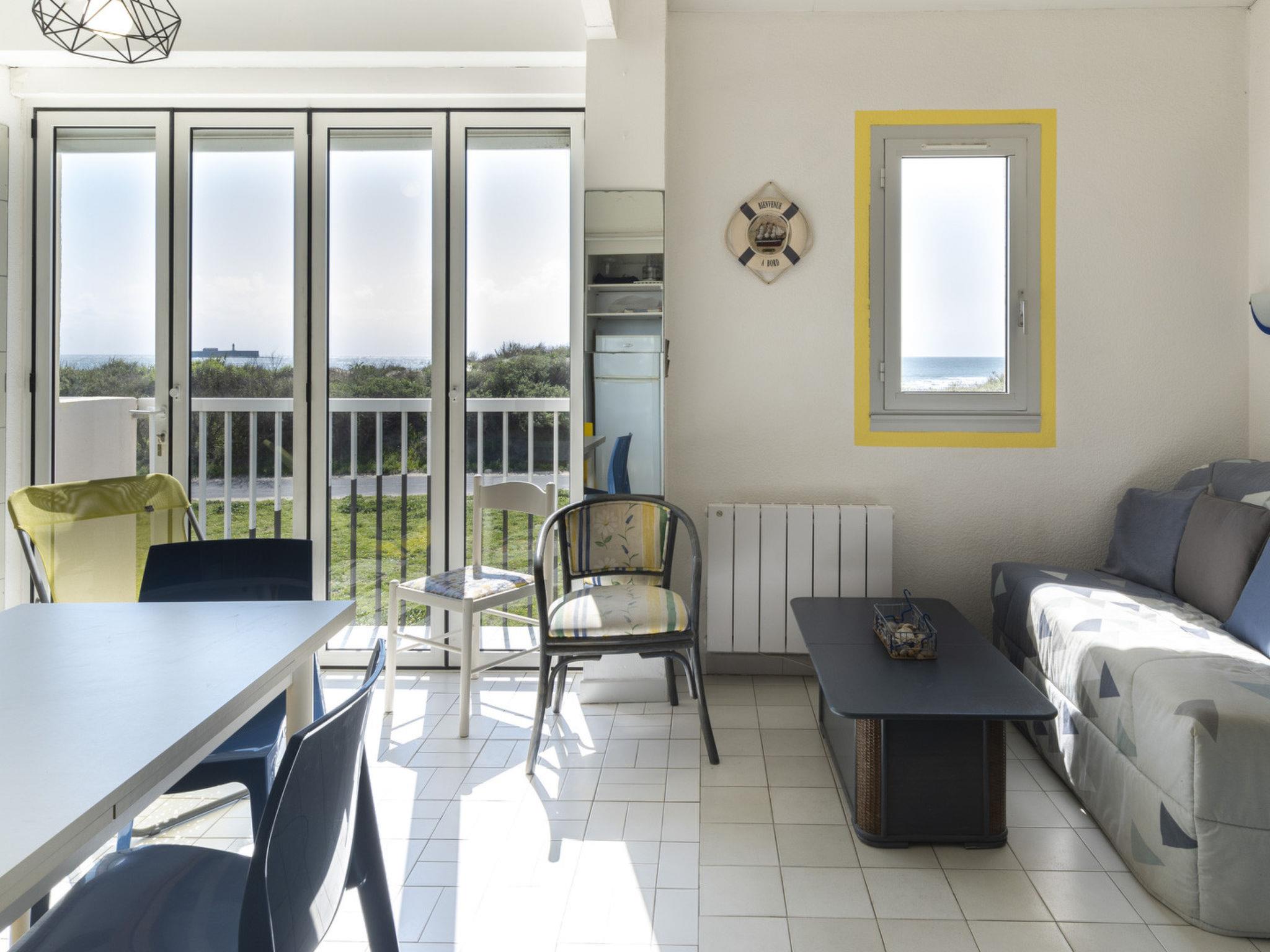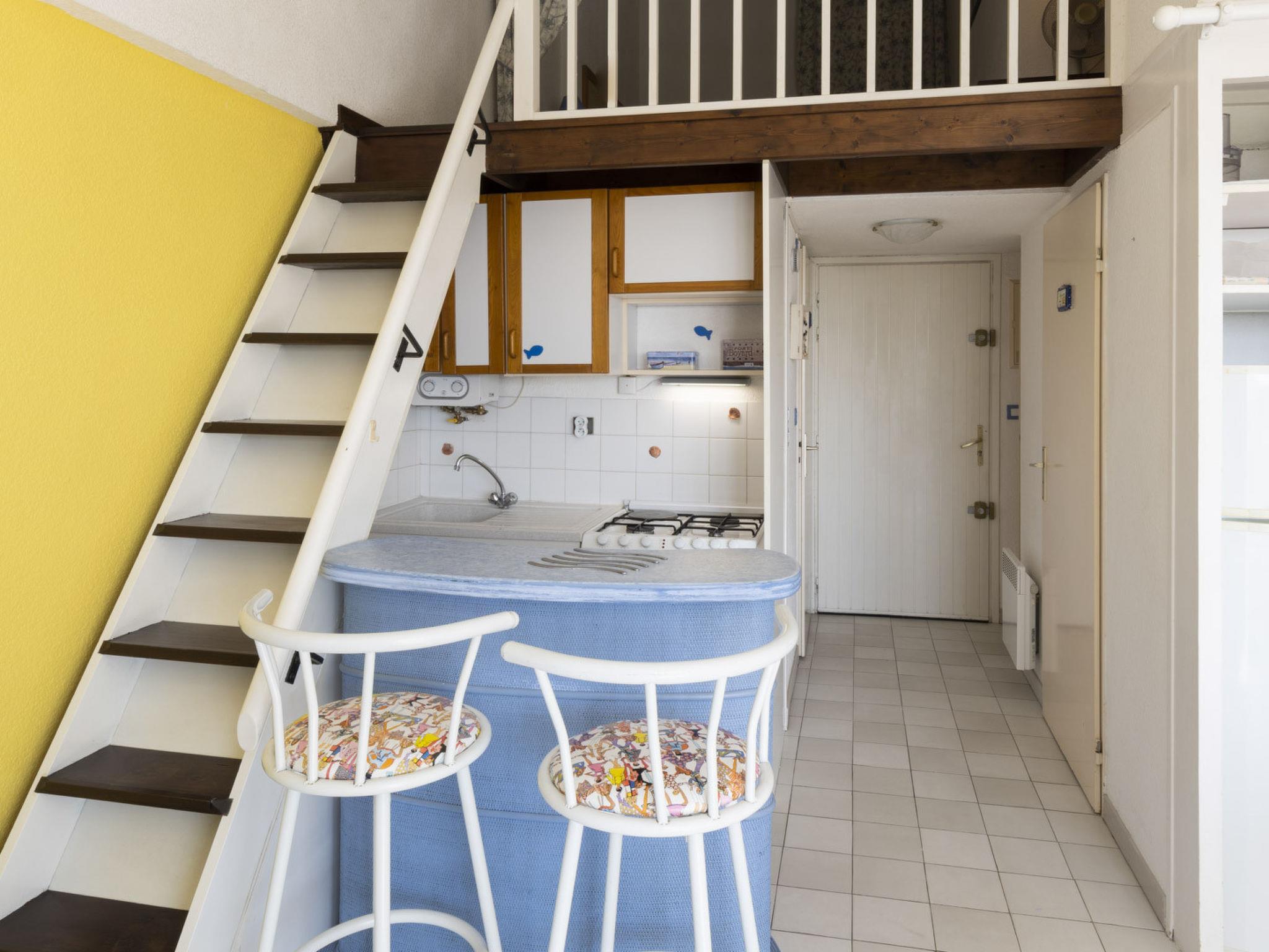 "Aquaplage B", 1-room studio 35 m2 on 1st floor. Object suitable for 5 adults. Living room with 1 sofabed and 1 x 2 bunk beds, 1 double bed, 1 pull-out bed and TV. Kitchen (dishwasher, 2 induction hot plates, toaster, microwave, freezer, electric coffee machine). Shower/WC. Balcony. View of the sea. Facilities: washing machine. Parking (1 car). Please note: non-smokers only. Smoke alarm. Offer by a commercial proprietor according to Art. 155, IV, CGI