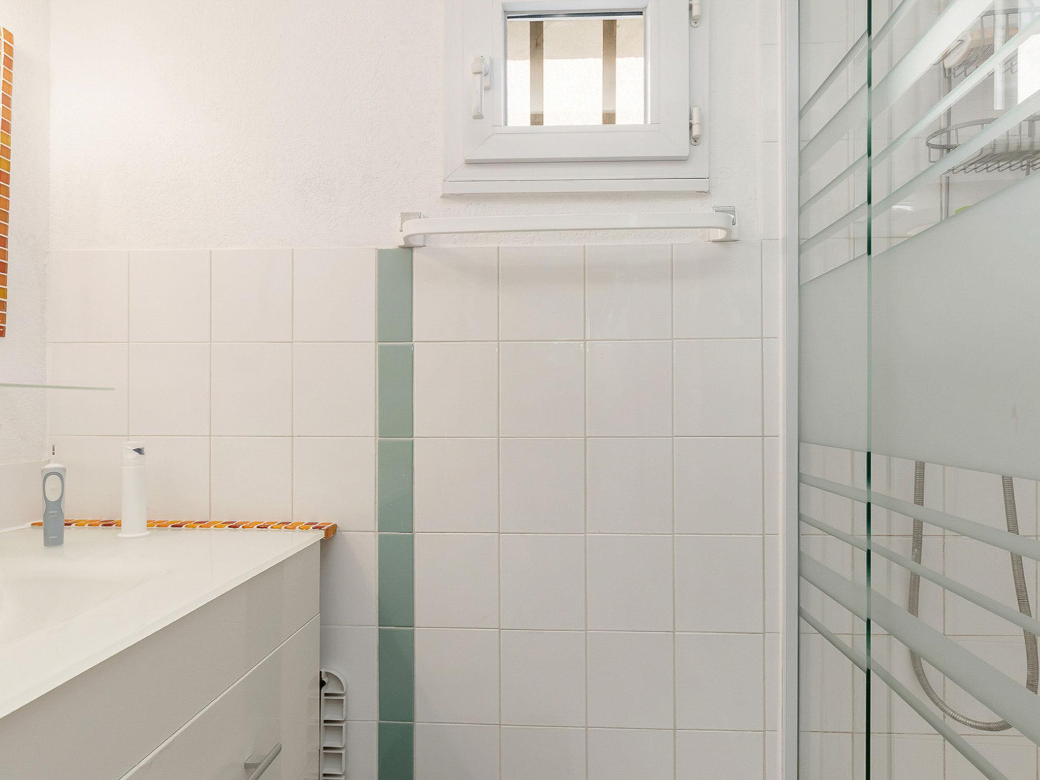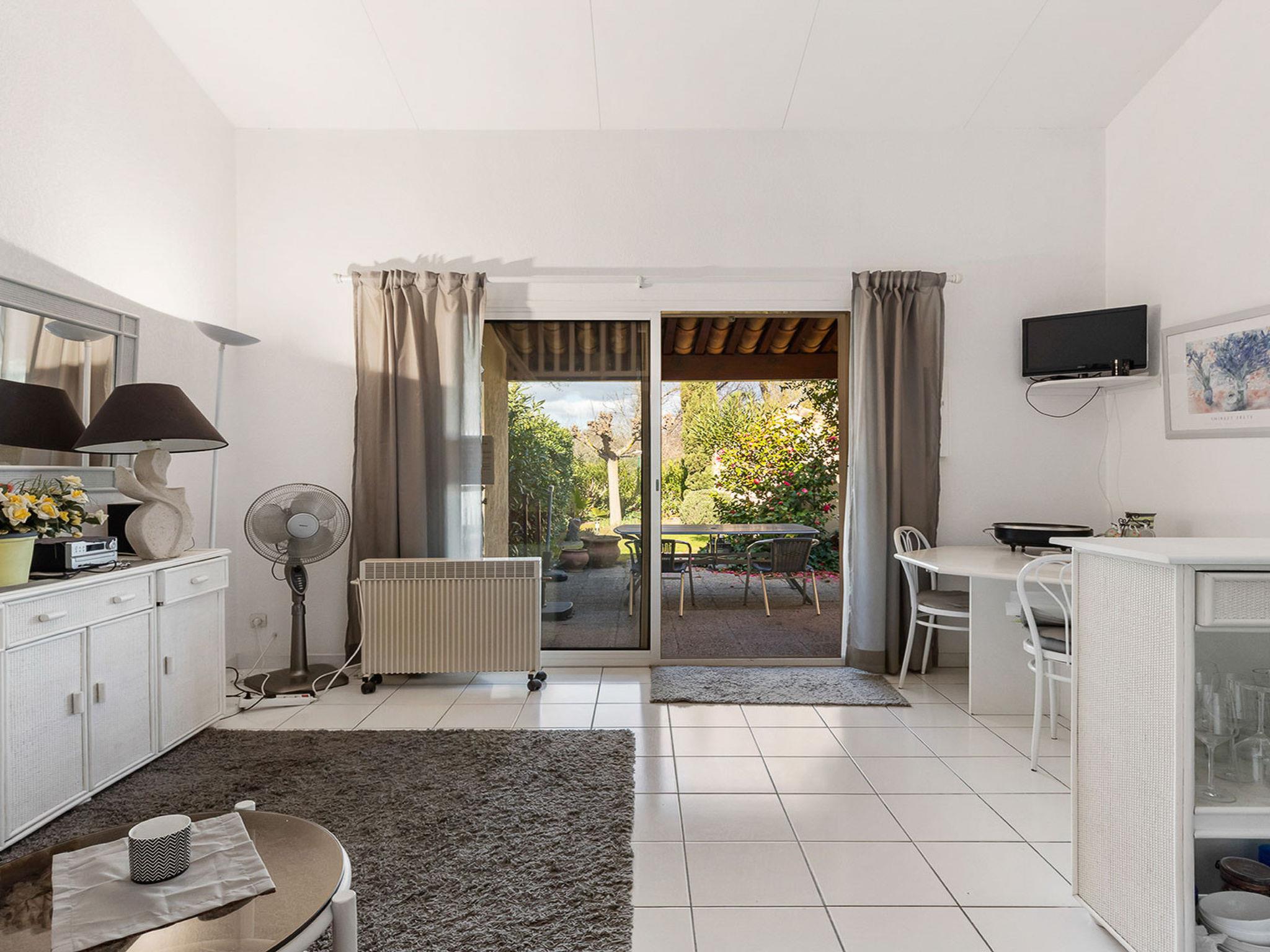 "Perles du Soleil", 2-room house 50 m2, on the ground floor. Object suitable for 5 adults. 1 room with 1 double bed and TV. Living room with 1 sofabed, 1 double bed and TV. Kitchen (oven, dishwasher, 4 induction hot plates, kettle, microwave, electric coffee machine). Shower/WC. Terrace. Barbecue. View of the garden. Parking (1 car). Please note: non-smokers only. Smoke alarm. Offer by a commercial proprietor according to Art. 155, IV, CGI
