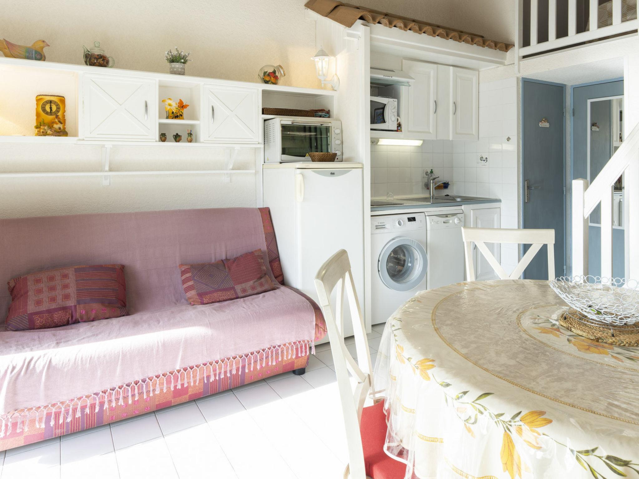 "Les Ondines 2 -", 2-room house 40 m2, on the ground floor. Object suitable for 6 adults. 1 room with 1 double bed and TV. Living room with 2 beds, 1 sofabed and 1 pull-out bed. Kitchen (oven, dishwasher, 4 induction hot plates, microwave, electric coffee machine). Shower/WC. Terrace. Barbecue. Facilities: washing machine, iron. Parking (1 car). Please note: non-smokers only. 1 pet/ dog allowed. Smoke alarm. Offer by a commercial proprietor according to Art. 155, IV, CGI