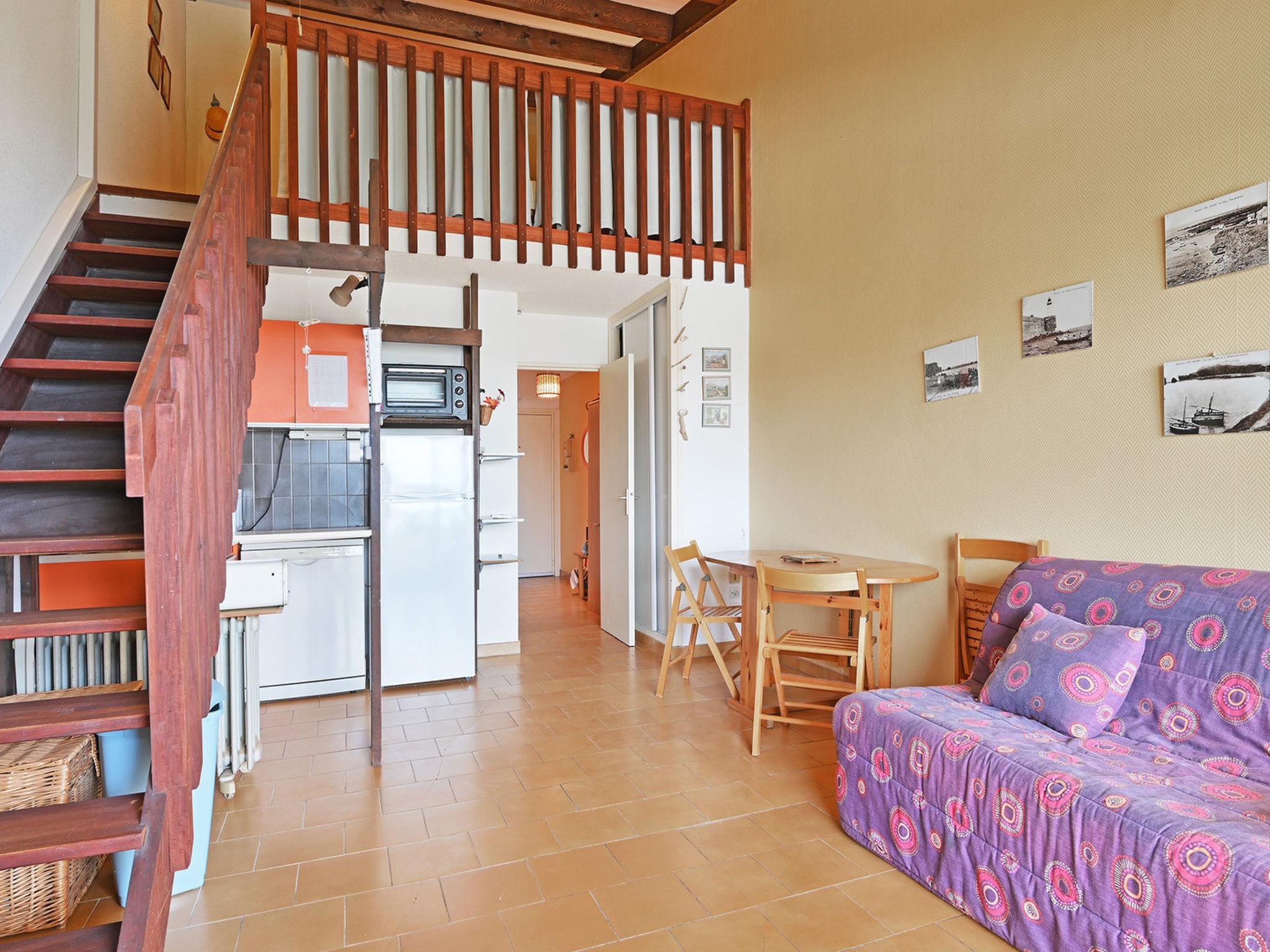 "Les Indes Galantes E", 1-room studio 55 m2 on 2nd floor. Object suitable for 5 adults. Living room with 5 beds and TV. Kitchen (oven, dishwasher, 2 induction hot plates, microwave). Bath/WC. Balcony. View of the sea and the swimming pool. Parking (1 car). Please note: non-smokers only. 1 pet/ dog allowed. Smoke alarm. Offer by a commercial proprietor according to Art. 155, IV, CGI