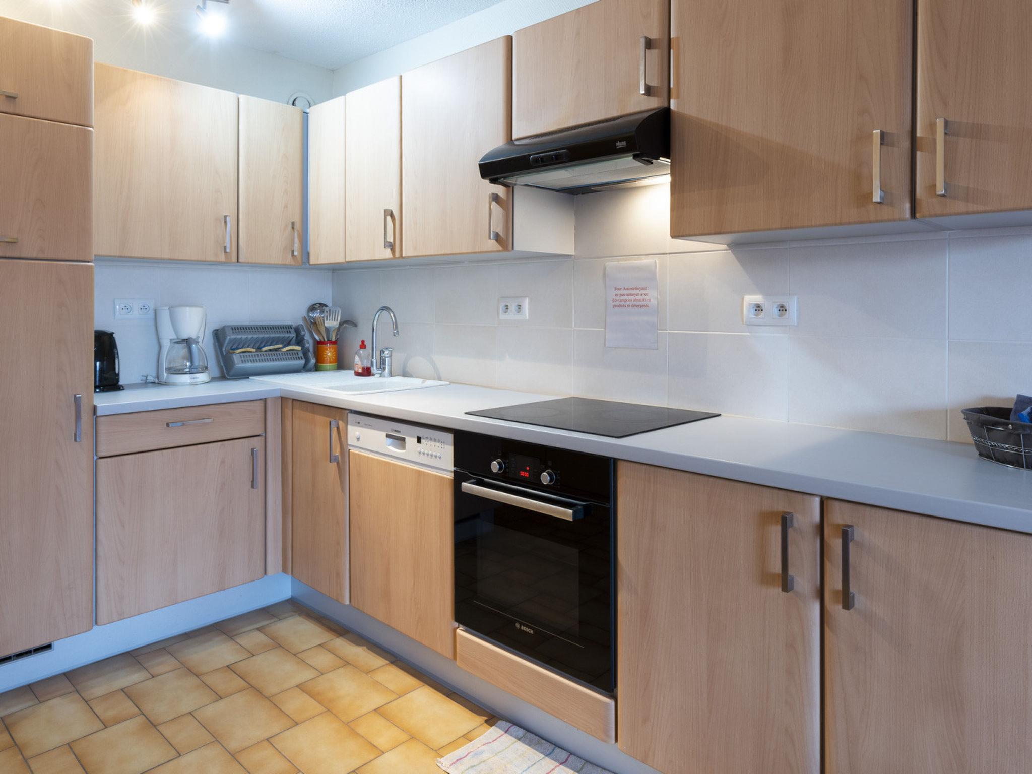 "Les Indes Galantes D", 1-room studio 30 m2 on 4th floor. Object suitable for 4 adults. Living room with 1 sofabed and 1 x 2 bunk beds, 1 pull-out bed and TV. Kitchen (oven, dishwasher, 2 ceramic glass hob hotplates, microwave). Shower/WC. Balcony. Facilities: washing machine. Parking (1 car). Please note: non-smokers only. 1 pet/ dog allowed. Smoke alarm. Offer by a commercial proprietor according to Art. 155, IV, CGI