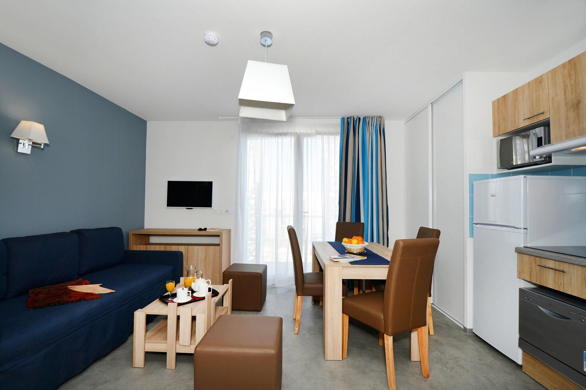 Gemt væk i en fredfyldt, bilfri bolig i hjertet af Cap d'Agde, tilbyder denne omhyggeligt møblerede lejlighed alt, hvad du behøver for en afslappet kystflugt. Indenfor finder du et stilfuldt opholdsområde med en dobbelt sovesofa, et fuldt udstyret tekøkken (inklusive opvaskemaskine, mikroovn og kaffemaskine) og et hyggeligt soveværelse med en dobbeltseng. Det moderne badeværelse, komplet med hårtørrer, sikrer komfort, mens aircondition holder rummet køligt på varme middelhavsdage. Træd udenfor til din private balkon eller terrasse, perfekt til en morgenkaffe eller solnedgangsvin. Beliggende på Route de Rochelongue, er du kun en kort gåtur fra Cap d'Agdes pulserende strand, travle marina og familievenlige attraktioner. Gå en tur langs kystpromenaden, gennemse lokale markeder, eller slap af på det gyldne sand, mens du nyder en fantastisk havudsigt. Uden biler i komplekset kan børn og kæledyr strejfe sikkert rundt, og alle kan nyde den fredelige, afslappede atmosfære. Boligen byder på moderne, lavtliggende arkitektur og en indbydende landsbystemning. Tag dine lodne venner med – Cap d’Agde tager imod dem med åbne arme! Mange strande tillader kæledyr i snor uden for myldretiden, og naturskønne vandrestier som Mont Saint-Loup-stien er perfekte til en aktiv morgen med din hvalp. Efter dine eventyr kan du forkæle dig selv på nærliggende restauranter som Les Halles eller Le Bistro d'Hervé, hvor udendørs siddepladser ofte betyder, at dine kæledyr også kan være med.