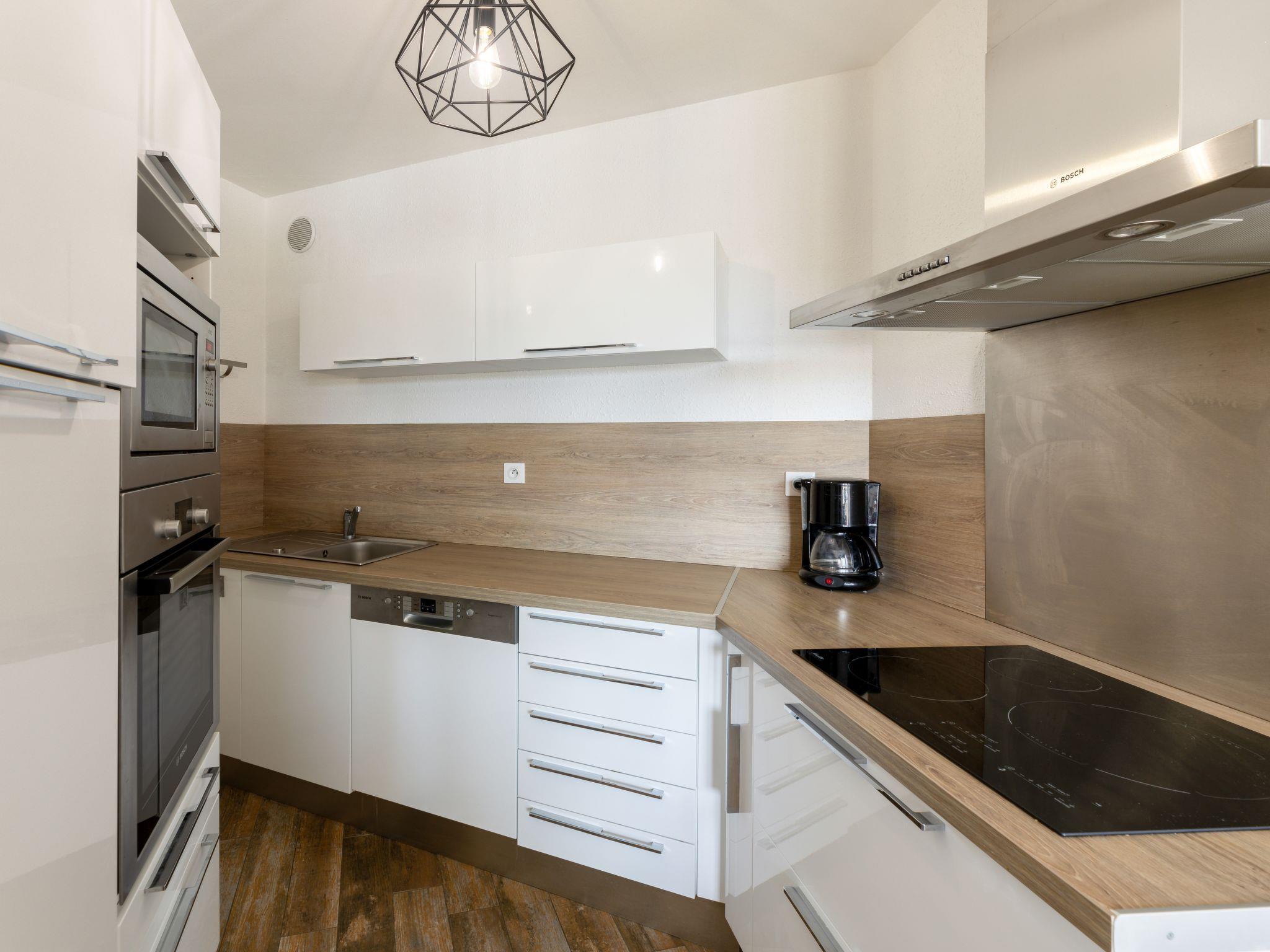 2-room apartment 56 m2 on 1st floor. Comfortable and beautiful furnishings: living/dining room 20 m2 with 1 double wall-trunk bed (2 x 80 cm, length 190 cm). Exit to the terrace. 1 room 10 m2 with 1 french bed (160 cm, length 190 cm). Open kitchen (oven, dishwasher, 3 induction hot plates, microwave, freezer, electric coffee machine). Shower, sep. WC. Electric heating. Terrace furniture. View of the port. Facilities: washing machine, dryer. Internet (WiFi, extra). Garage. Please note: suitable for families. Non-smokers only. Smoke alarm. 40065000068EE