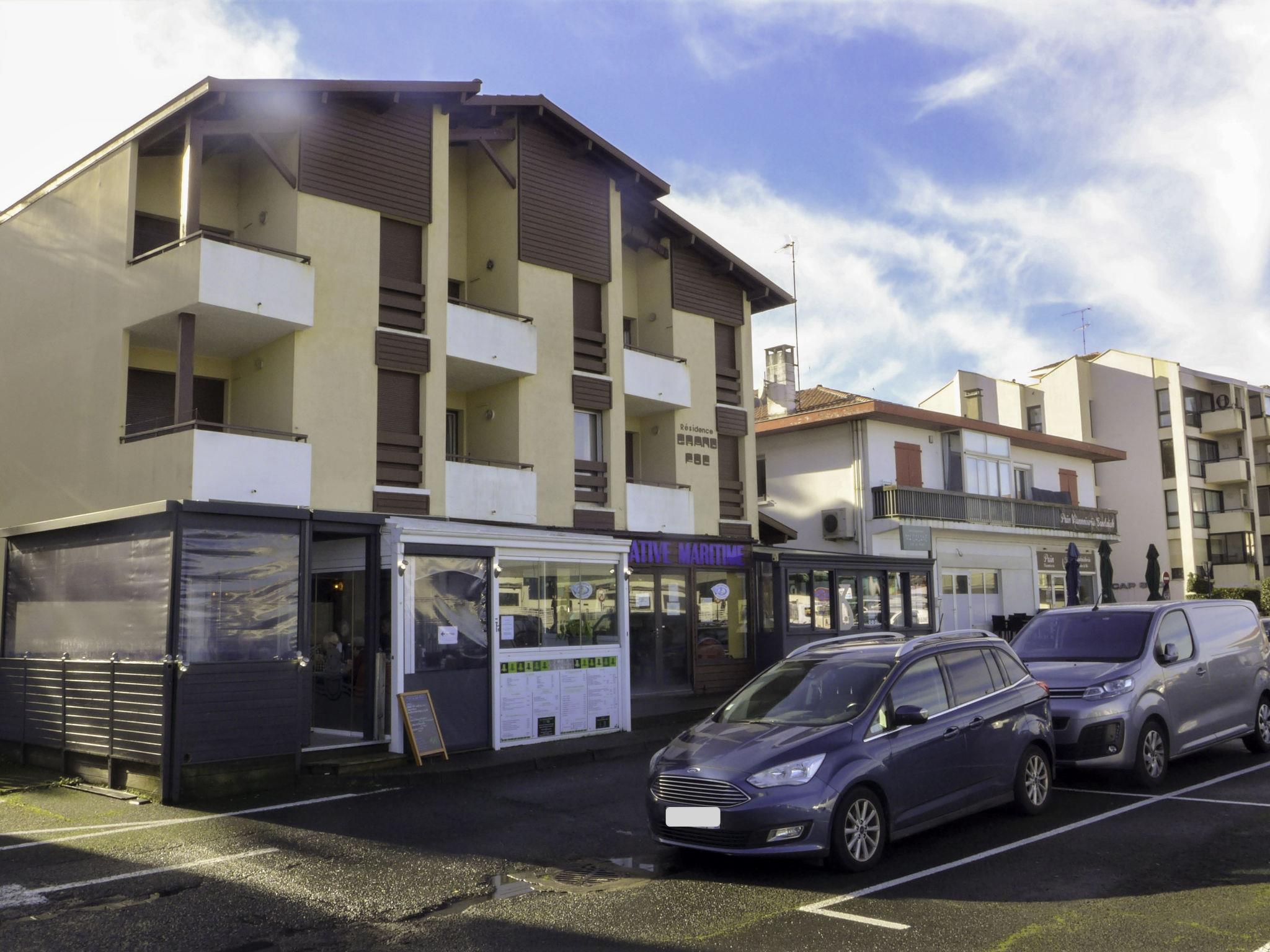 Capbreton 2 km from hossegor: Residence "le Grand Foc". 1 km from the centre of Capbreton, from the sea, 500 m from the beach. Supermarket 1 km, restaurant 10 m, bus stop "marché au poisson" 52 m. Sports harbour 20 m, golf course (18 hole) 3 km. Please note: no lift. Groups of teenagers on request only.