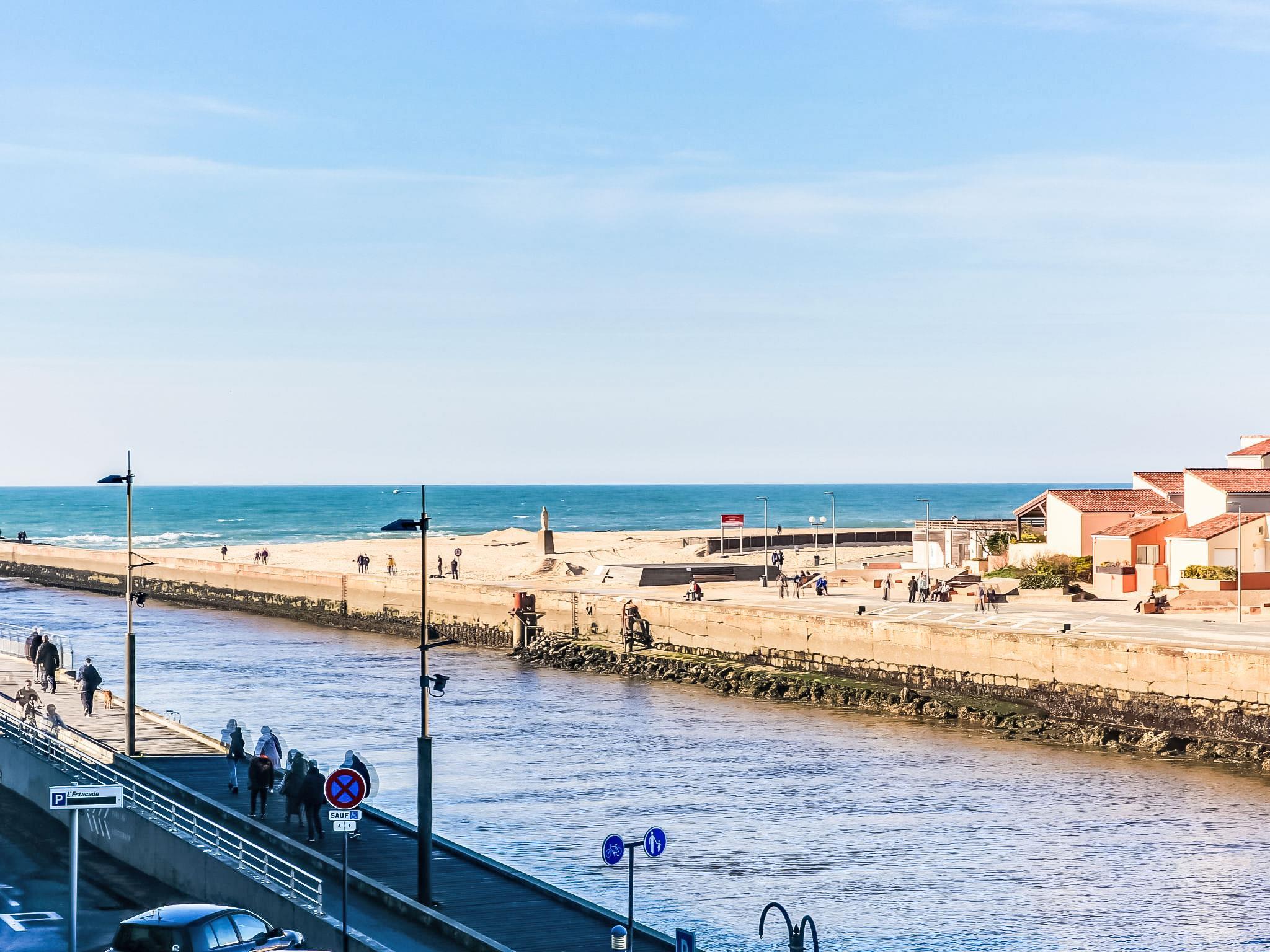 Capbreton 2 km from Hossegor: Residence "Cap Key Largo", built in 2015. In the resort 1 km from the centre of Capbreton, in a busy position, 100 m from the sea, 10 m from the canal. Roofed, parking space n 43. Supermarket 1.8 km, restaurant, café 10 m, bus stop "estacade" 150 m, sandy beach 100 m. Sports harbour 50 m, golf course (18 hole) 4 km. Please note: suitable for families. Groups of teenagers on request only.