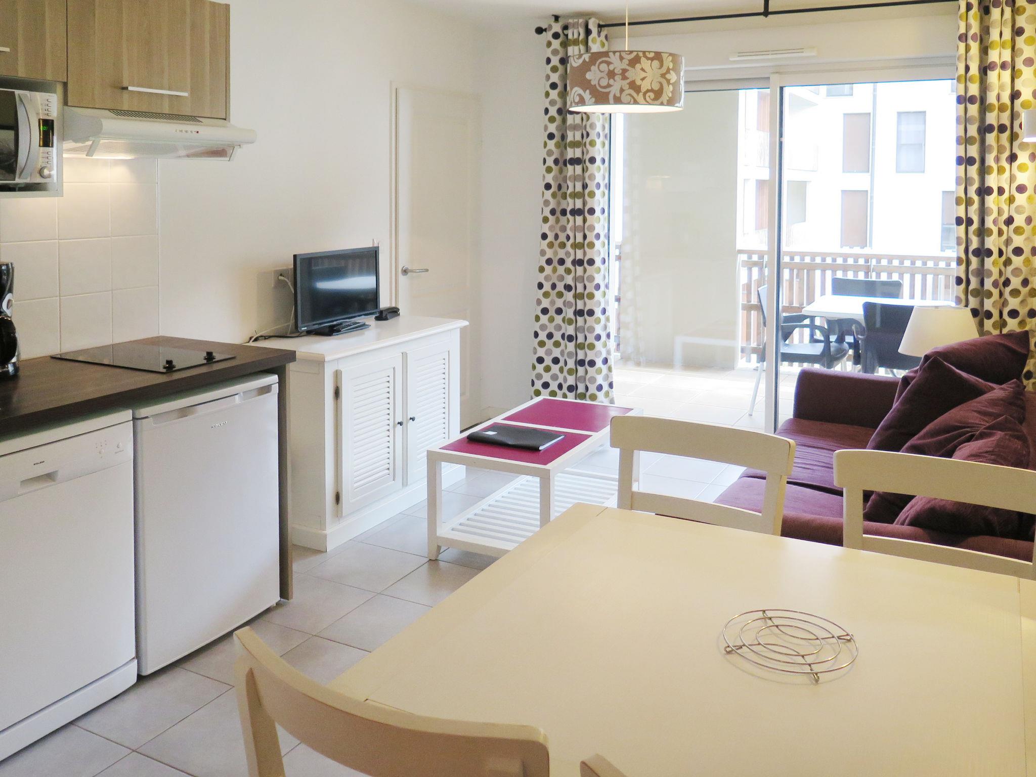 "L'Estacade", 2-room apartment 35 m2. Bright, practical furnishings: living/sleeping room with 1 double sofabed, dining table and TV. 1 room with 1 french bed (160 cm). Kitchenette (dishwasher, 2 ceramic glass hob hotplates, toaster, kettle, microwave, electric coffee machine). Bath/WC. Electric heating. Balcony or terrace. Terrace furniture, balcony furniture. Facilities: Internet (WiFi, extra). Please note: non-smokers only. Maximum 1 pet/ dog allowed. Smoke alarm, fire extinguisher. The property is one of a type of property or apartment.