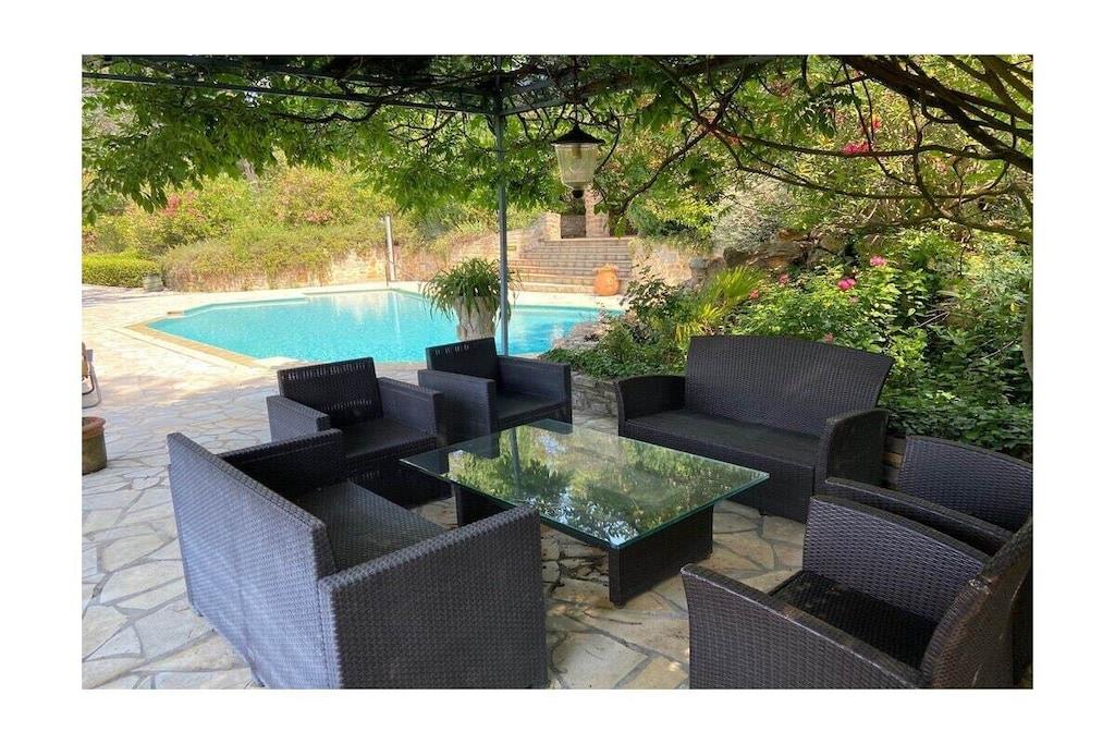 Stueetage: (Stue/soveværelse(, , dobbeltseng, Fjernsyn, Fjernsyn, Fjernsyn, barneseng, barneseng)) , , , , , veranda(havemøbler), Internetadgang, Internetadgang, Førstehjælp, vaskemaskine, terrasse(havemøbler, solstole), have(Grill center, Græsplæne, havemøbler, solstole, swimmingpool, Haveskur), parkering, cykler til rådighed, strygebræt, strygejern, tørreskab, Alarm