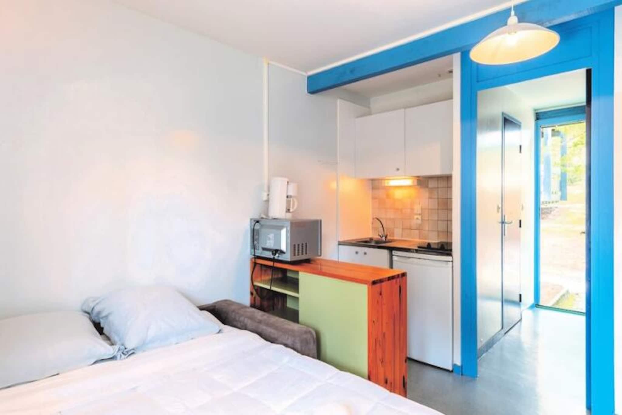La Résidence Domaine Les Cavales se encuentra en Carcans, en la costa de Aquitania. Su proximidad al lago de Carcans y al océano al otro lado lo convierten en un lugar privilegiado para unas vacaciones en plena naturaleza, centradas en el deporte y las actividades acuáticas. La Residencia Domaine Les Cavales es ideal para familias: su piscina de 240 m² será el lugar favorito de grandes y pequeños en los bonitos días soleados. El lugar te deja soñando, en medio de los pinos, ¡el cambio de escenario será total! Si buscas recargar pilas, ¡esta residencia está hecha para ti! Estarás a menos de 5 minutos del lago Carcans, donde podrás practicar diferentes actividades acuáticas: piragüismo, windsurf, optimista. Tendrá acceso a 120 km de carriles bici directamente desde la residencia, suficientes para descubrir los bellos paisajes de la zona a su propio ritmo, en bicicleta. Salón con 1 sofá cama Zona de noche con 1 cama alta Cuarto de baño, WC Balcón cubierto Tenga en cuenta: el alojamiento está en la planta baja (unos pocos pasos para acceder al alojamiento) Se admiten mascotas - 10EURO/noche/mascota - Se permite 1 mascota por alojamiento (no permitida en zonas comunes) Depósito (adicional) - 200 Kit para bebé: cama, bañera y trona: disponible en préstamo previa solicitud al realizar la reserva Ropa de cama incluida (camas no hechas a la llegada) Ropa de baño - toalla: 3,50 euros; ; toalla de baño: 4,50 euros; ; Kit de baño (1 toalla + 1 toalla de baño + 1 esterilla): 7,50 EURO; Limpieza final de estancia - De 1 a 5 noches: Estudio 2/3 personas = 12 € / noche 3 habitaciones 4/6 personas = 18 € / noche A partir de 6 noches: Estudio 2/3 personas = 65 € 3 habitaciones 4/6 personas = 90 € Aparcamiento - gratuito Piscina - piscina no climatizada de 240 m² + piscina infantil de 40 m² - abierta toda la temporada Tasa turística (cargo adicional) - según tarifas vigentes, pago en el sitio