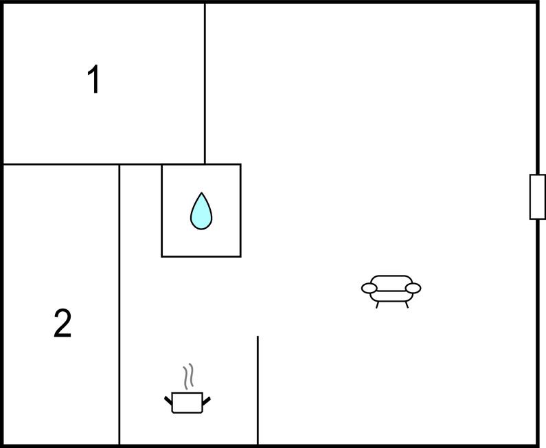 Badeværelse 2m2 (nr. 1) - WC. Varmt og koldt vand. Bruser