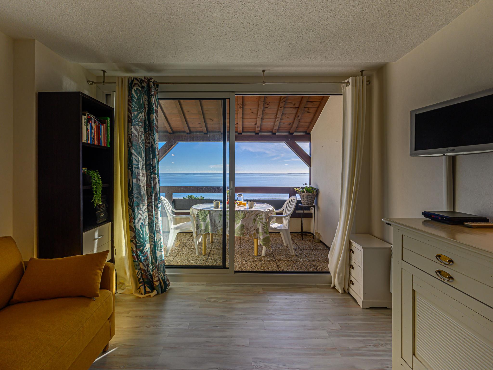 1-room studio 25 m2. Comfortable furnishings: living/dining room with 1 double sofabed (1 x 140 cm, length 190 cm), TV (flat screen). Exit to the balcony. Open kitchen (oven, dishwasher, 3 induction hot plates, toaster, kettle, electric coffee machine). Shower/bidet/WC. Balcony 5 m2, south facing position. Balcony furniture. Very beautiful view of the sea. Facilities: hair dryer. Internet (WiFi, free). Parking space n 404. Please note: non-smokers only. Smoke alarm. Offer by a private individual according to Art. 155, IV of CGI. 56034000317FB