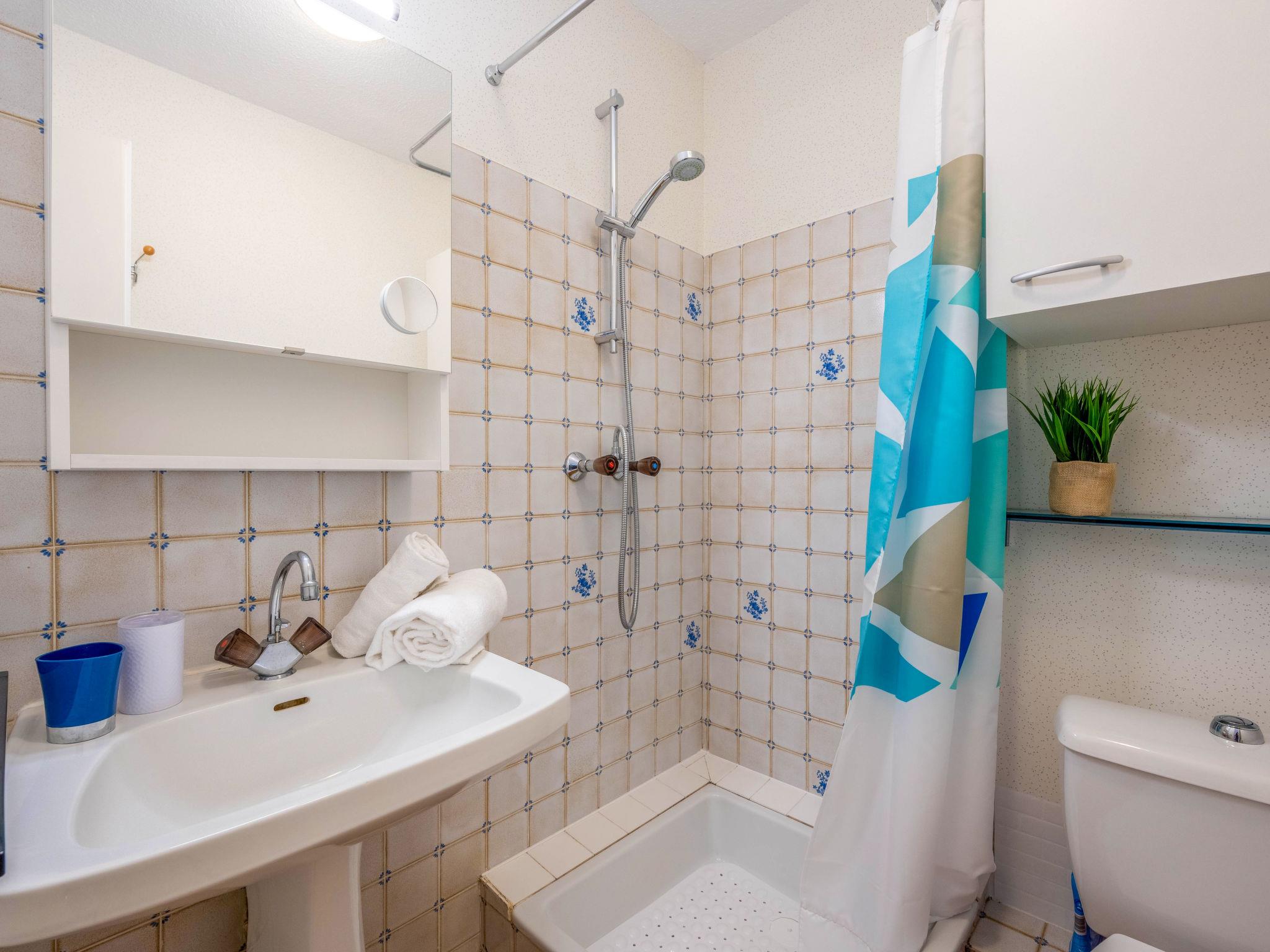 1-room studio 25 m2 on 1st floor. Object suitable for 2 adults + 2 children. Living/dining room with 1 double sofabed (1 x 130 cm, length 190 cm), TV (flat screen). Exit to the terrace. Sleeping alcove with 1 x 2 bunk beds (80 cm, length 190 cm). Kitchenette (2 hot plates, toaster, kettle, electric coffee machine). Shower/WC. Electric heating. Balcony 10 m2. Balcony furniture. Very beautiful view of the sea. Facilities: hair dryer. Internet (WiFi, extra). Parking space n 10. Please note: smoke alarm. Instead of an enclosed bedroom, some sleeping areas are located in an open-plan area (gallery, alcove, etc.). 56034000636C5