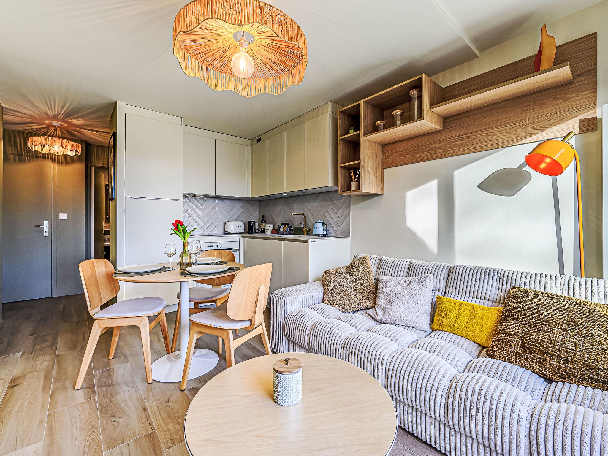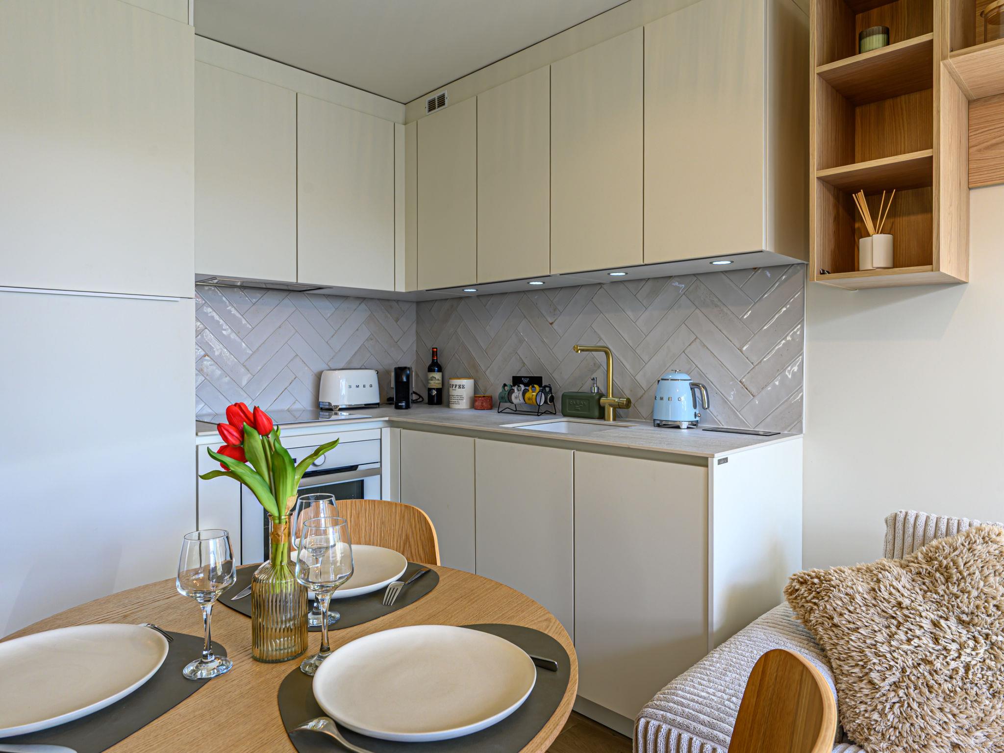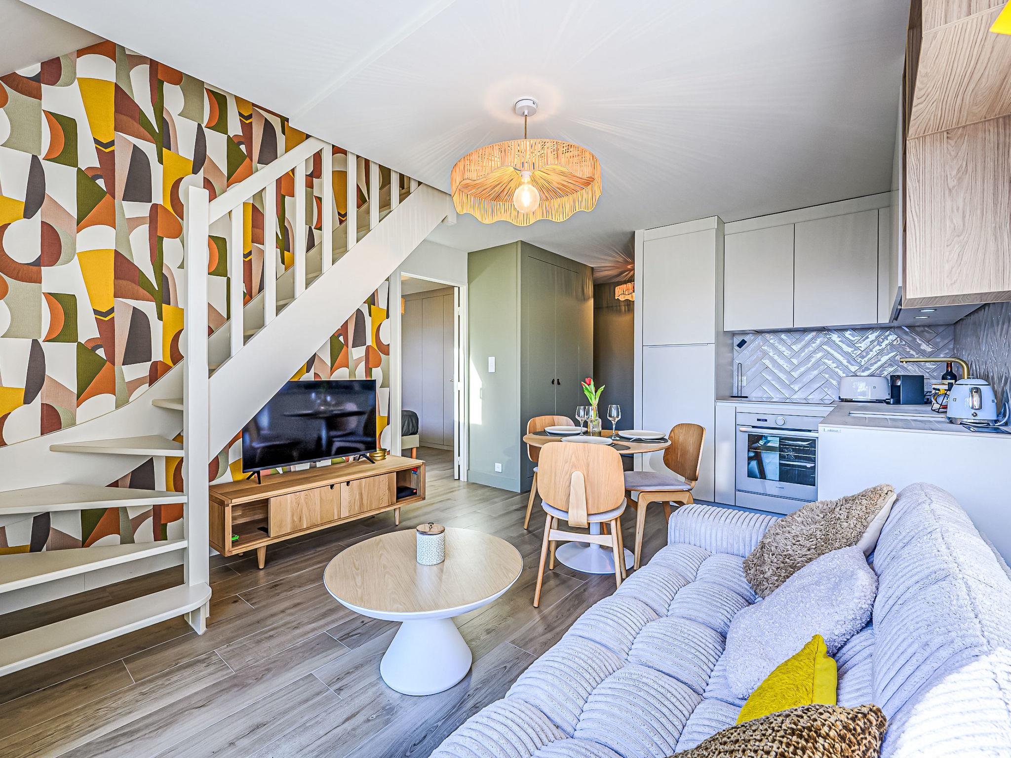 3-room maisonette 33 m2 on 1st floor. Fully renovated in 2025, comfortable furnishings: living/dining room with TV (flat screen). Exit to the balcony. 1 room with 1 french bed (1 x 160 cm, length 200 cm). Kitchenette (3 hot plates, oven, dishwasher, toaster, kettle, electric coffee machine). Shower, sep. WC. Upper floor: 1 room with 2 beds (90 cm, length 190 cm). Balcony 5 m2, south facing position. Balcony furniture. Facilities: washing machine, iron, hair dryer. Internet (WiFi, free). Parking at the house. Please note: non-smokers only. Smoke alarm.
