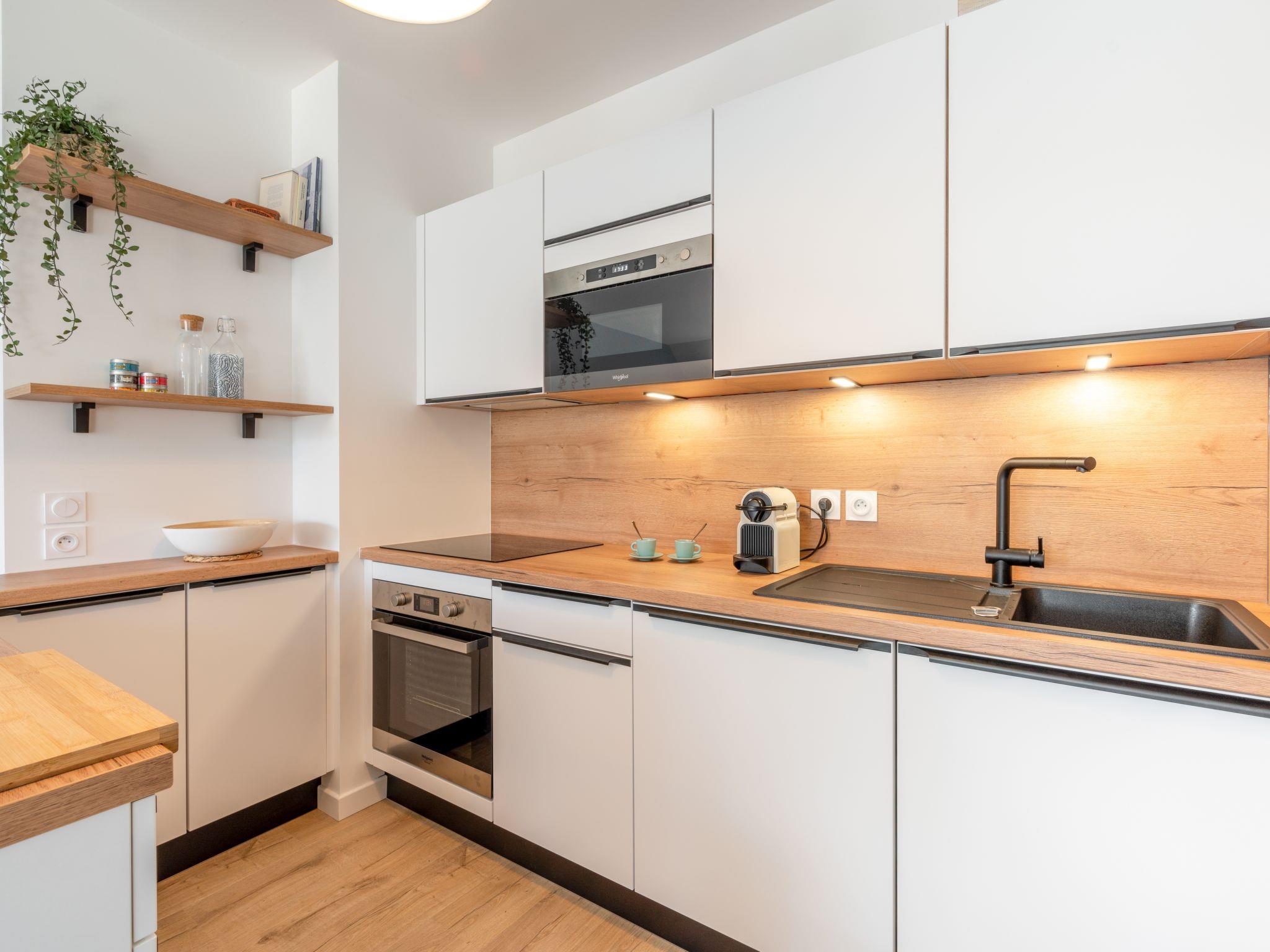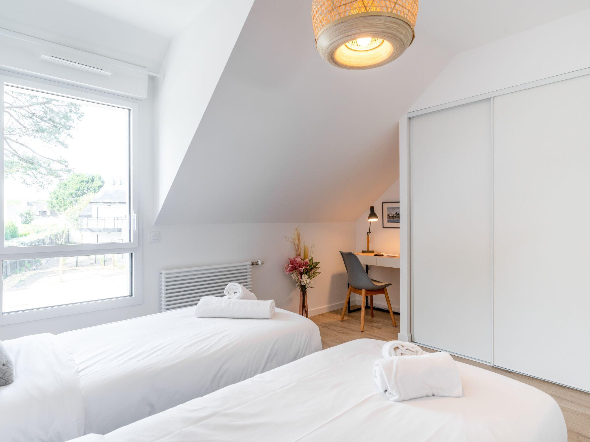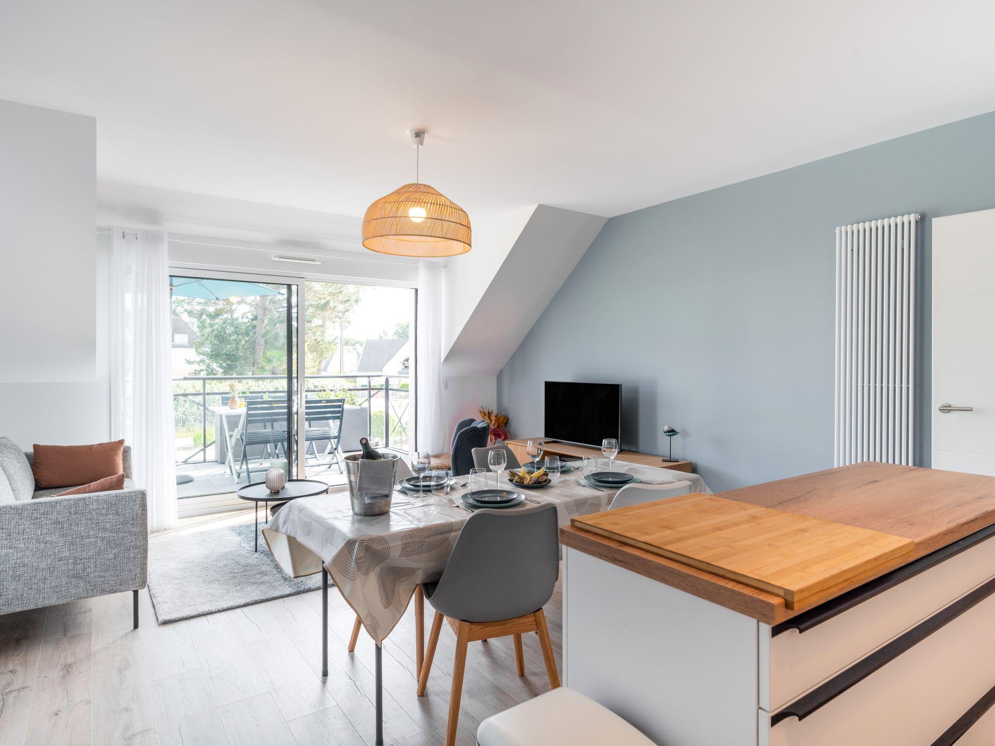 Modern apartment block "Les Villas du Men Du", 2 storeys, built in 2022. In the resort, 300 m from the sea, from the beach. In the house: storage room for bicycles. Supermarket 200 m, restaurant 500 m, bar, bakery 1 km, café, bicycle rental 1 km, sandy beach "Plage du Men Du" 300 m, thermal baths "Thalassothérapie Thalazur" 2 km. Golf course (18 hole) 15 km, surf school 6 km, sailing school 2 km. Nearby attractions: Les Alignements de Carnac 5 km, La Trinité sur Mer 5 km, Presqu'ile de Quiberon 15 km, Vannes 30 km, Lorient 40 km, Belle Ile en Mer, Houat, Hoedic. Hiking paths: Le Golfe du Morbihan 30 km.