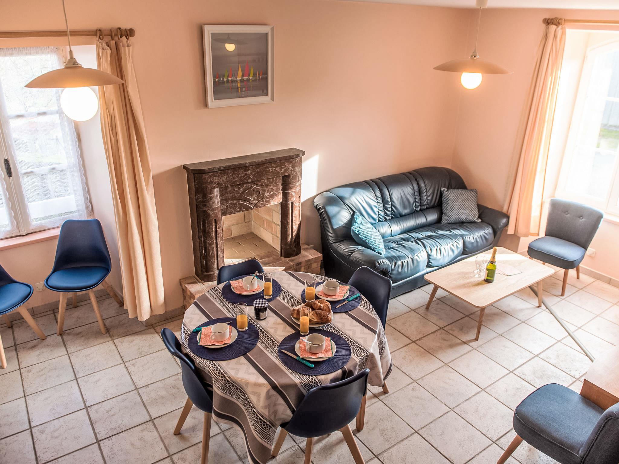 3-room apartment 60 m2 on 2 levels, on the ground floor. Beautiful furnishings: living/dining room with TV (flat screen). Open kitchen (4 hot plates, oven, electric coffee machine, combination microwave). Sep. WC. Upper floor: 1 room with 1 french bed (1 x 140 cm, length 190 cm). 1 room with 1 x 2 bunk beds (90 cm, length 190 cm). Shower/WC. Small patio 8 m2. Terrace furniture, deck chairs (2). Facilities: washing machine. Internet (WiFi, free). Parking at the house. Please note: maximum 2 pets/ dogs allowed. Smoke alarm. Dogs must be kept on a leash. Non adjoining garden. 56034000634B9