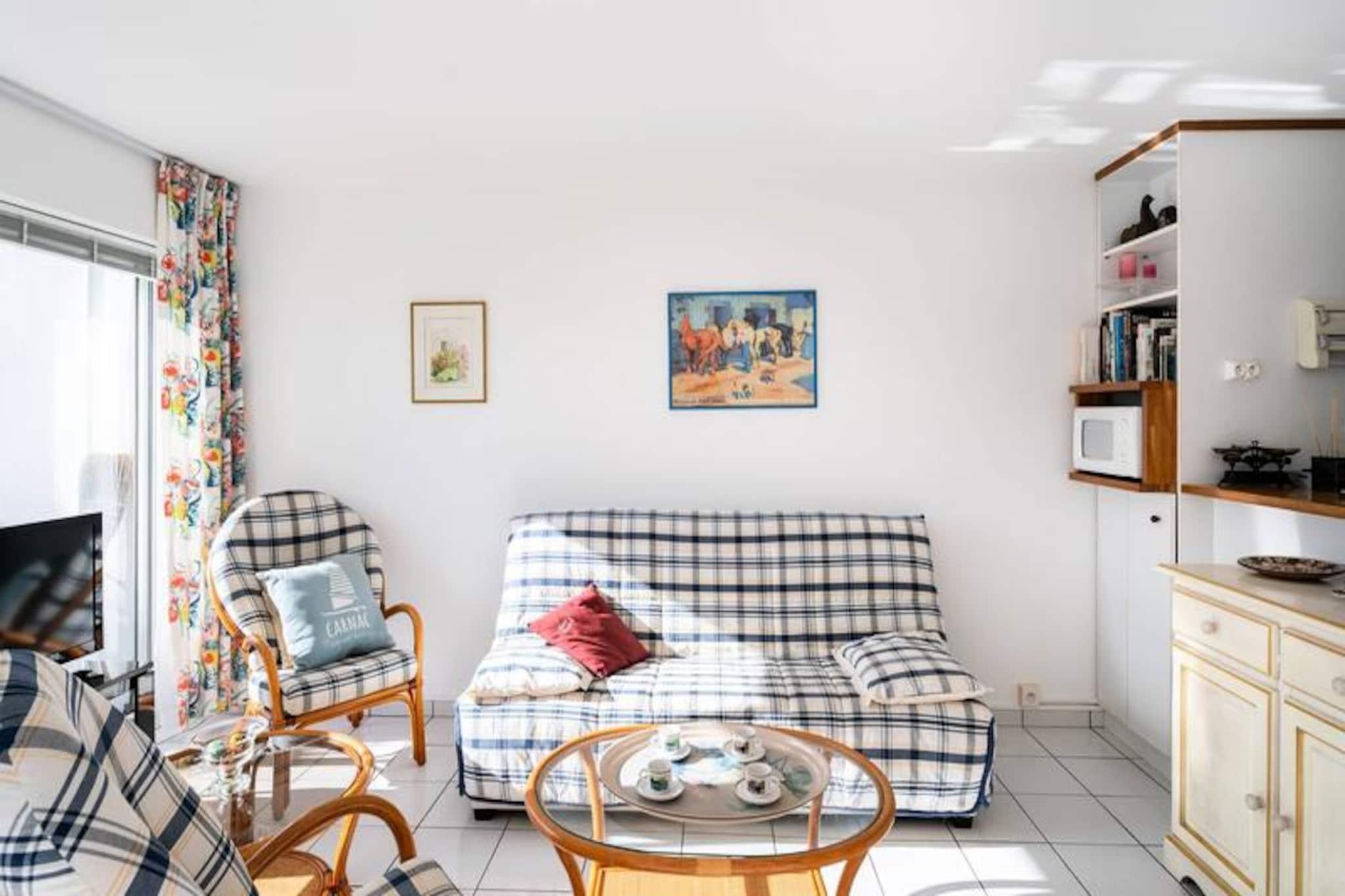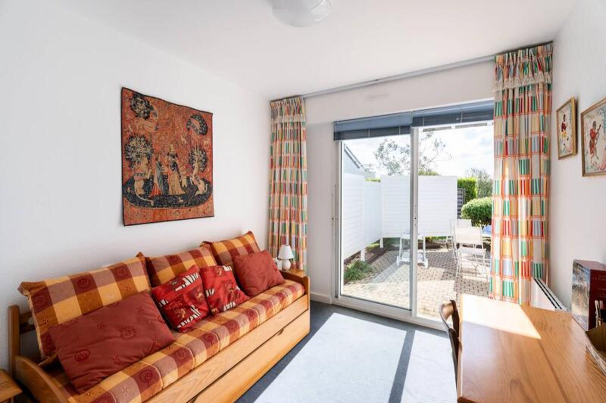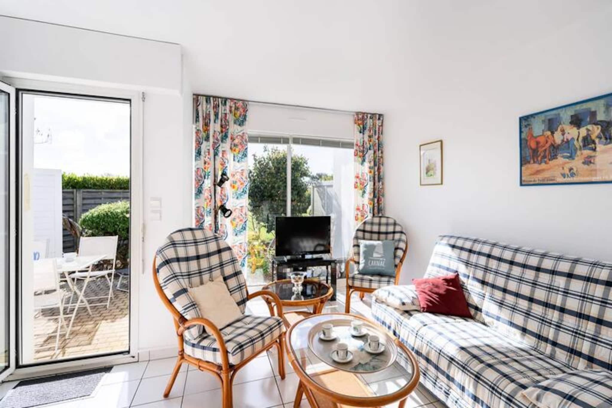 Denne rummelige 3-værelses lejlighed, beliggende i et roligt boligkompleks, kan rumme op til 6 gæster. Lejligheden indeholder et soveværelse med en dobbeltseng, et andet med udtrækbare enkeltsenge og en komfortabel stue med spiseplads og en sovesofa. Et lille kæledyr er velkommen med et tillæg. Ejendommen har et badeværelse og et separat toilet. Parkeringsplads nr. 44 er tilgængelig for gæster. Yderligere tjenester såsom slutrengøring, leje af sengetøj, udstyr til børnepasning og en mini-wifi-boks kan arrangeres mod et ekstra gebyr. Varme og energi er inkluderet i prisen. Lejligheden ligger kun 1 km fra den smukke Légenèse strand og thalassoterapi, der byder på masser af muligheder for afslapning og udendørs aktiviteter. Gæsterne kan også udforske den charmerende by Carnac, kendt for sine historiske megalitsteder og lokale markeder. Området er perfekt for strandgængere, historieentusiaster og dem, der ønsker at nyde kystnære restauranter og shopping. Indvendigt har lejligheden et fuldt udstyret køkken med moderne apparater, herunder en 4-brænder kogeplade, ovn, køleskab, opvaskemaskine, mikroovn og vaskemaskine. Den rummelige stue åbner ud til en terrasse med havemøbler, med en dejlig udsigt over boligens have. Lejligheden er ideelt placeret for at gæster kan nyde både komfort og nærhed til regionens attraktioner.