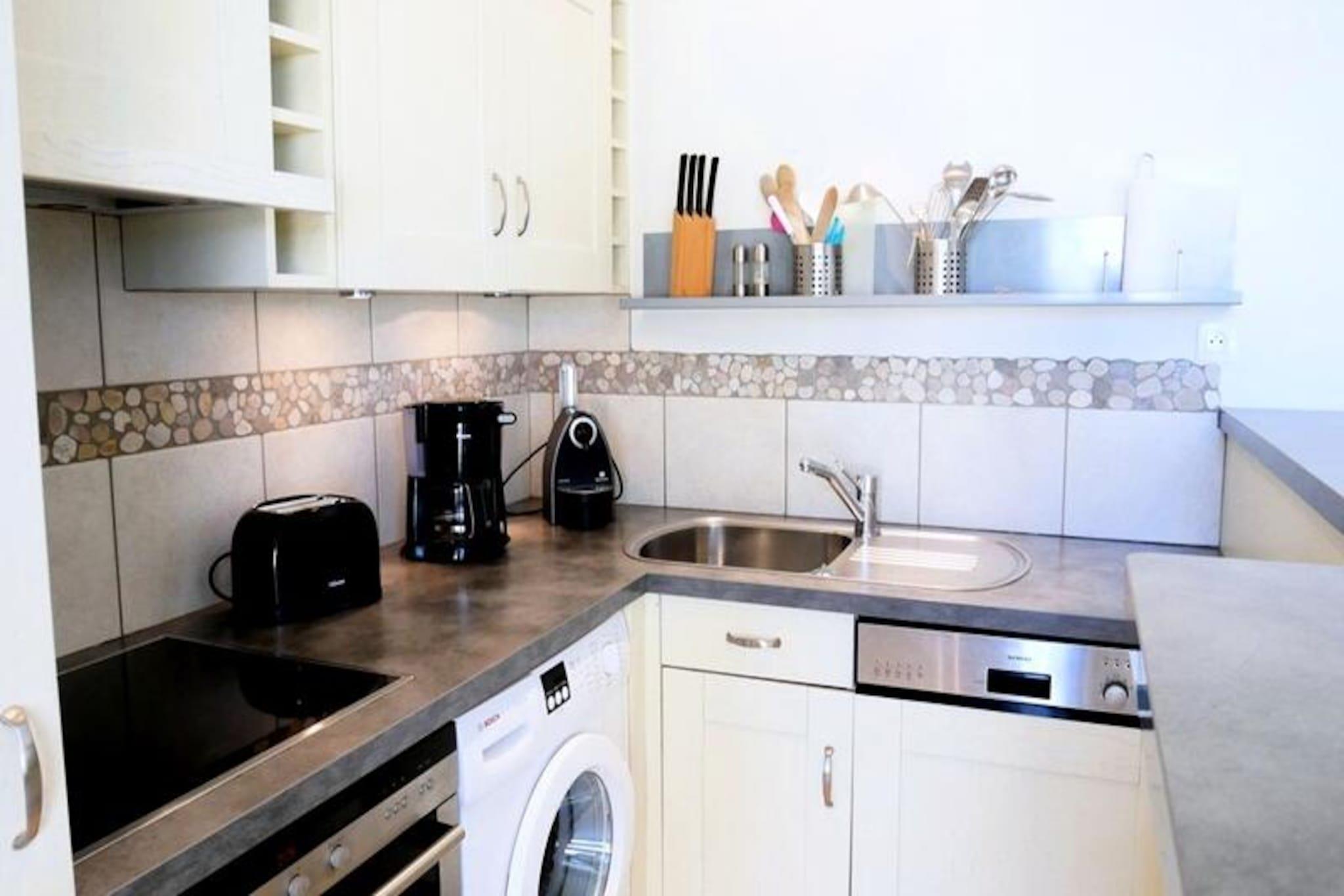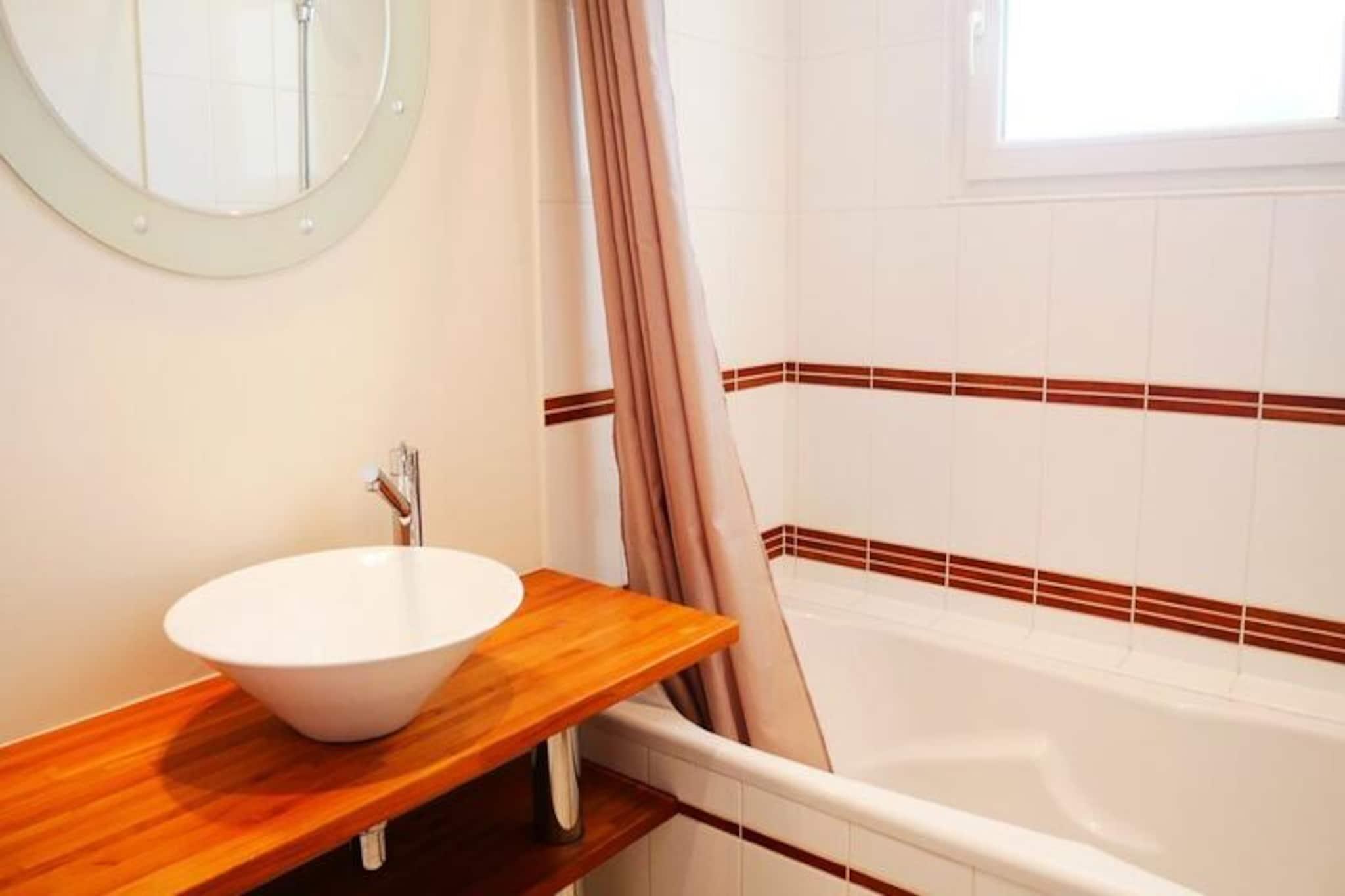 Denne charmerende 3-værelses lejlighed, beliggende kun 50 meter fra stranden i Saint-Colomban de Carnac, tilbyder et komfortabelt tilflugtssted for op til 4 gæster. Lejligheden indeholder et soveværelse med en 160 cm dobbeltseng og et andet med to 90 cm enkeltsenge. En kæledyrsvenlig ejendom, et dyr er tilladt mod et ekstra gebyr. Opholdsområdet har en hyggelig lounge med sofa og tv, perfekt til afslapning. En nordvestvendt terrasse og lukket have med havemøbler giver et behageligt uderum for gæsterne. Lejligheden er ideelt beliggende nær lokale attraktioner, med stranden kun en kort gåtur væk, så du kan nyde havet og den naturskønne udsigt. Carnac er kendt for sine forhistoriske steder, og du finder de berømte stenlinjer i nærheden. Lokale markeder, caféer og restauranter er let tilgængelige og tilbyder frisk fisk og skaldyr, regionale specialiteter og en række butikker. Området byder også på en række aktiviteter, fra vandsport til vandreture, hvilket gør det til en ideel destination for både afslapning og eventyr. Indvendigt er lejligheden fuldt udstyret med et moderne køkken med induktionskomfur med 4 brændere, kombineret mikroovn, opvaskemaskine, køleskab, fryser og vaskemaskine. Badeværelset byder på alle nødvendige bekvemmeligheder, og der er et separat toilet for nemheds skyld. Gratis WiFi er tilgængeligt via 4G-sten, hvilket sikrer, at du forbliver forbundet under hele dit ophold. Derudover er parkering tilgængelig foran ejendommen for din bekvemmelighed. Valgfrie tjenester såsom slutrengøring og leje af sengetøj er også tilgængelige.