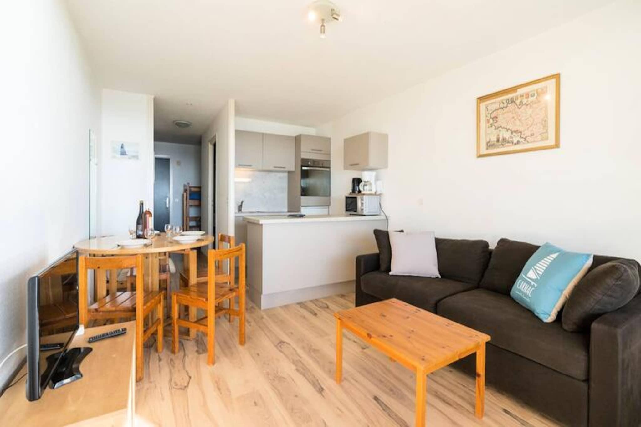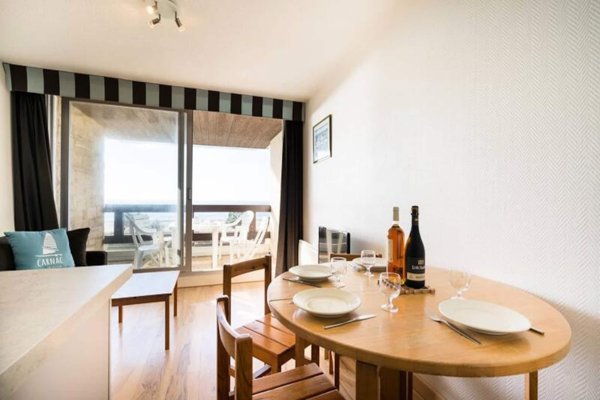 Denne charmerende studiehyttelejlighed tilbyder et komfortabelt ophold for op til 4 personer, med en kahytindgang med 2 enkeltkøjesenge og en hyggelig stue med spiseplads og en sovesofa (160 cm) til 2. Lejligheden er kæledyrs- venlige, med et kæledyr tilladt mod et ekstra gebyr. Den sydvendte loggia byder på en fantastisk havudsigt, perfekt til at slappe af efter en dag med udforskning. Ejendommen inkluderer varme- og energitjenester, og valgfri faciliteter såsom slutrengøring, leje af sengetøj, udstyr til børnepasning og en Wi-Fi-miniboks er tilgængelige. Beliggende kun få skridt fra den berømte Grande Plage de Carnac, er denne lejlighed ideelt beliggende for dem, der ønsker at nyde stranden og lokale attraktioner. Med butikker, caféer og markeder i nærheden, har du alt hvad du behøver inden for gåafstand. Områdets livlige atmosfære kombineret med dets smukke naturlige omgivelser byder på en perfekt balance mellem afslapning og eventyr. Lejligheden har et fuldt udstyret køkken med moderne bekvemmeligheder, herunder en 3-brænder induktionskomfur, ovn, opvaskemaskine, køleskab og mikroovn, så du nemt kan tilberede måltider. Bruserummet er bekvemt udstyret med et toilet, hvilket sikrer komfort under dit ophold. Med en dedikeret parkeringsplads har du ingen problemer med at udforske området og nyde det bedste af Carnac.