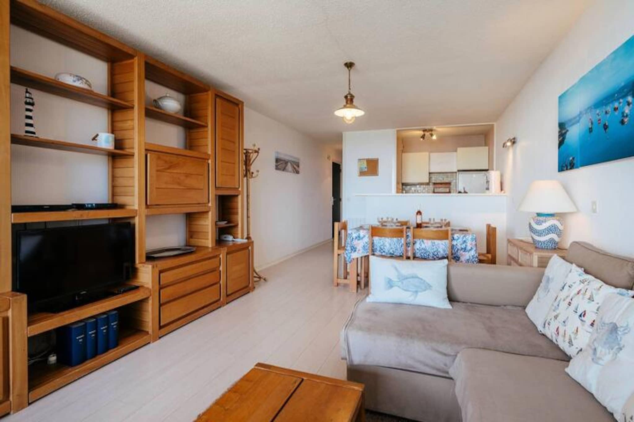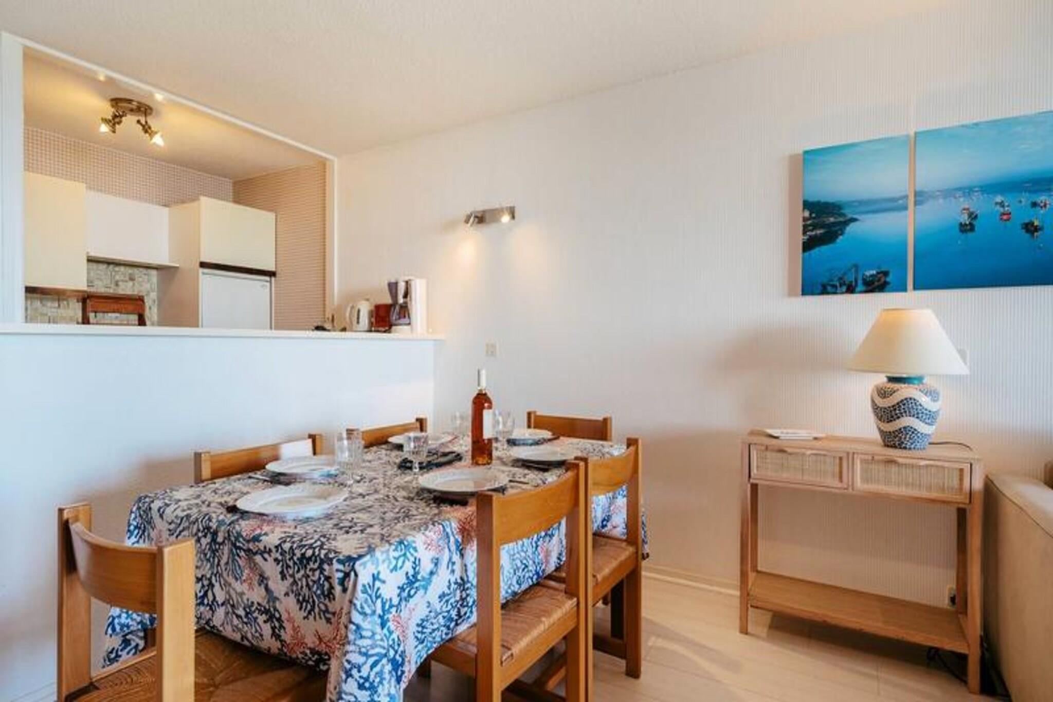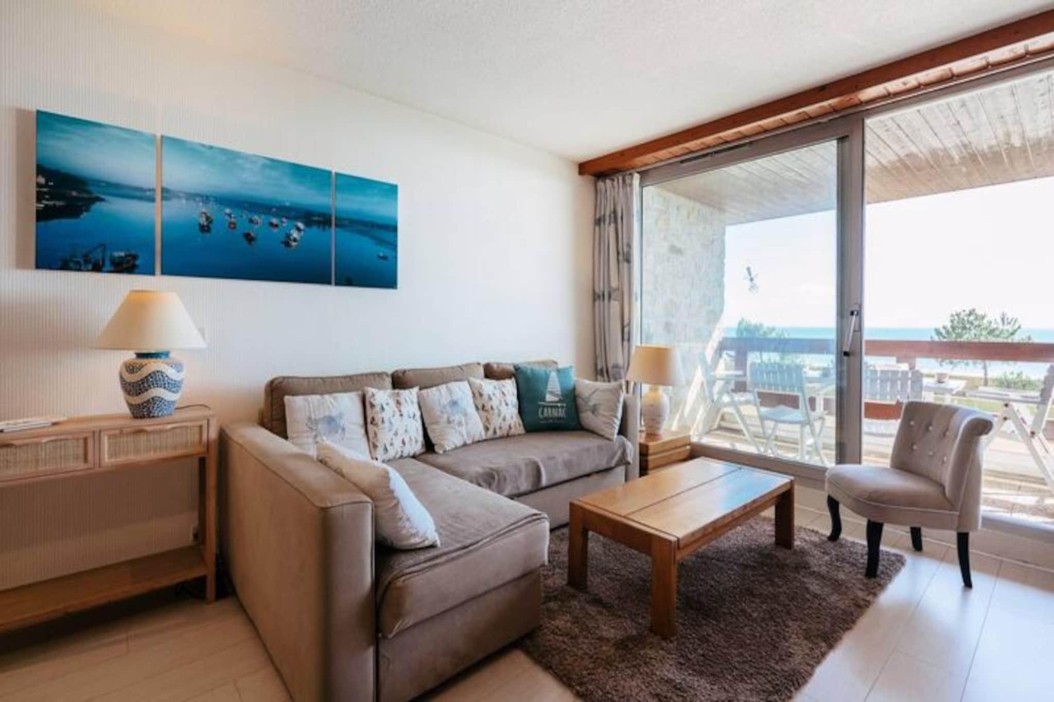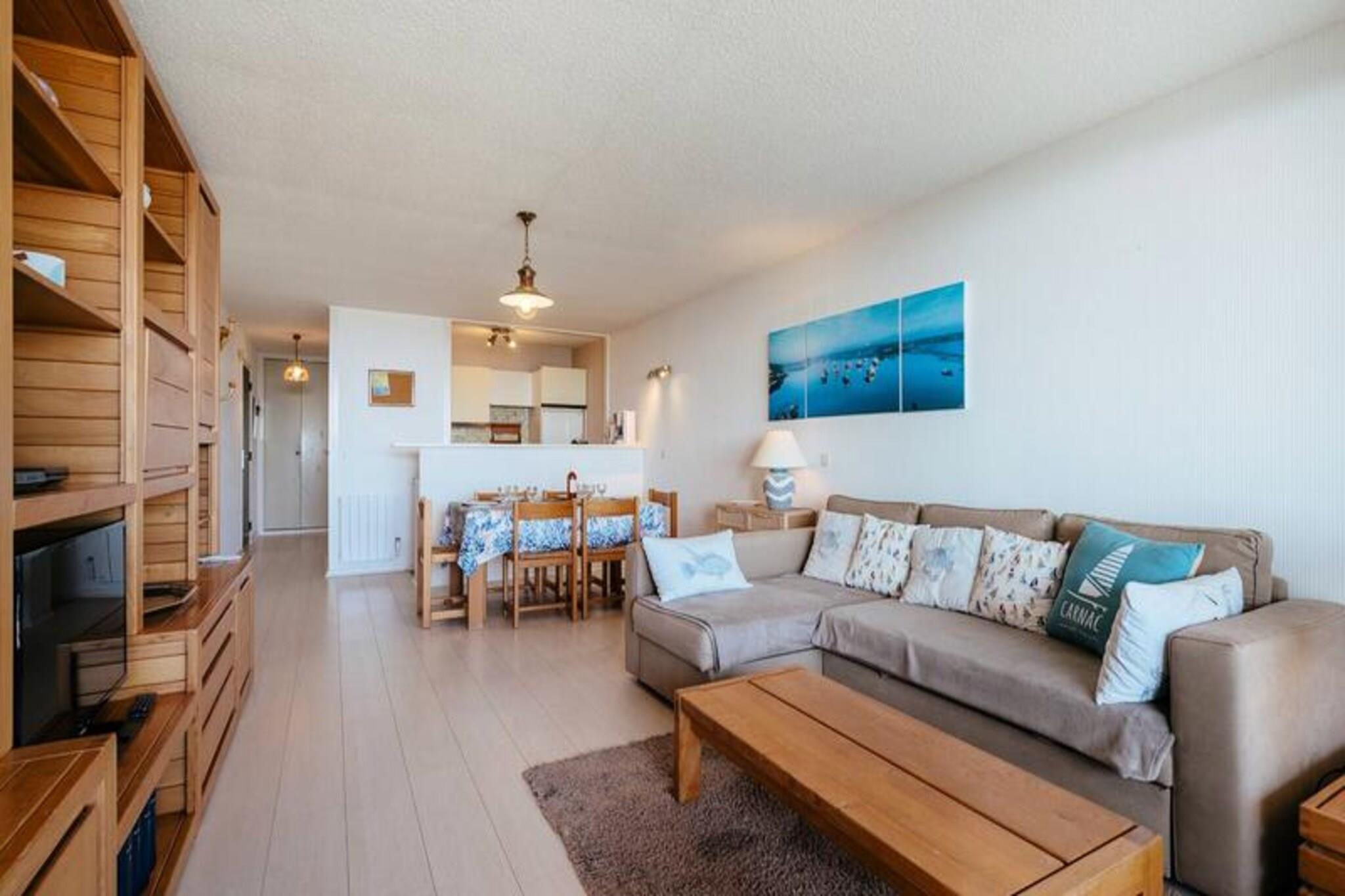 Denne rummelige 3-værelses lejlighed, beliggende på første sal med elevator, tilbyder komfortabel indkvartering for op til 6 personer. Det har et soveværelse med en dobbeltseng og et andet soveværelse med køjesenge og en udtræksseng, perfekt til familier. I stuen er der spiseplads, opholdsstue og en Rapido-sofa, der kan omdannes til en seng til 2 personer. Kæledyr er ikke tilladt, og en forbrugspakke opkræves ekstra, undtagen fra 23. maj til 20. september 2025. Lejligheden er ideelt beliggende kun få skridt fra Grande Plage de Carnac, der tilbyder nem adgang til stranden. Offentlig parkering er tilgængelig foran boligen, og ejendommen ligger i gåafstand fra lokale butikker, caféer og restauranter, hvilket gør det til et fremragende valg for dem, der ønsker at udforske det pulserende område. Lejligheden har et veludstyret køkken med 4 kogeplader, ovn, køleskab/fryser, opvaskemaskine og mikroovn, perfekt til at tilberede måltider. Et badeværelse med vaskemaskine-tørretumbler og separat toilet tilføjer bekvemmelighed til dit ophold. Den sydvendte loggia byder på en smuk havudsigt og giver et afslappende sted at nyde udendørslivet. Gratis WIFI er inkluderet for din bekvemmelighed.