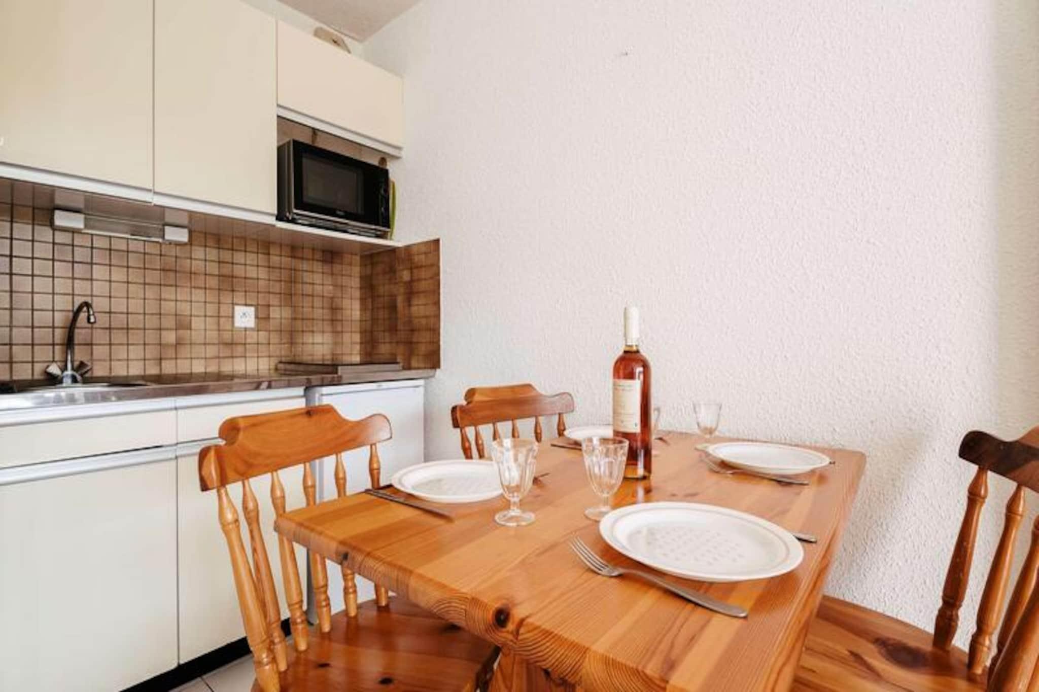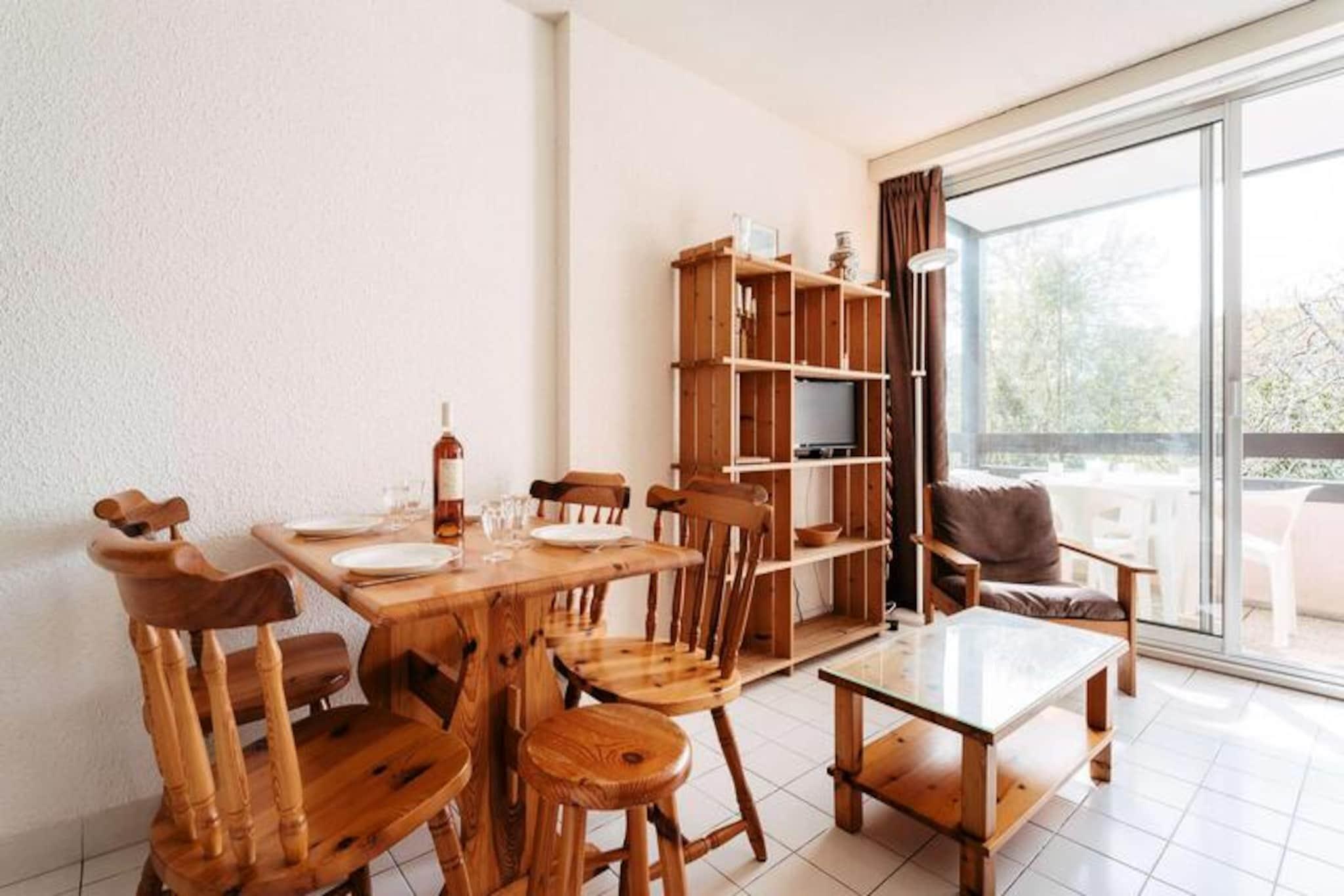 Denne hyggelige studiehytte tilbyder et behageligt ophold for op til 4 gæster. Den har en kabineindgang med to enkeltkøjesenge og et opholdsområde med spisebord, tv og en Rapido-sovesofa til to. Lejligheden er kæledyrsvenlig og tillader et dyr med et tillæg på EURO3 pr. dag. Ejendommen inkluderer en garageplads for ekstra bekvemmelighed og er perfekt til en lille familie eller gruppe, der søger en enkel, funktionel plads til deres ophold. Beliggende kun 300 meter fra butikkerne i Carnac Plage og 500 meter fra den smukke Grande Plage, er lejligheden ideelt beliggende for at udforske området. Gæsterne kan nyde lokale caféer, butikker og restauranter inden for gåafstand, og stranden er let tilgængelig for dem, der ønsker at slappe af ved havet. Boligens have giver en fredelig udsigt, og området er kendt for sine naturskønne vandrestier og charmerende omgivelser. Lejligheden har et fuldt udstyret køkkenområde med en kombineret mikrobølgeovn, køleskab og to-blus, hvilket gør det nemt at tilberede måltider. Bruserummet har et toilet, og den vestvendte loggia er perfekt til at nyde udsigten til haven. Valgfrie tjenester inkluderer slutrengøring, leje af sengetøj, udstyr til børnepasning og WiFi-miniboks for et mere behageligt ophold.