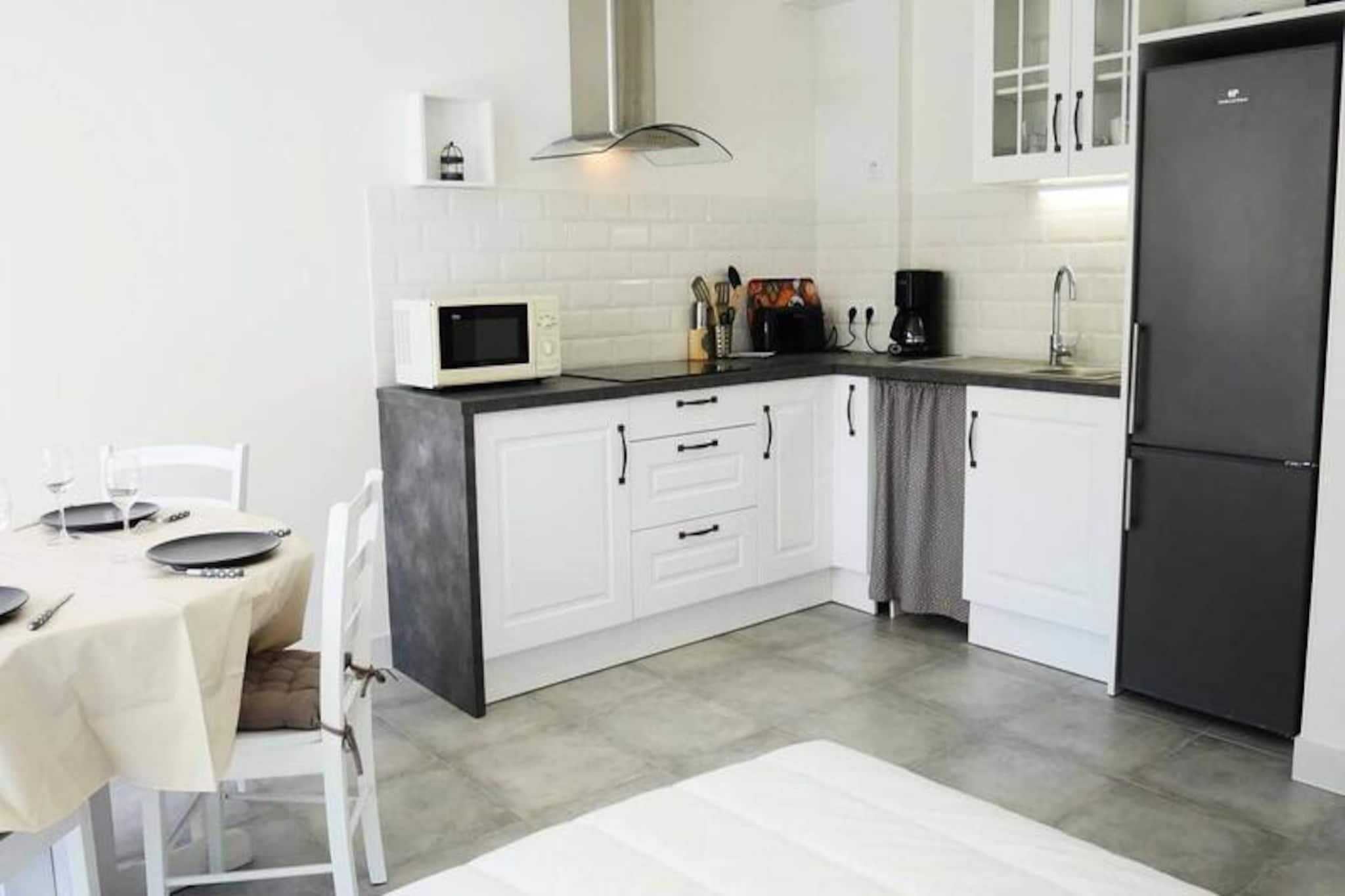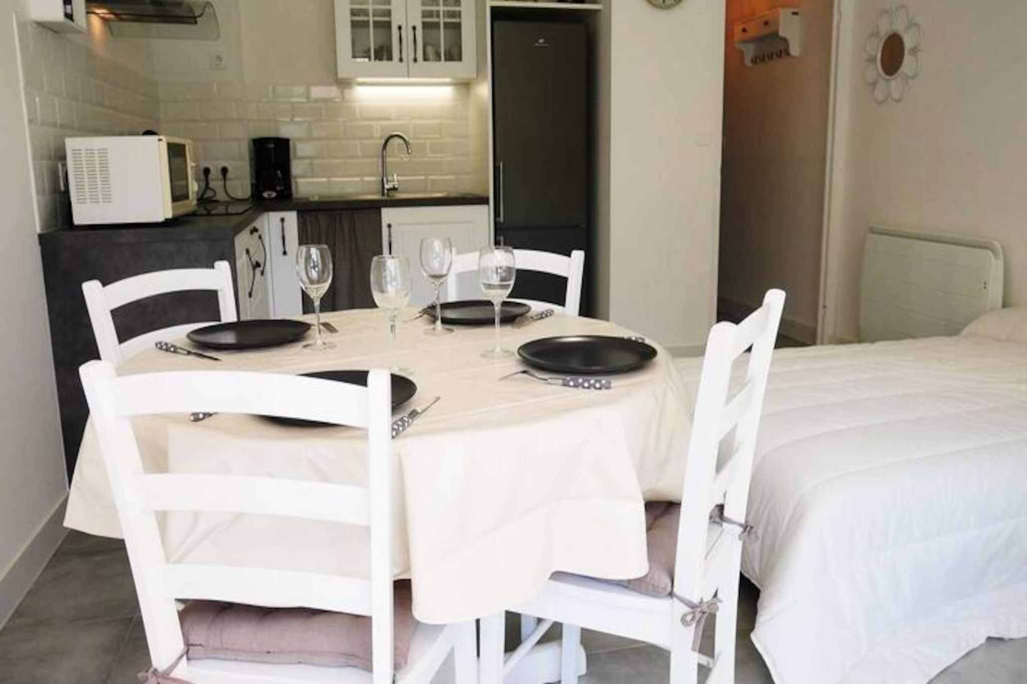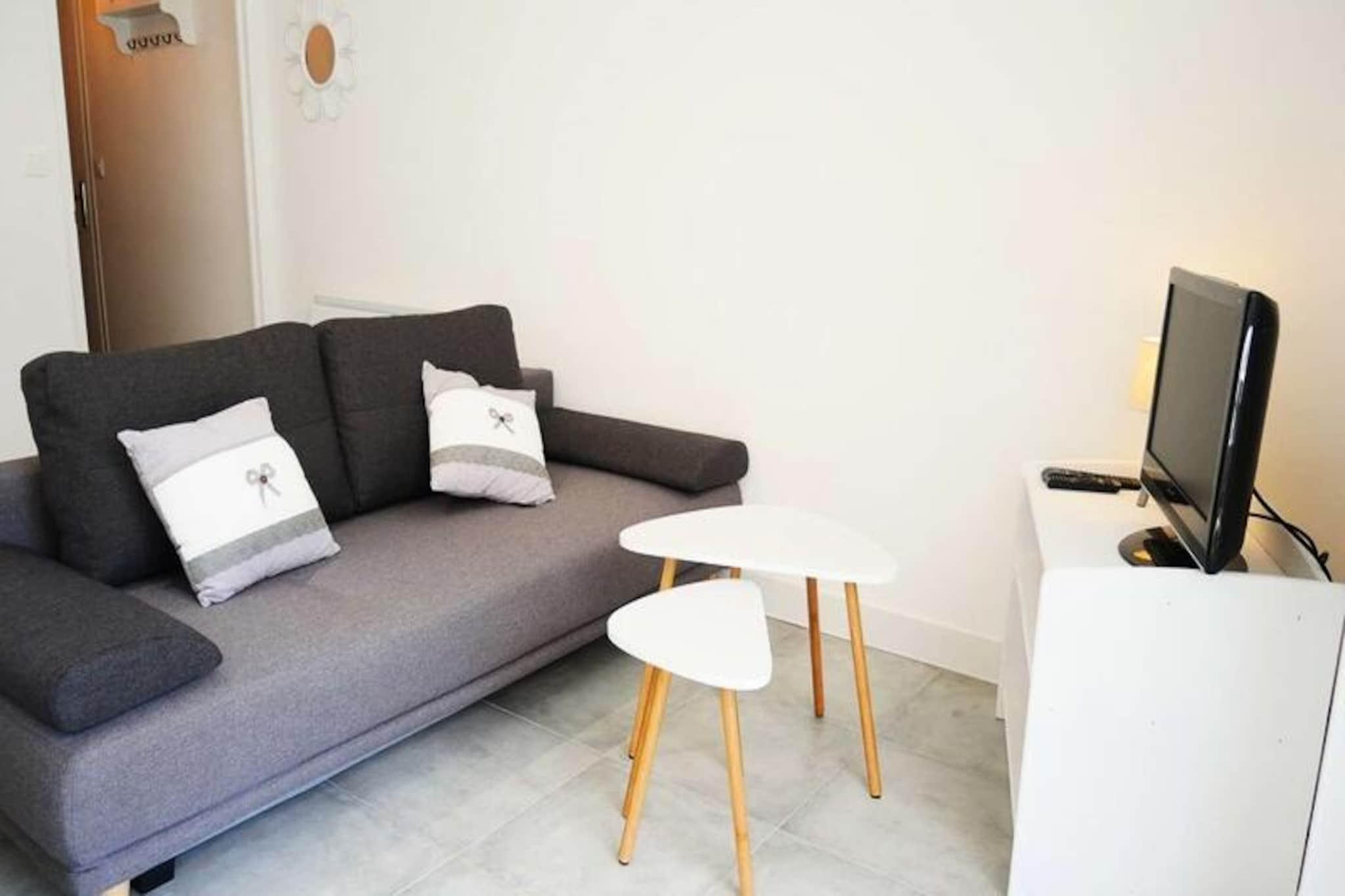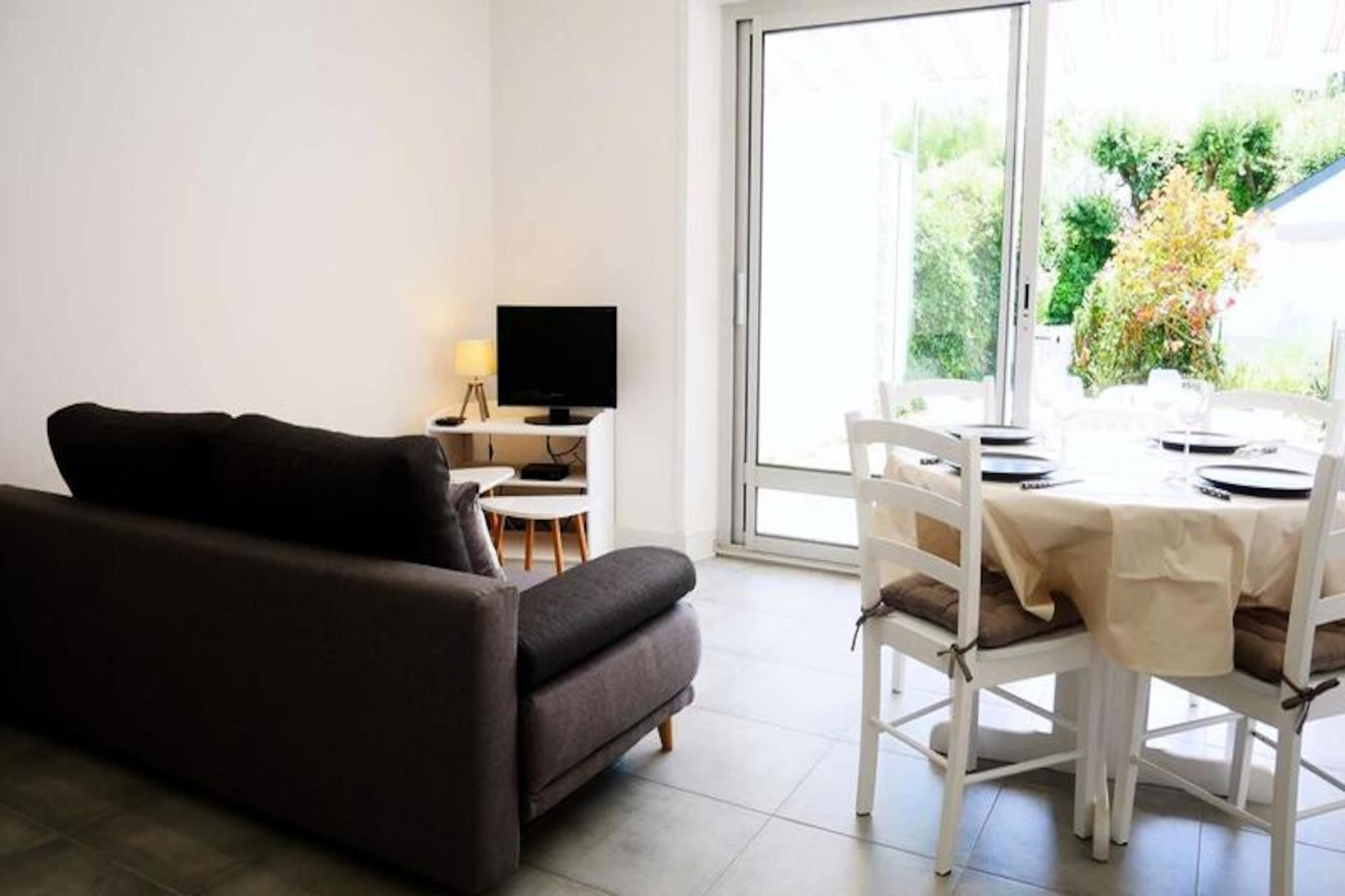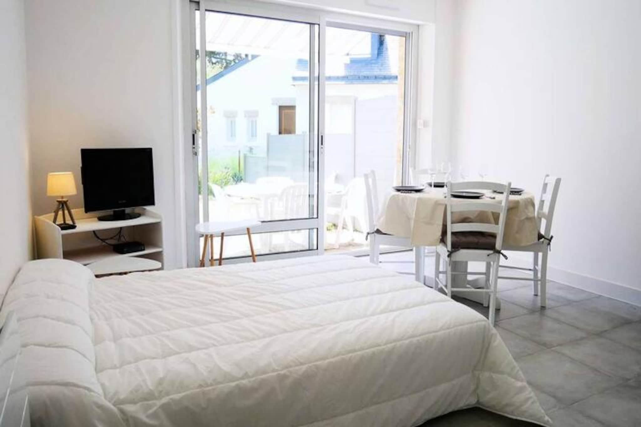 This well-appointed 2-room apartment, located on the ground floor of the TAL AR TREIZ Residence in Carnac, offers a cozy retreat for up to 4 guests. The living room features a dining area with a table and chairs, as well as a lounge area with a TV and a convertible sofa that sleeps 2. The apartment includes a private terrace, which opens onto a small enclosed garden, perfect for outdoor relaxation with garden furniture and an awning. The bedroom is equipped with two single beds, and the apartment is not pet-friendly. Ideally situated just 300 meters from St Colomban and Ty Bihan Beaches, the apartment allows guests to easily explore the area's natural beauty and charming surroundings. Carnac’s famous megalithic sites are just a short drive away, along with local cafes and markets where you can enjoy fresh produce and regional specialties. A variety of restaurants, shops, and recreational activities are within easy reach, making this a perfect base for both relaxation and exploration. The apartment is equipped with an efficient kitchen area featuring a fridge/freezer, 4-burner induction hob, microwave, and dishwasher. The shower room boasts a large flat shower with a seat, and a washing machine is available for your convenience. The property also includes separate WC facilities. A parking space is provided, ensuring easy access, and optional services such as end-of-stay cleaning and linen rental are available for added comfort. Heating and energy are included in the weekly price from May to September.