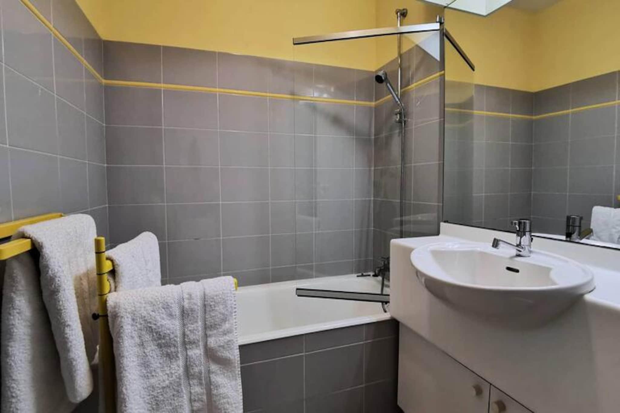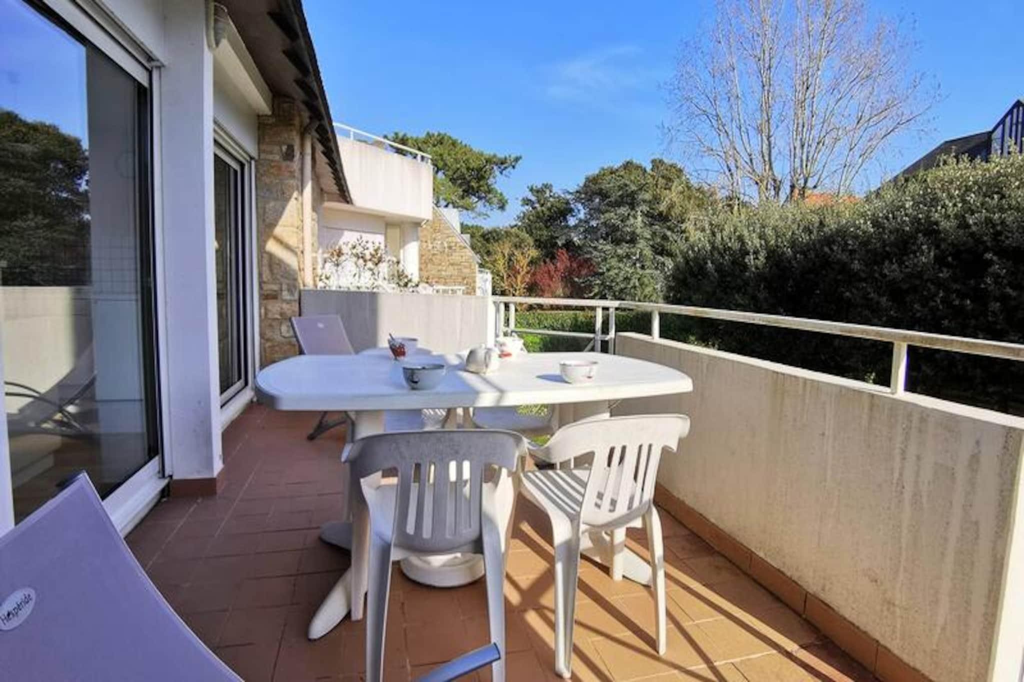 Beliggende i hjertet af Carnac Plage, kun 150 meter fra Grande Plage, er denne rummelige 58 m² store lejlighed ideel til op til 4 personer. Lejligheden ligger på 2. sal i ALBION-boligen og byder på opholdsstue med spiseplads og hyggelig opholdsstue med sofa og tv, der alt sammen fører til en sydvendt balkon med udsigt til haven. Det åbne køkken er fuldt udstyret med en elektrisk kogeplade med 4 brændere, ovn, mikroovn, vaskemaskine og et køleskab med bordplade. Lejligheden indeholder to soveværelser: det ene med to enkeltsenge (90 cm) og det andet med en dobbeltseng (140 cm) og et stort skab. Det har også et badeværelse og et separat toilet. Gratis WIFI er tilgængelig, hvilket sikrer et behageligt ophold. Lejligheden er suppleret med en garageplads (nr. 7) for parkering bekvemmelighed. Kæledyr er velkomne mod et ekstra gebyr. For yderligere komfort kan slutrengøring arrangeres mod et gebyr, og sengetøj og børnepasningsudstyr kan lejes. Varme og energi er inkluderet i højsæsonen fra 24. maj til 20. september 2025.