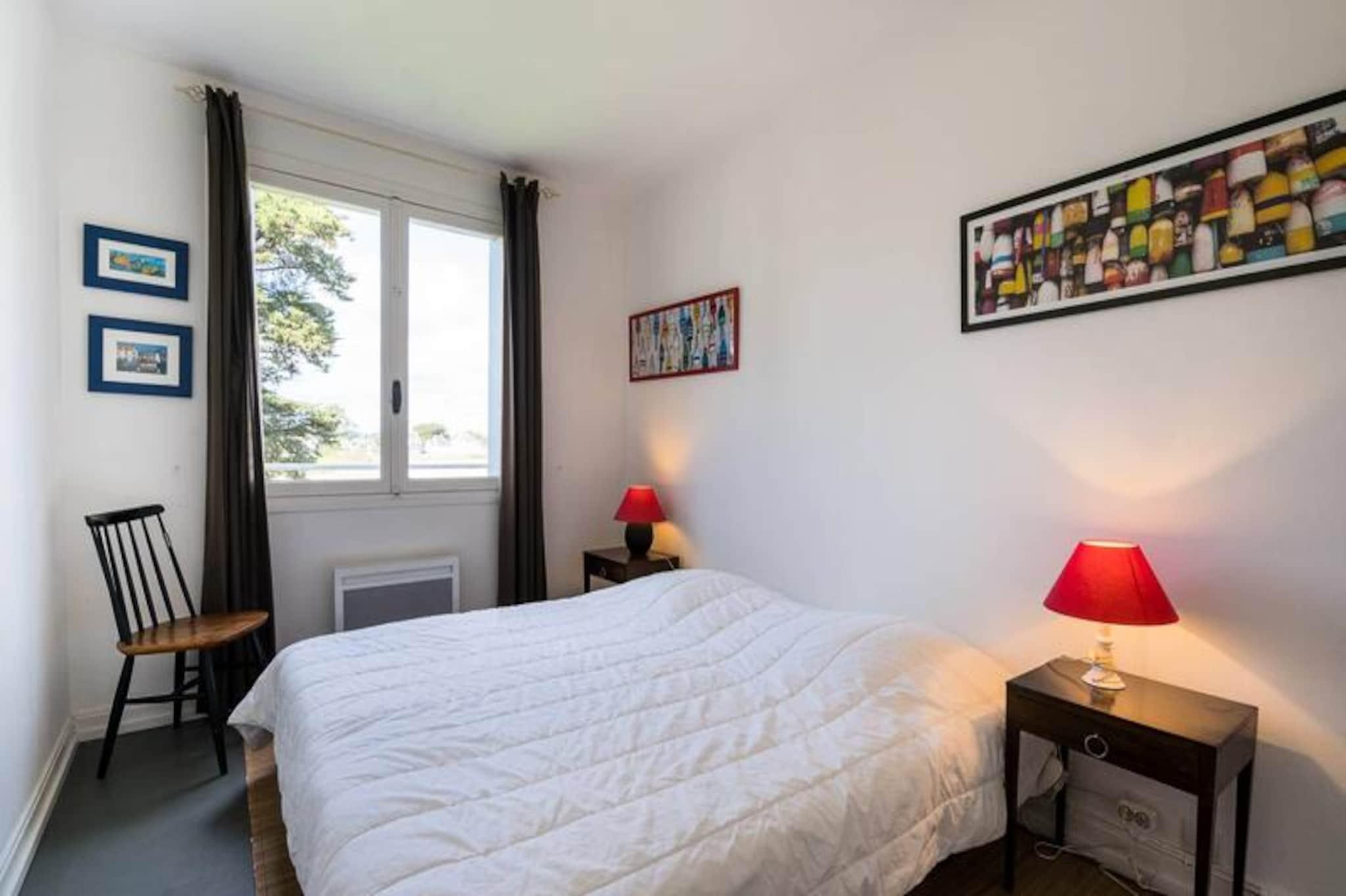 Forestil dig at vågne op til den beroligende lyd af bølger og Atlanterhavets salte brise. Denne charmerende 3-værelses lejlighed med soveområde, beliggende i den prestigefyldte Baie de Beaumer-residens i Carnac, tilbyder en plads på første række til Beaumer Beachs skønhed. Med sin sydvendte balkon og uforstyrrede havudsigt er dette tilflugtssted perfekt til dem, der søger en fredelig kystflugt med moderne bekvemmeligheder. Uanset om du nyder din morgenkaffe på balkonen eller ser solnedgangen male horisonten, føles hvert øjeblik her som et postkort, der kommer til live. Lejligheden er cirka 78 m² stor og har komfortabel plads til op til seks gæster. Stuen med sin hyggelige opholdsstue og spiseplads åbner direkte ud til balkonen, så du kan nyde den fantastiske udsigt. Det separate, fuldt udstyrede køkken har også havudsigt, hvilket gør madlavningen til en fornøjelse. Sovepladserne inkluderer en dobbeltseng i en alkove ved siden af ??stuen, et soveværelse med to enkeltsenge og en babyseng samt et andet soveværelse med to enkeltsenge og en håndvask. Yderligere faciliteter såsom brusebad, separat toilet, vaskemaskine, opvaskemaskine og fælles cykelopbevaring sikrer et problemfrit ophold. Overdækket parkering og muligheden for at medbringe et lille kæledyr gør denne ejendom endnu mere bekvem. Træd udenfor, og du er kun få øjeblikke fra den gyldne sandstrand på Beaumer Beach. Det omkringliggende område er rigt på aktiviteter, lige fra at udforske de historiske Carnac-sten til at dyrke vandsport eller cykle langs naturskønne kyststier. Med sin førsteklasses beliggenhed fungerer denne lejlighed som en ideel base for at opdage charmen ved Bretagnes sydkyst. Uanset om du er her for afslapning eller eventyr, lover denne oase ved havet en uforglemmelig ferieoplevelse.