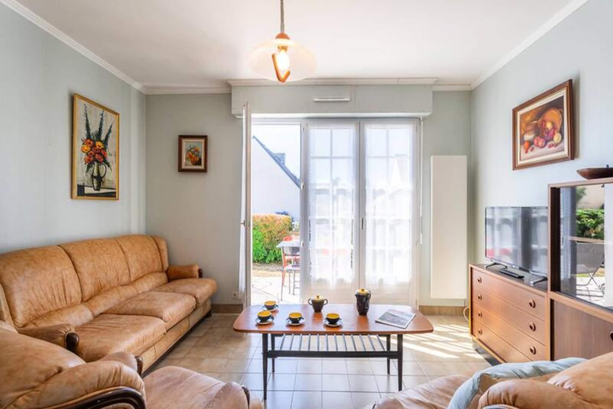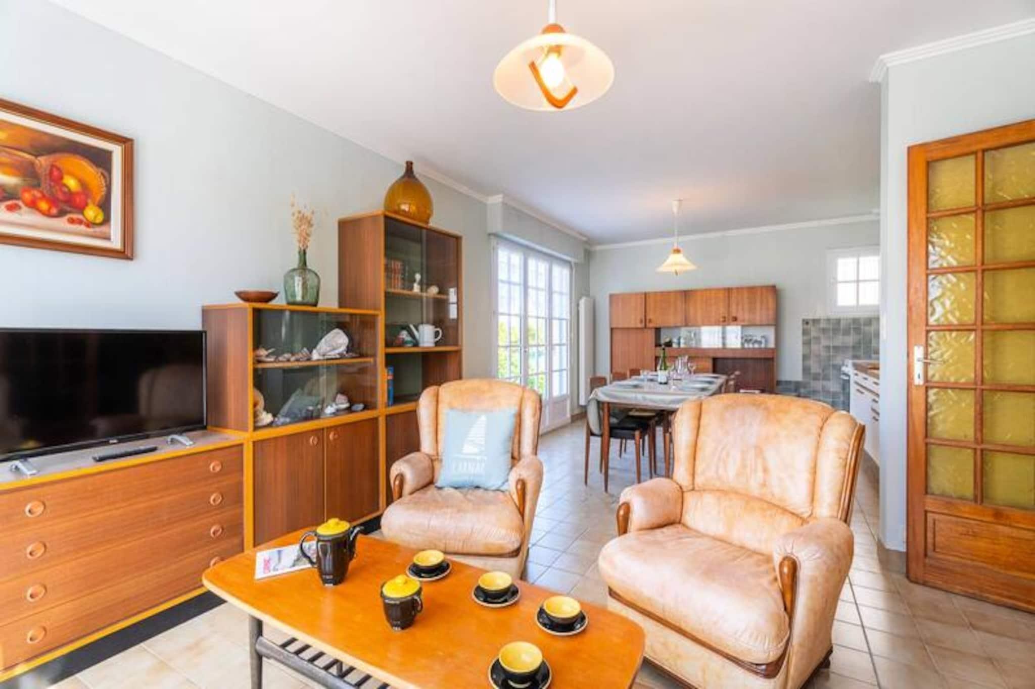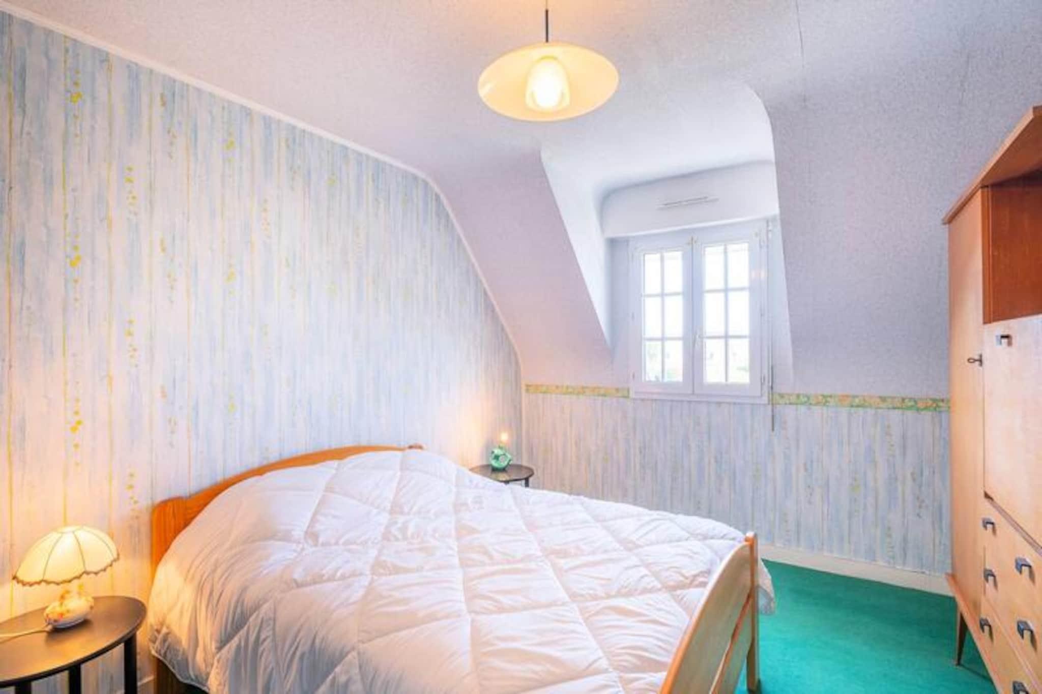 I den rolige boligenklave Clos de Kervégan, kun 1 km fra Carnacs charmerende bymidte og 2,5 km fra den fantastiske hovedstrand, tilbyder dette hus i neo-bretonsk stil et roligt tilflugtssted for op til 9 gæster. Omgivet af en lukket have er denne ejendom med 6 værelser perfekt til familier eller grupper, der søger komfort og afslapning i hjertet af Bretagne. Træd ind i et indbydende opholdsrum, hvor spisepladsen og den hyggelige stue med sofa, lænestole og tv åbner ud til en solbeskinnet sydvendt terrasse. Terrassen strækker sig problemfrit ind i den private have, komplet med havemøbler til udendørs spisning eller rolige morgener med en bog. Det åbne køkken er fuldt udstyret med moderne apparater, herunder en 4-brænder keramisk kogeplade, ovn, mikrobølgeovn og køleskab/fryser, hvilket sikrer, at du har alt, hvad du behøver for at tilberede lækre måltider. Stueetagen har også et soveværelse med to enkeltsenge, et badeværelse og et separat toilet. Ovenpå finder du tre rummelige soveværelser med dobbeltsenge og et fjerde soveværelse med en enkeltseng, alle omhyggeligt designet til afslappende nætter. Et brusebad og et ekstra toilet fuldender den øverste etage. Ejendommen inkluderer også en garage med vaskemaskine og privat parkering i gården, hvilket sikrer bekvemmelighed under hele dit ophold. Udforsk Carnacs rige historie og naturlige skønhed, kendt for sine ikoniske megalitiske linjer, sandstrande og pulserende lokale markeder. Uanset om du slentrer gennem byens centrum, dyrker vandsport langs kysten eller blot slapper af i den fredelige have, tilbyder dette hjem en ideel base for at skabe uforglemmelige minder i Bretagne.