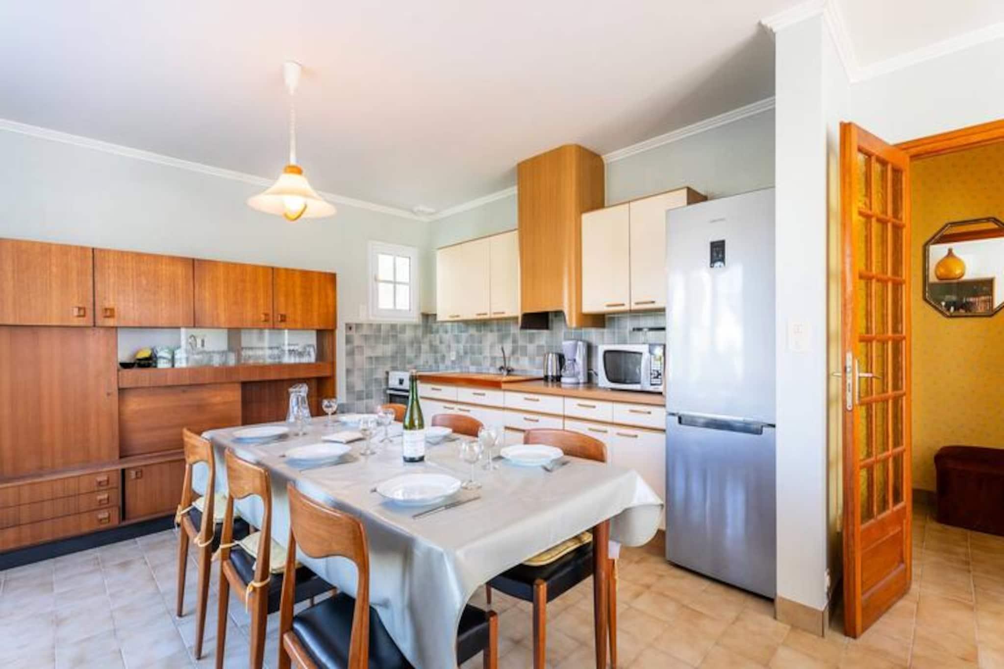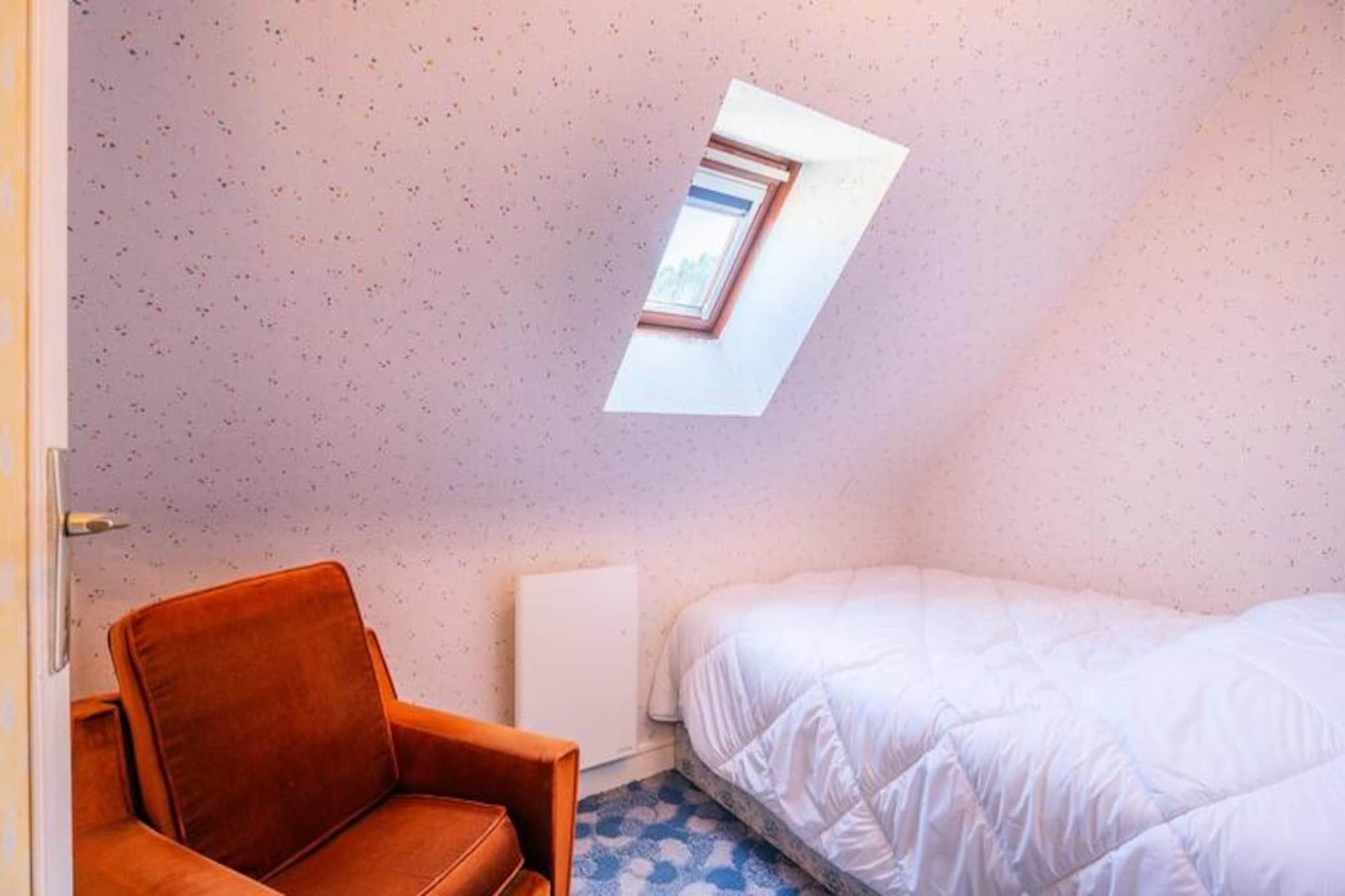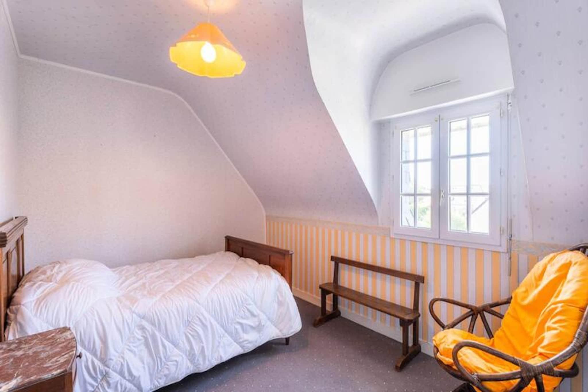I den rolige boligenklave Clos de Kervégan, kun 1 km fra Carnacs charmerende bymidte og 2,5 km fra den fantastiske hovedstrand, tilbyder dette hus i neo-bretonsk stil et roligt tilflugtssted for op til 9 gæster. Omgivet af en lukket have er denne ejendom med 6 værelser perfekt til familier eller grupper, der søger komfort og afslapning i hjertet af Bretagne. Træd ind i et indbydende opholdsrum, hvor spisepladsen og den hyggelige stue med sofa, lænestole og tv åbner ud til en solbeskinnet sydvendt terrasse. Terrassen strækker sig problemfrit ind i den private have, komplet med havemøbler til udendørs spisning eller rolige morgener med en bog. Det åbne køkken er fuldt udstyret med moderne apparater, herunder en 4-brænder keramisk kogeplade, ovn, mikrobølgeovn og køleskab/fryser, hvilket sikrer, at du har alt, hvad du behøver for at tilberede lækre måltider. Stueetagen har også et soveværelse med to enkeltsenge, et badeværelse og et separat toilet. Ovenpå finder du tre rummelige soveværelser med dobbeltsenge og et fjerde soveværelse med en enkeltseng, alle omhyggeligt designet til afslappende nætter. Et brusebad og et ekstra toilet fuldender den øverste etage. Ejendommen inkluderer også en garage med vaskemaskine og privat parkering i gården, hvilket sikrer bekvemmelighed under hele dit ophold. Udforsk Carnacs rige historie og naturlige skønhed, kendt for sine ikoniske megalitiske linjer, sandstrande og pulserende lokale markeder. Uanset om du slentrer gennem byens centrum, dyrker vandsport langs kysten eller blot slapper af i den fredelige have, tilbyder dette hjem en ideel base for at skabe uforglemmelige minder i Bretagne.