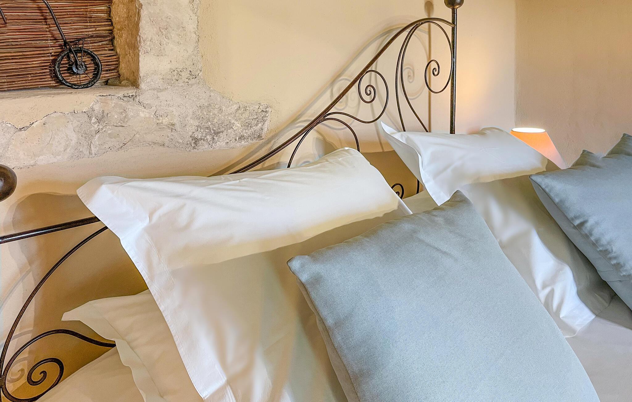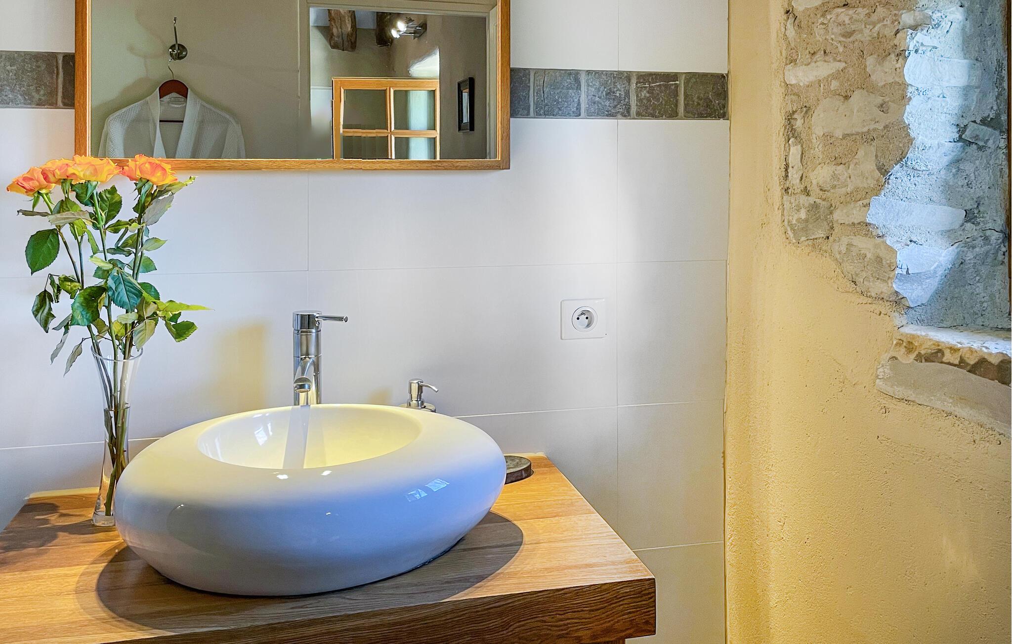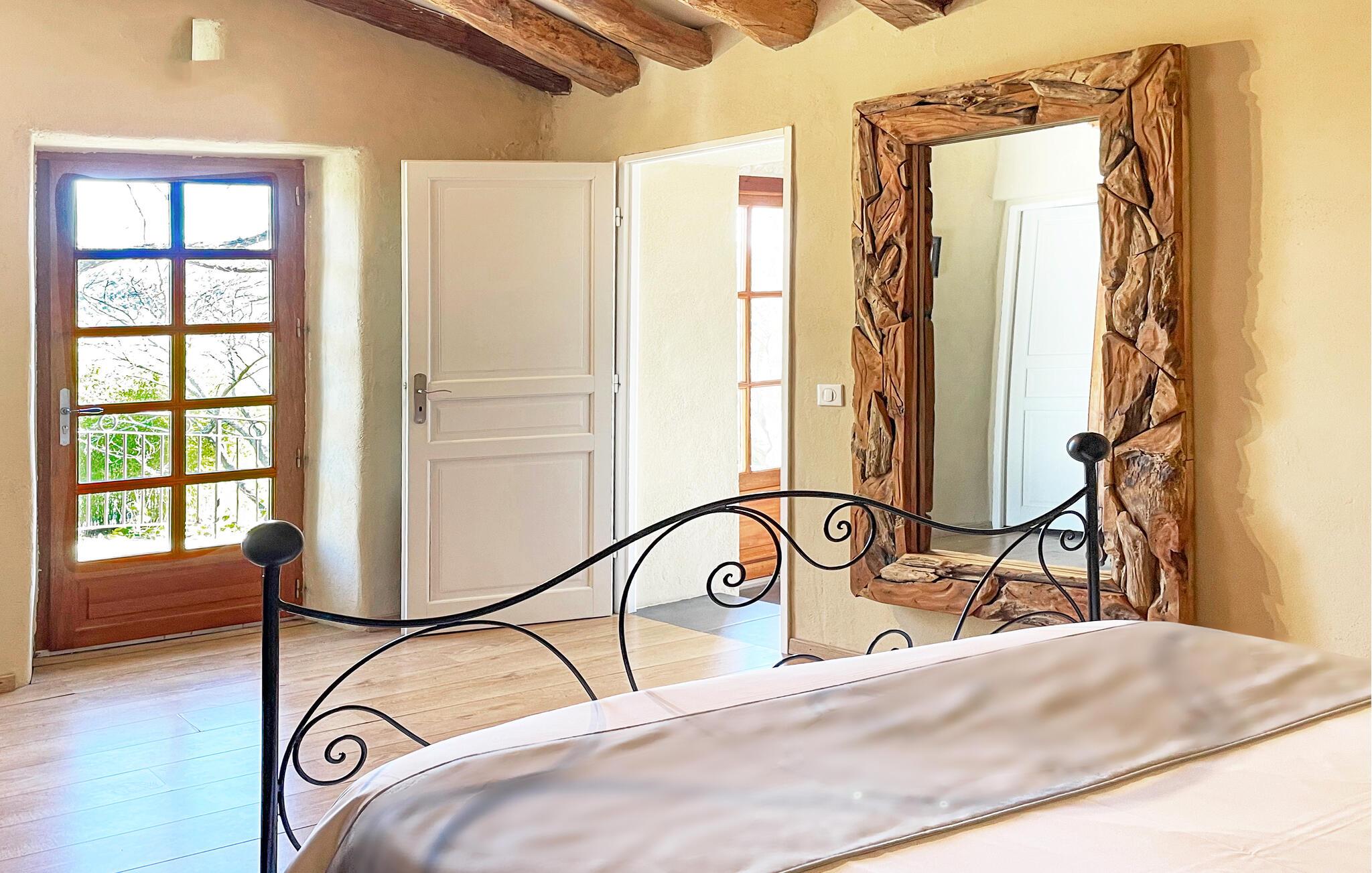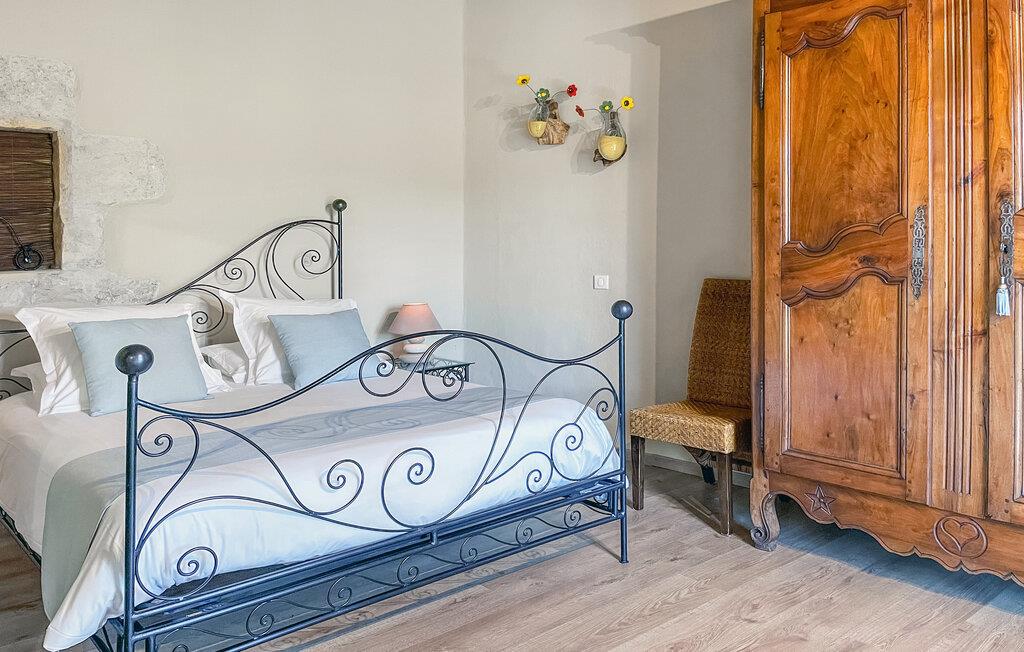 Oplev en romantisk ferieflugt, et perfekt tilflugtssted for to mellem Nîmes og Montpellier, beliggende i en fængslende stenejendom, der tilbyder en fælles swimmingpool. Denne charmerende feriebolig er beliggende i et ombygget kloster fra det 9. århundrede, en del af en dejlig ejendom med seks boliger skræddersyet til par. Fordyb dig i den fredfyldte atmosfære på tværs af ejendommen, omgivet af vinmarker. Dette tilflugtssted kan prale af et komfortabelt loungeområde. Nyd panoramaudsigten over vinmarkerne og haven. Spiseområdet er perfekt til intime måltider. Køkkenet er fuldt udstyret med moderne bekvemmeligheder. Soveværelset har smukt højt til loftet og rustikke bjælker, og indbyder til at opleve maleriske udsigter over vinmarker og landskab. Udendørs faciliteter inkluderer et vaskerum deles med andre gæster, en vidtstrakt park, en fælles swimmingpool sikkert bevogtet af et alarmsystem og en privat træterrasse, en spa og to liggestole til eksklusiv afslapning. En kulgrill er perfekt til udendørs spisning, og der er en petanquebane til at nyde dette traditionelle franske spil. Oplev en romantisk flugt nedsænket i den naturlige skønhed af dette fantastiske feriested. Ejendommen er beliggende mellem Nîmes og Montpellier, tæt på landsbyen Carnas, nær den middelalderlige landsby Sommières. Med 300 solskinsdage om året byder dette hjørne af paradis i den provencalske Gard på landskaber af sjælden skønhed: 30 minutter til Camargue og sandstrandene i Languedoc. Et stenkast væk afslører nationalparken Cévennes lige så spektakulære landskaber. Regionen er rig på en fantastisk historisk arv: Byen Avignon, de romerske byer Nîmes og Arles, Pont du Gard, Hertugdømmet Uzès, de historiske Languedoc-byer Montpellier, Pézenas, Aigues-Mortes, Sommières og Sauve og et væld af charmerende landsbyer at besøge. Denne ferieejendom er et ideelt udgangspunkt for at opdage Camargue, Cevennerne, Gard Provençal, Languedoc.