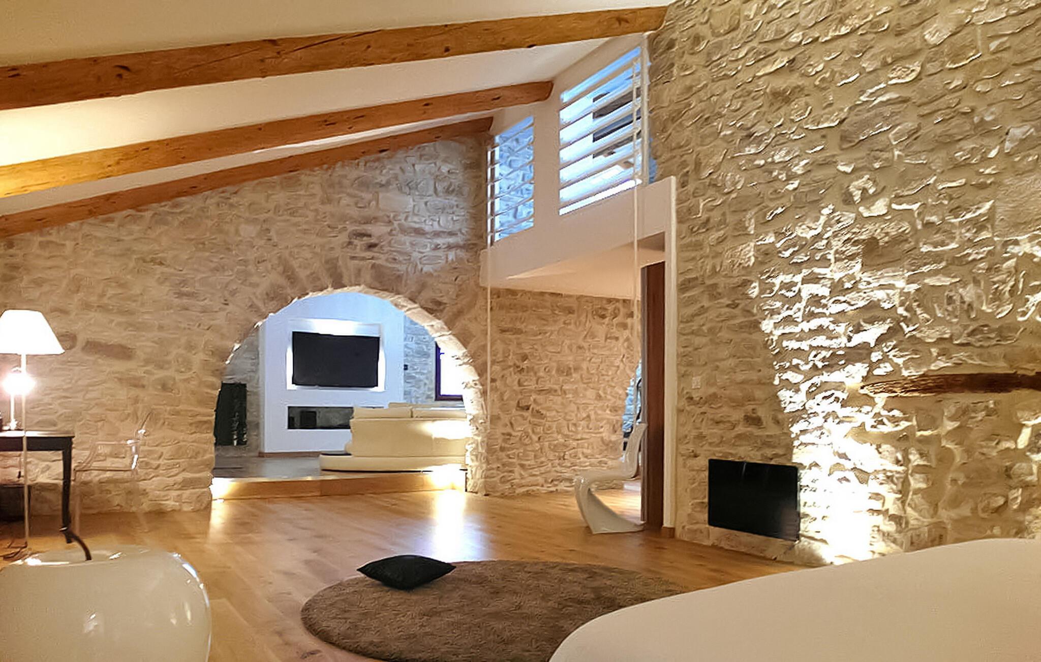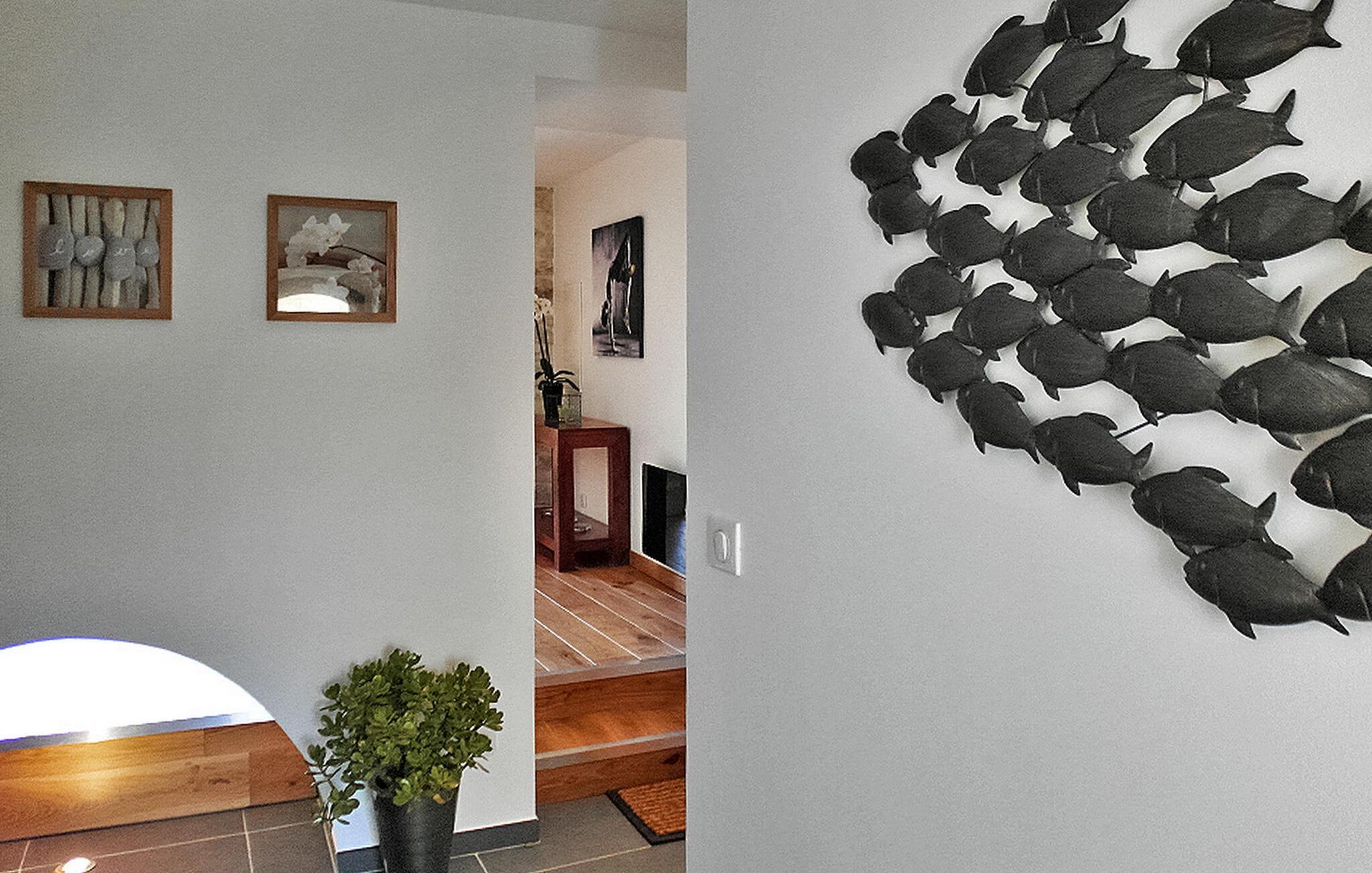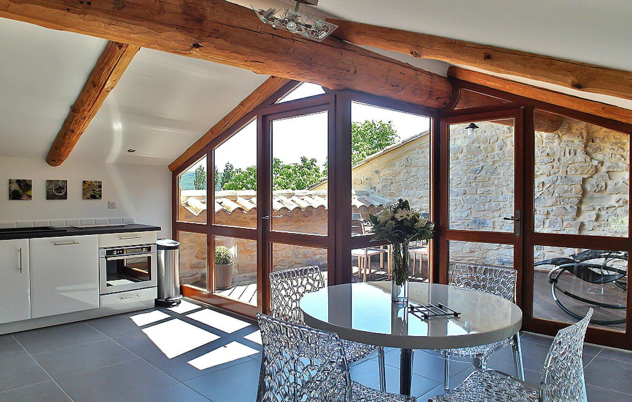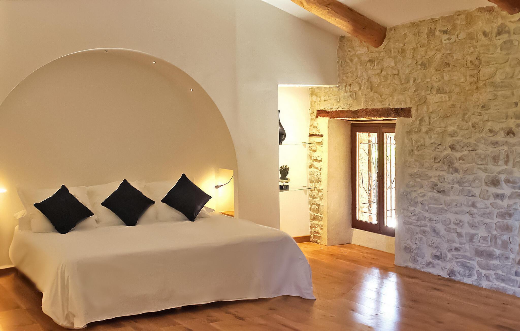 Nyd denne ferieudlejning designet til to, og lover et intimt og romantisk tilflugtssted mellem Nîmes og Montpellier. Beliggende i et tidligere kloster fra det 9. århundrede, kan denne prestigefyldte ejendom prale af seks udsøgte feriehuse, hver skræddersyet til to gæster, midt i en fredfyldt ejendom omgivet af vinmarker. Denne udlejning udstråler luksus og komfort. Det nederste niveau, der ligger på 1. sal, inviterer dig til at slappe af med stil. Beundre den blottede stenvæg, slap af på en designer-lædersofa fra Roch & Bobois, og forkæl dig selv med det gigantiske fladskærms-tv, der er synligt fra den hyggelige seng. For ekstra forkælelse kan du nyde den 2-personers indendørs jacuzzi med massagedyser og farveterapi. Gå op til det øverste niveau via en lufttrappe for at finde et veludstyret køkken. Få adgang til den charmerende terrasse, der ligger på toppen af tagene og tilbyder panoramaudsigt, et bord til udendørs spisning og to indbydende liggestole. Ud over boligen kan du udforske den fælles park med fængslende vingårdsudsigt og nyde den sikrede swimmingpools forfriskende vand, beskyttet af en alarm. Deltag i afslappet grillaften med en kulgrill og nyd venskabelige spil petanque på banen. Oplev et virkelig fortryllende feriested i denne luksuriøse udlejning, fyldt med overdådighed, komfort og betagende omgivelser. Ejendommen er beliggende mellem Nîmes og Montpellier, tæt på landsbyen Carnas, nær den middelalderlige landsby Sommières. Med 300 solskinsdage om året byder dette hjørne af paradis i den provencalske Gard på landskaber af sjælden skønhed: 30 minutter til Camargue og sandstrandene i Languedoc. Et stenkast væk afslører nationalparken Cévennes lige så spektakulære landskaber. Regionen er rig på en fantastisk historisk arv: Byen Avignon, de romerske byer Nîmes og Arles, Pont du Gard, Hertugdømmet Uzès, de historiske Languedoc-byer Montpellier, Pézenas, Aigues-Mortes, Sommières og Sauve og et væld af charmerende landsbyer at besøge. Denne ferieejendom er et ideelt udgangspunkt for at opdage Camargue, Cevennerne, Gard Provençal, Languedoc.