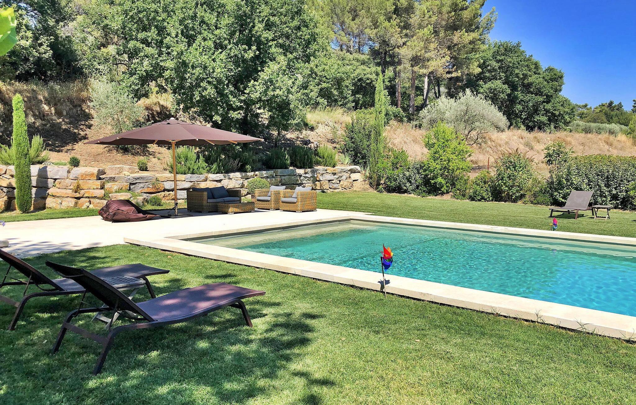 Beliggende i de rolige omgivelser tilbyder dette nybyggede provencalske bondehus moderne bekvemmeligheder. Perfekt til familier eller venner, stuehuset har en storslået opvarmet pool og en stor have med udsigt over landskabet, der lover en vidunderlig ferieoplevelse.