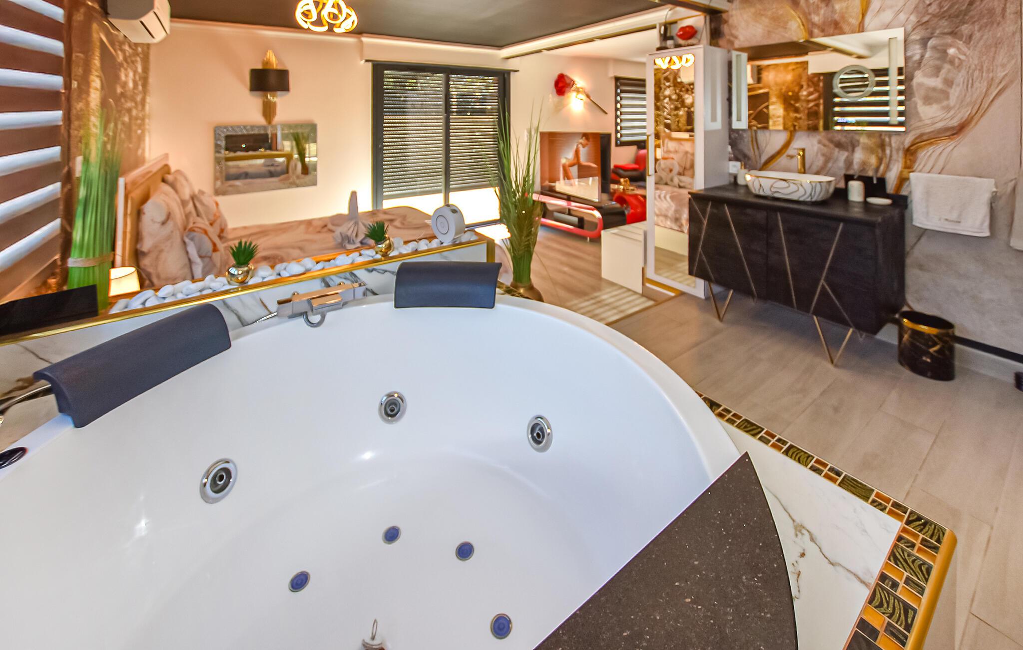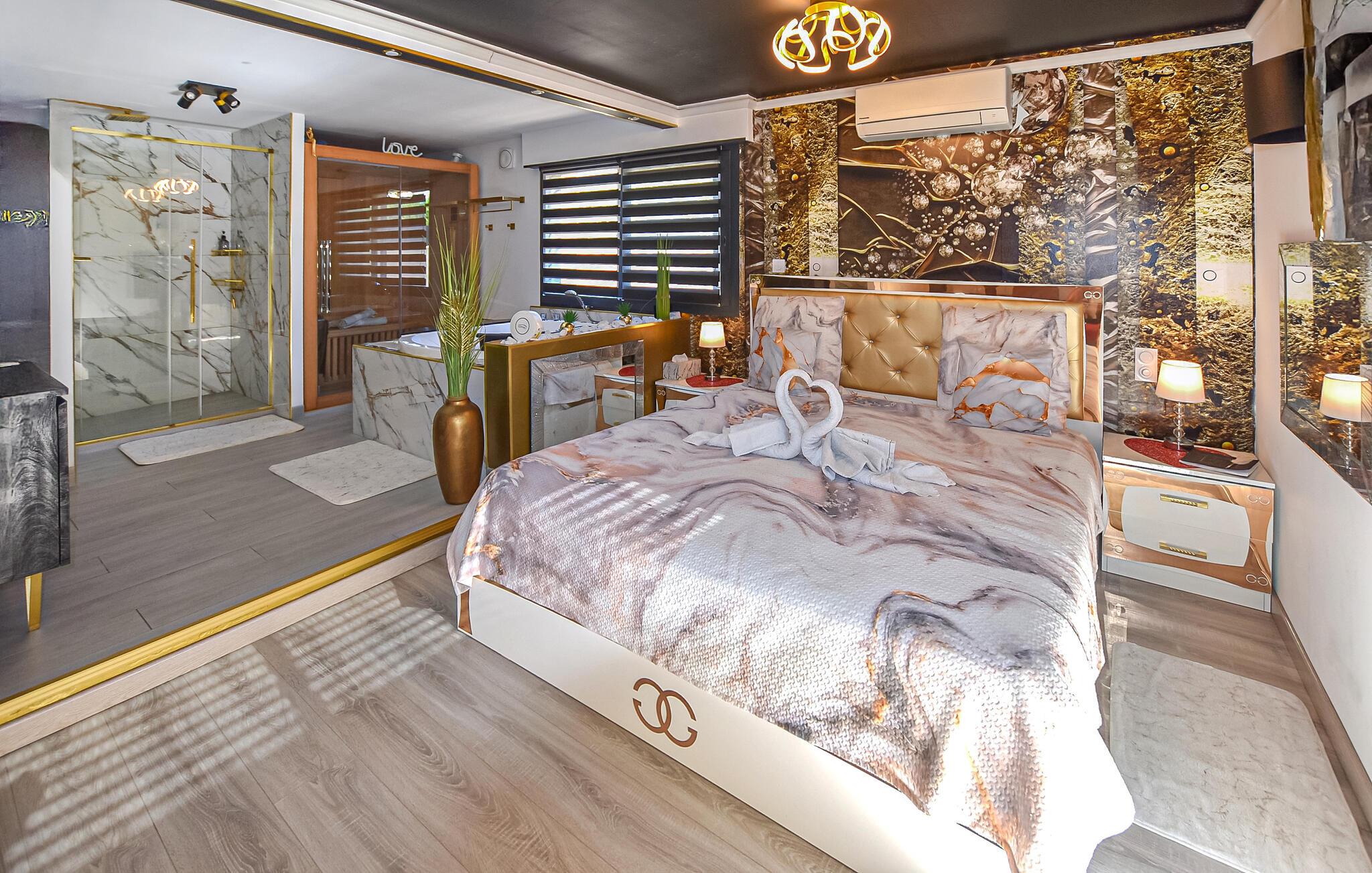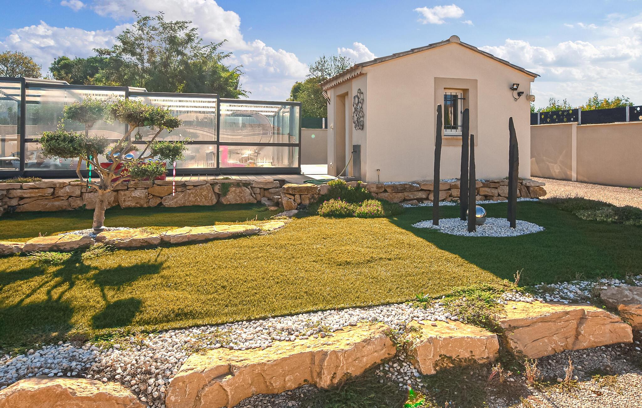 Nyd en romantisk ferie i dette komfortable feriehus med pool, spabad og sauna.