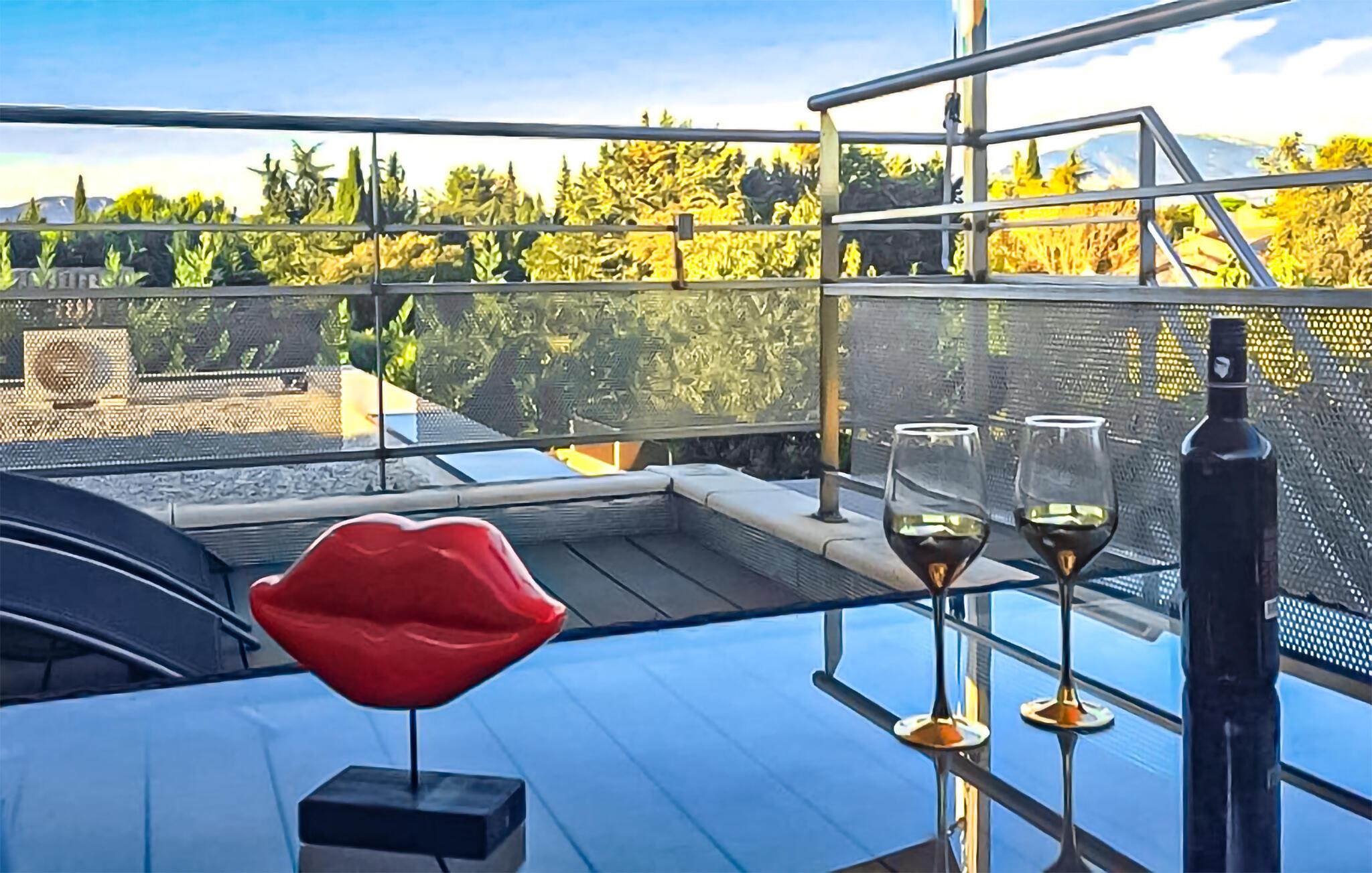 I kan bruge jeres private pool indendørs eller udendørs, afhængigt af vejret. Slap af på de behagelige liggestole og lad udsigten over Mont Ventoux fortrylle jer med et glas vin på tagterrassen.