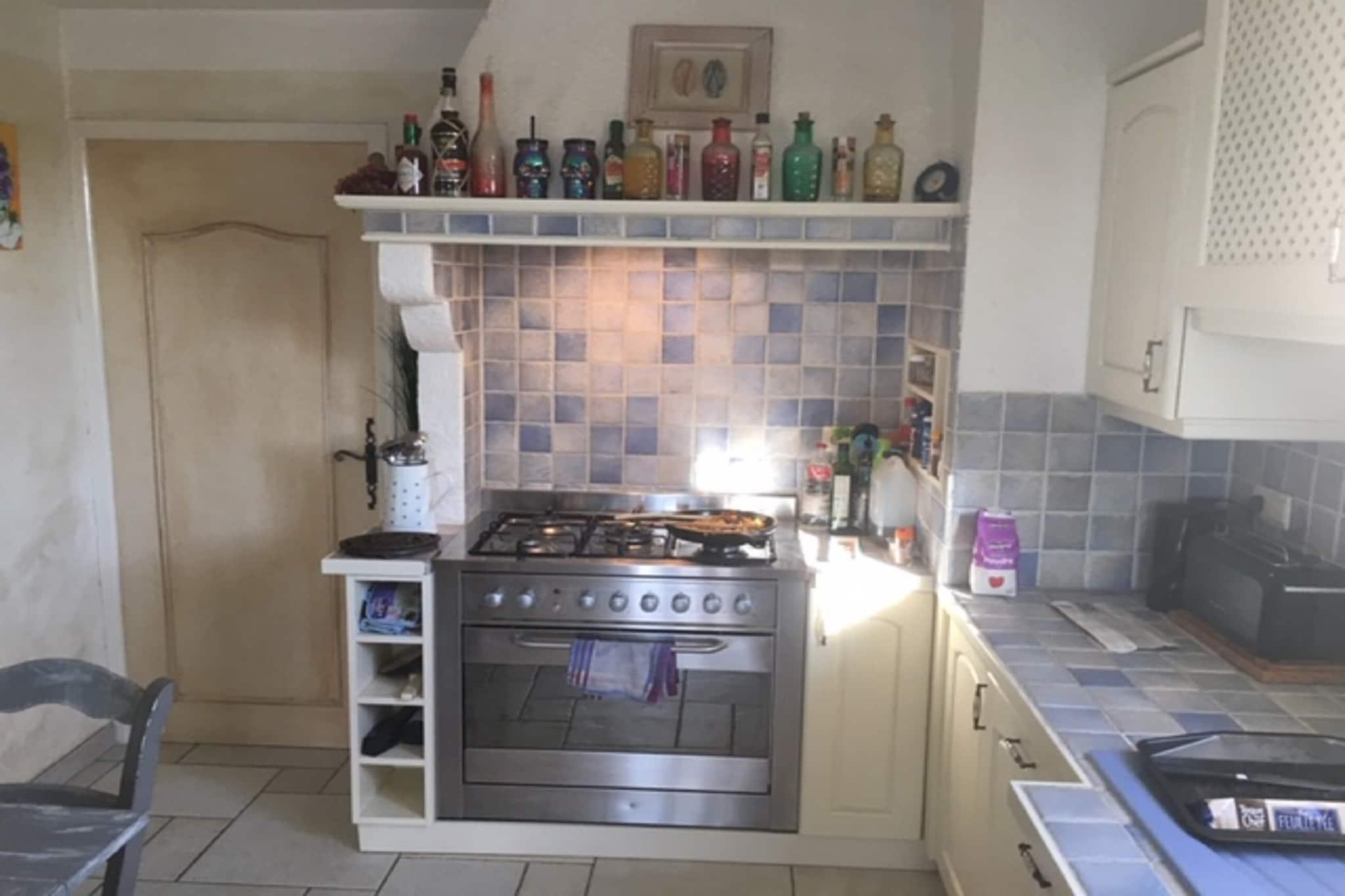 Ground floor: (Living room(TV, seating area, air conditioning), dining room(dining table), Kitchen(dining table, electric kettle, espresso machine, oven, microwave, dishwasher, fridge, fridge, freezer, tumble dryer), toilet) On the 1st floor: (bedroom(double bed(160 x 200 cm), air conditioning), bedroom(double bed(160 x 200 cm), air conditioning), bedroom(double bed(160 x 200 cm), balcony, air conditioning), Bedroom with bathroom(double bed(160 x 200 cm), shower, air conditioning), bathroom(shower), toilet) terrace(private, 40 m2), terrace, garden(private), BBQ, swimming pool(private, 12 x 6 m., opened from 1/2 Apr upto and including Oct), boules court, table tennis table