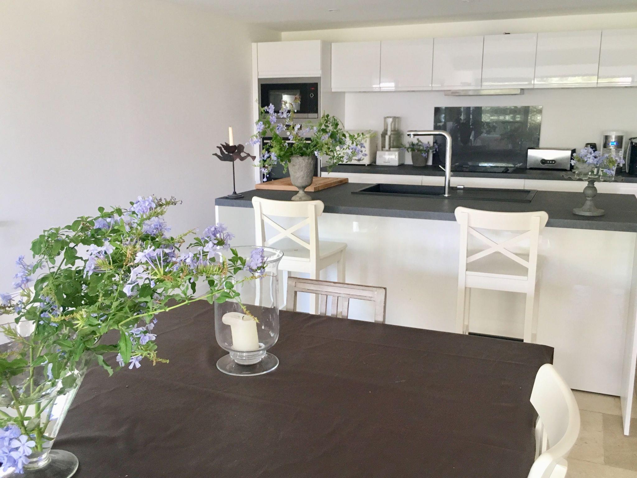 The interior of the villa's ground-floor flat is equipped for maximum comfort. It comprises 3 bedrooms sleeping up to 6 people, 3 bathrooms, 2 separate WCs, and benefits from modern facilities such as roller shutters, flat-screen TV, DVD player and Wi-Fi internet access. Reversible air conditioning with individual programming for each room will add to your comfort whatever the season. The open-plan kitchen is fully equipped with an American-style fridge, dishwasher, extractor hood, electric oven and microwave, providing everything you need to prepare your meals just like at home.