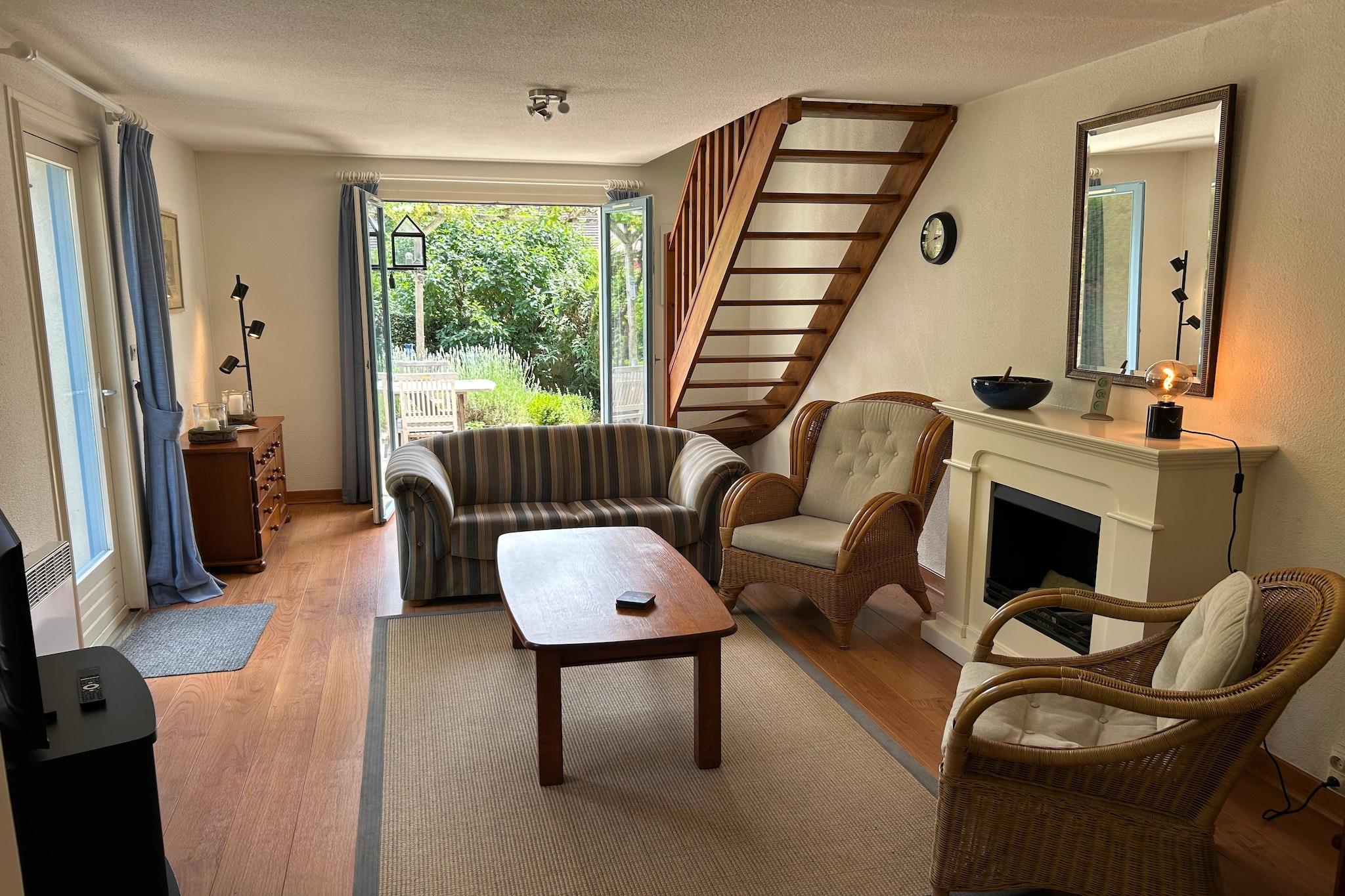 Stueetage: (åbent køkken(kogeplade, håndvask, vaskemaskine), stue / spisestue(Fjernsyn, spisebord, sofahjørne), soveværelse(dobbeltseng, køjeseng), badeværelse(bruser, håndvask, toilet)) På 1. etage: (soveværelse(enkeltseng, enkeltseng)) have, grill, swimmingpool(deles med andre gæster), cykler til rådighed, Haveskur