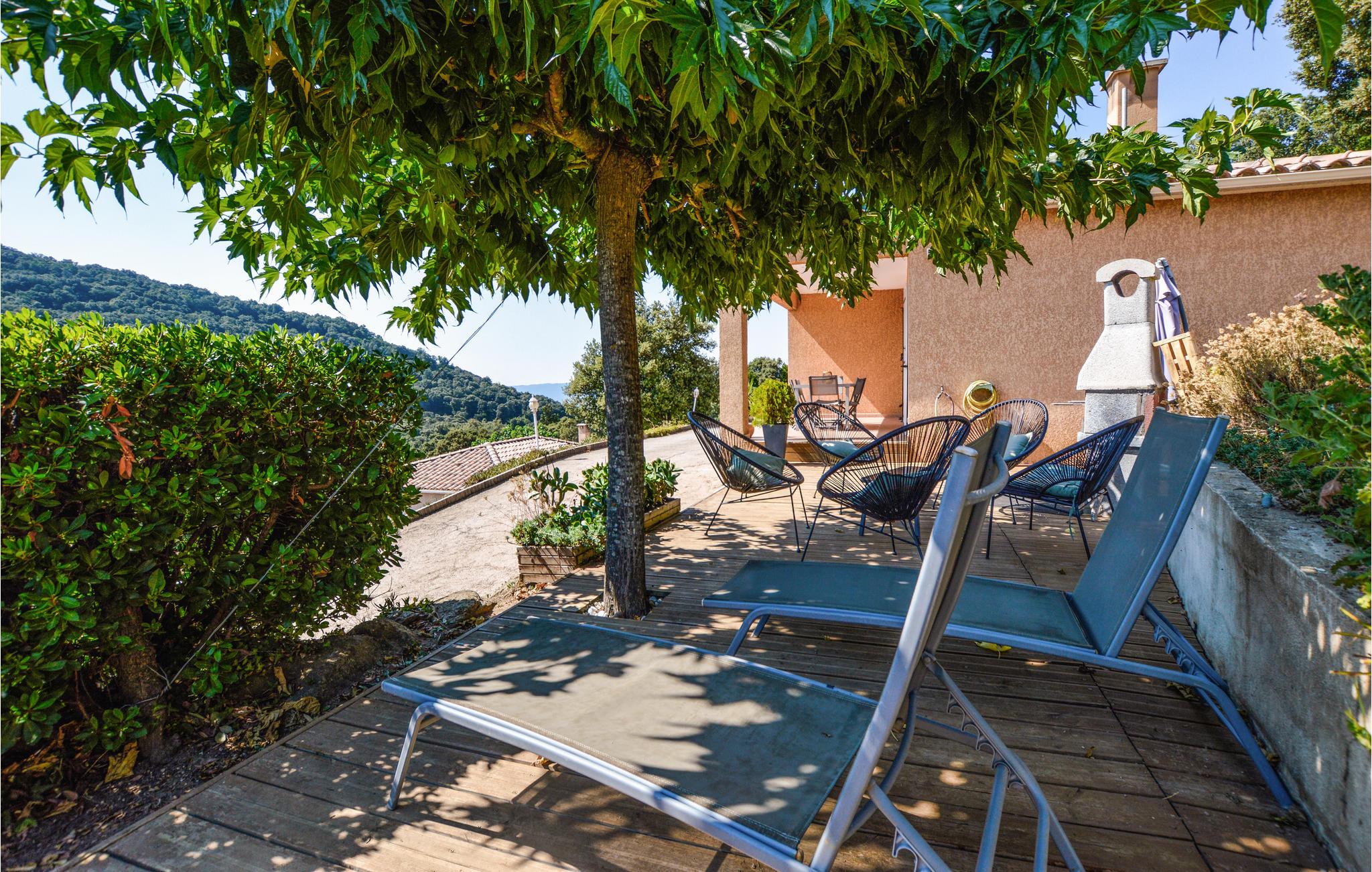 Dejligt feriehus på skønhedens ø. 10 km væk er badebyen Propriano med sine strande og havn. Nyd Bains de Baraccis kurbade, spadsér gennem den høje bjerglandsby Sartène (26 km) eller nyd de naturlige omgivelser i Baracci Natura med klatrerute og svævebane. 21 km væk er den lille badeby Porto Pollo med den smukke og indbydende Plage de Cupabia. Kør til Bonifacio (76 km) og oplev atmosfæren på havnen, besøg citadellet og de imponerende kalkstensklipper samt Porto Vecchio (84 km) med de fantastiske sandstrande Santa Guilia, La Rondinara og Palombaggia. Med dette charmerende feriehus kan din ferie i Korsika kun blive en succes.
