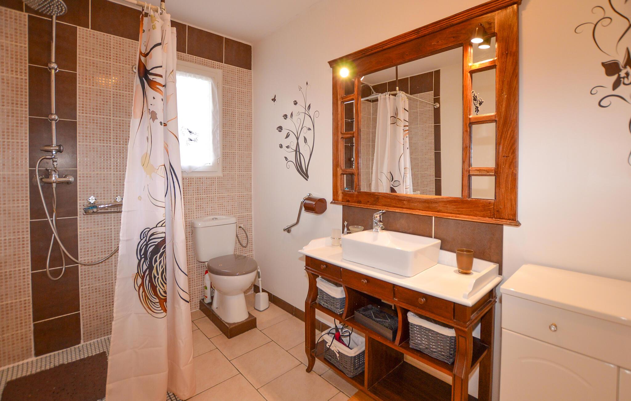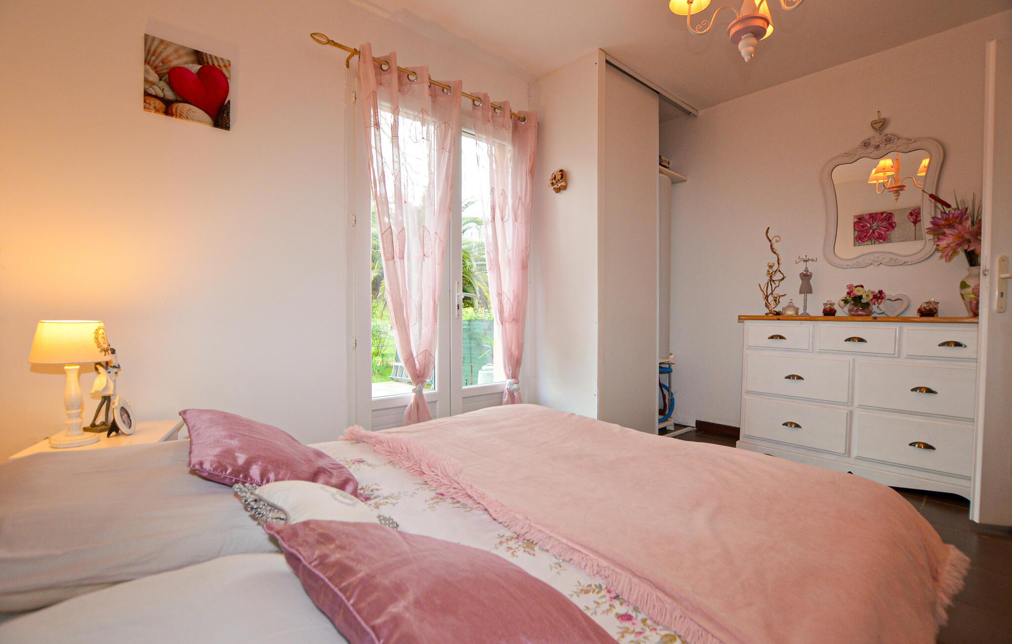 Tilbring en ubekymret pause i dette roligt beliggende hus på Korsika, kun få minutters kørsel fra Bastia Lufthavn. Det dobbelthus tilbyder masser af privatliv og er ideelt for par eller små familier. Slap af i den enkelt designede opholdsstue med praktiske møbler, en komfortabel sofa og et tv. Tilbered dagens måltider i det åbne køkken med den store arbejdsplads. Nyd udsigten over de grønne områder gennem vinduerne, eller brug den lyse spiseplads til fælles morgenmad.