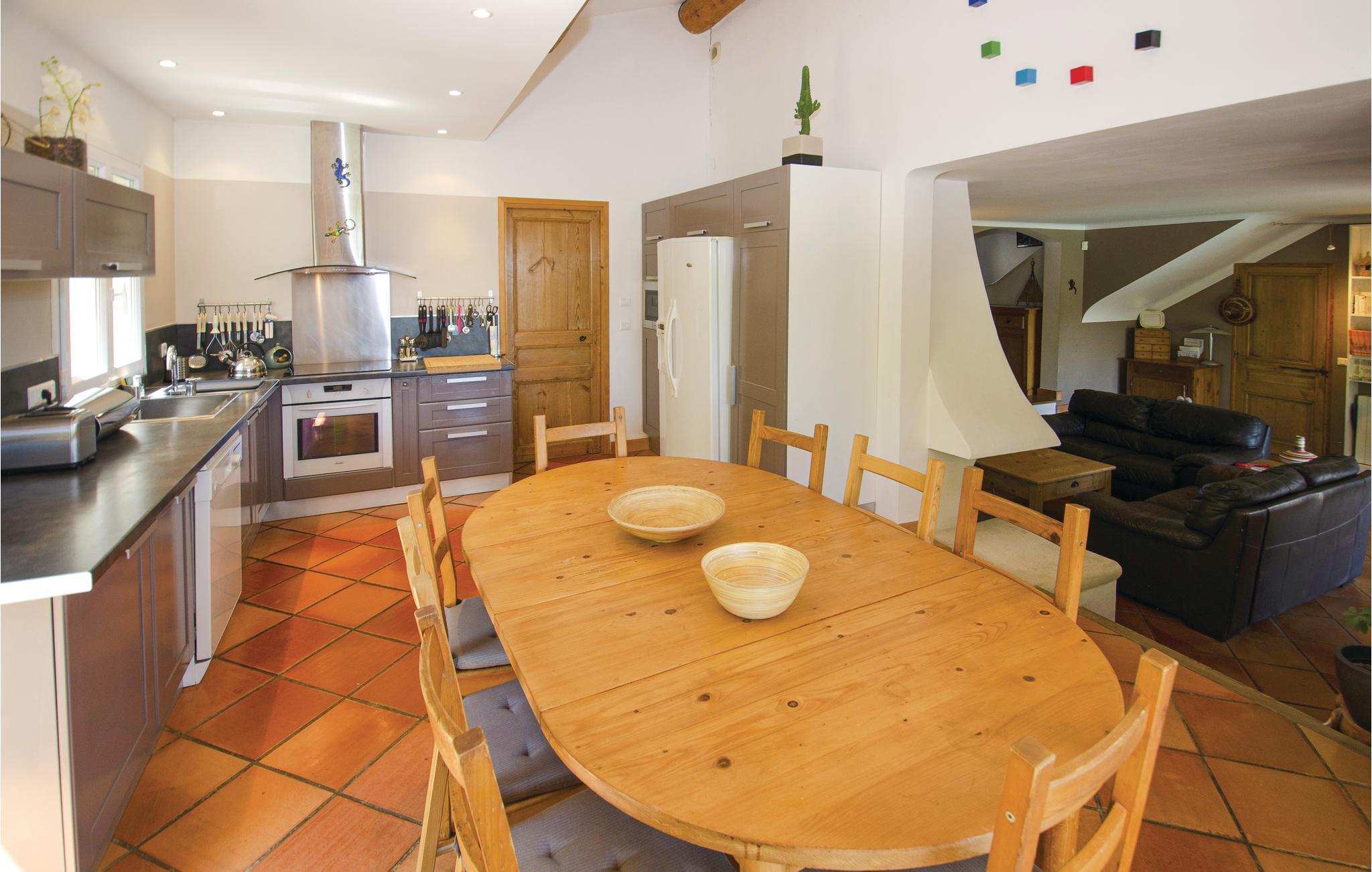 Glæd jer til en ferie i afslapningens tegn! Dette smukke feriehus med pool og plads til op til otte personer ligger ved landsbyen Caumont i Vaucluse. På den lukkede havegrund med oliventræer kan I hygge jer på den solrige terrasse med swimmingpool og integreret spa. I kan også spille bordtennis eller slappe af i hængekøjen. Efter en lang dag kan I lave med på grillen ved poolhuset. Husets indretning er indbydende og hyggelig, og gennem det moderne køkken kan I gå videre ud på terrassen og nyde udsigten over Luberon. I Caumont-sur-Durance kan I vandre på den markerede sti med panoramaudsigt over Mont Ventoux og Alpillerne. Snyd ikke jer selv for at opleve Avignon, Île de la Barthelasse, klippeformationen Rocher des Doms og L'Isle-sur-la-Sorgue. Denne charmerende by er hjemsted for det typiske provencalske marked samt flotte antikviteter og pyntegenstande.