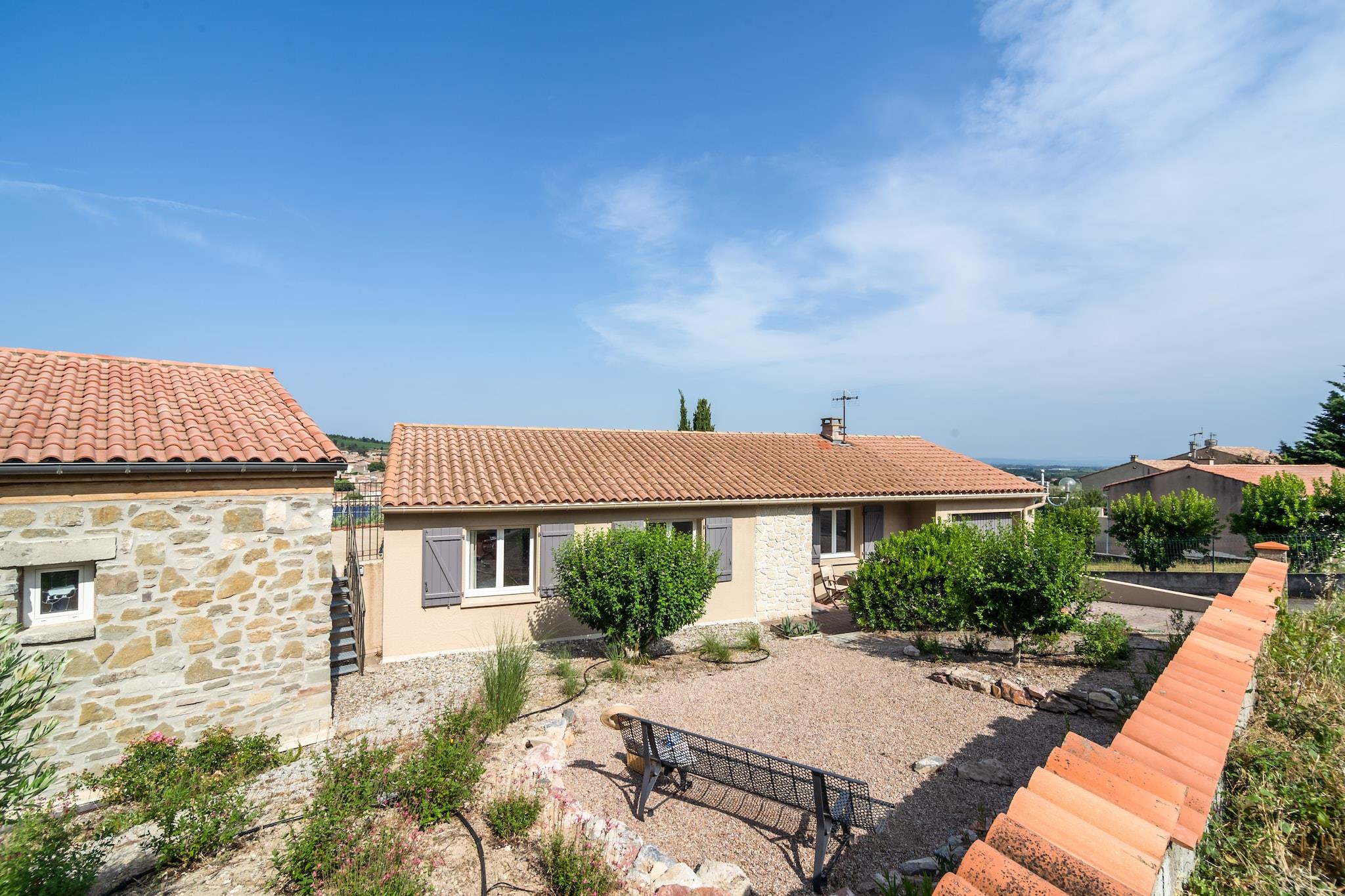 Nyd en dejlig ferie i feriehuset La Bergerie, der ligger i Minervois, katarernes land. Minervois er en del af regionen Occitania, Languedoc-Roussillon. Denne villa til 6 personer har masser af privatliv, en rummelig lukket have (820 m2), en overdækket terrasse og en privat swimmingpool (5 x 9 m, beskyttet af en elektrisk skodde). Villa La Bergerie har tre soveværelser, to badeværelser, WIFI, boccebane og aircondition. Nogle senge og madrasser blev fornyet i 2024. Huset er personligt indrettet og velholdt. En del af villaen er lukket og bruges ikke af ejeren eller andre under lejeperioder for at sikre din privatliv. Denne del (med glasfacade) vises ikke på billederne. Stuen har tv og pejs, så du kan slappe af indenfor. De to terrasser og grill er perfekte til aftener. Du kan også tilbringe tid ved den dejlige swimmingpool (saltbaseret) med havemøbler og liggestole eller i den smukke natur, der ligger lige ved siden af. Boulesbanen er perfekt til sjov. Barneseng og højstol er tilgængelige mod et mindre gebyr. Carcassonne lufthavn ligger 25 km væk, og togstationen ligger 47 km væk.
