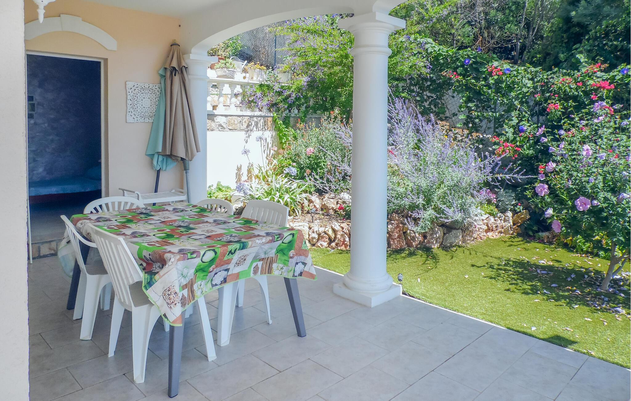 Træd ud på den store terrasse og nyd kystlandskabet. Find jeres yndlingssted på en af ??de mange liggestole ved den store pool. Nyd en forfriskende dukkert eller slap af under de overdækkede siddeområder. Brug de forskellige udendørs spiseområder til fælles måltider med udsigt. Villaen er omgivet af middelhavsplanter og tilbyder en rolig og privat atmosfære.