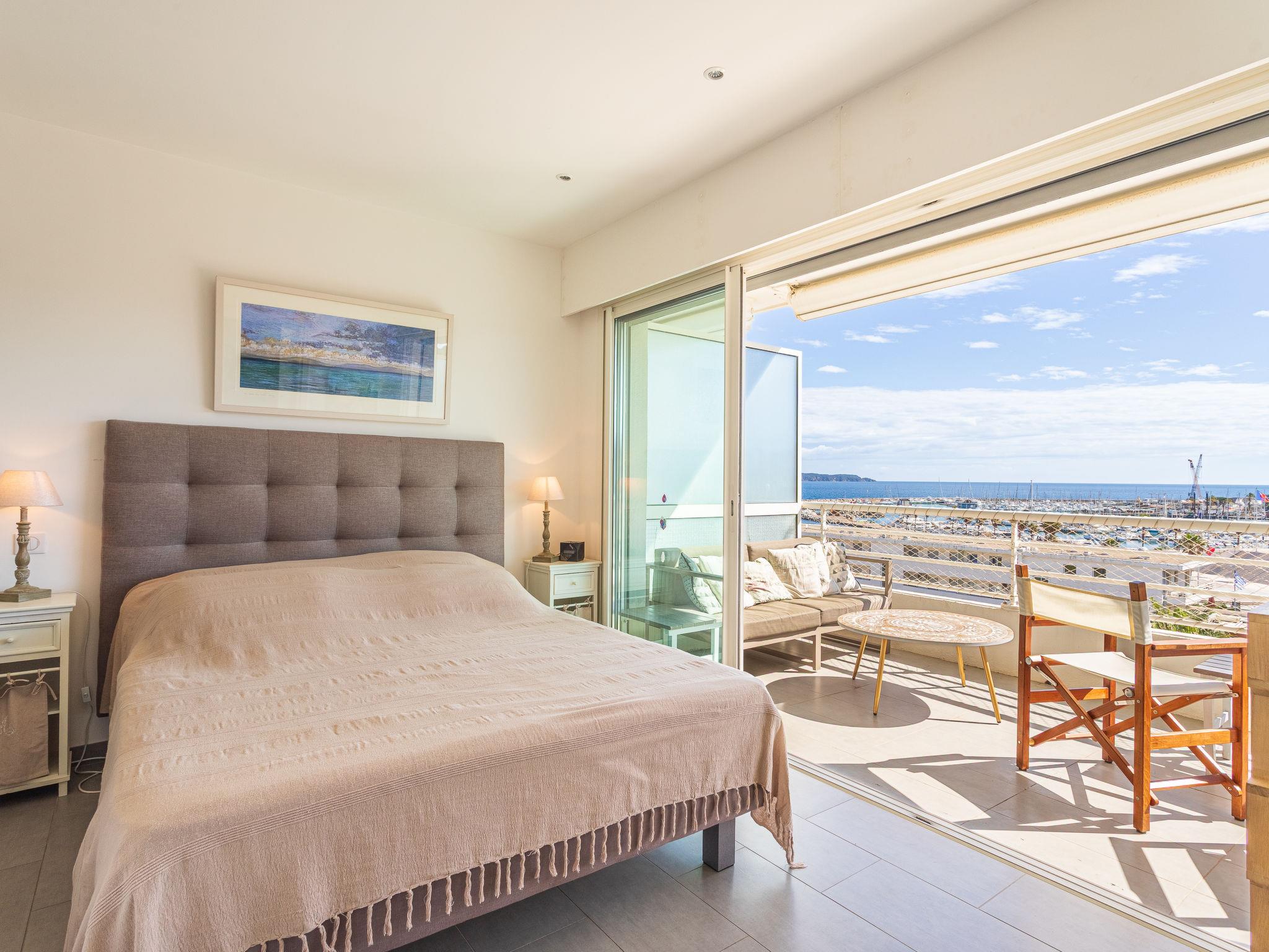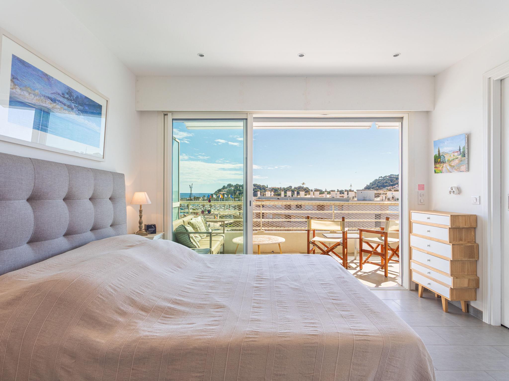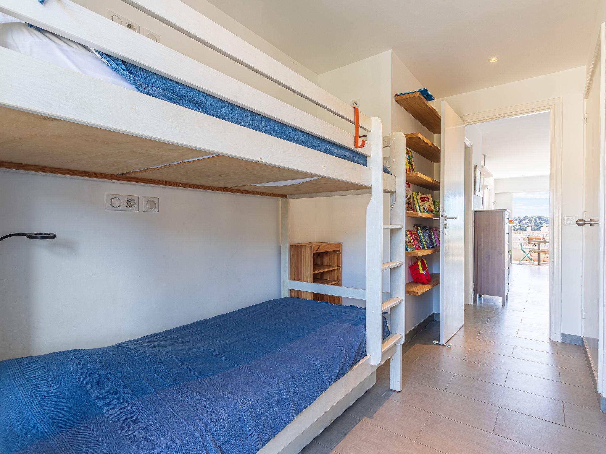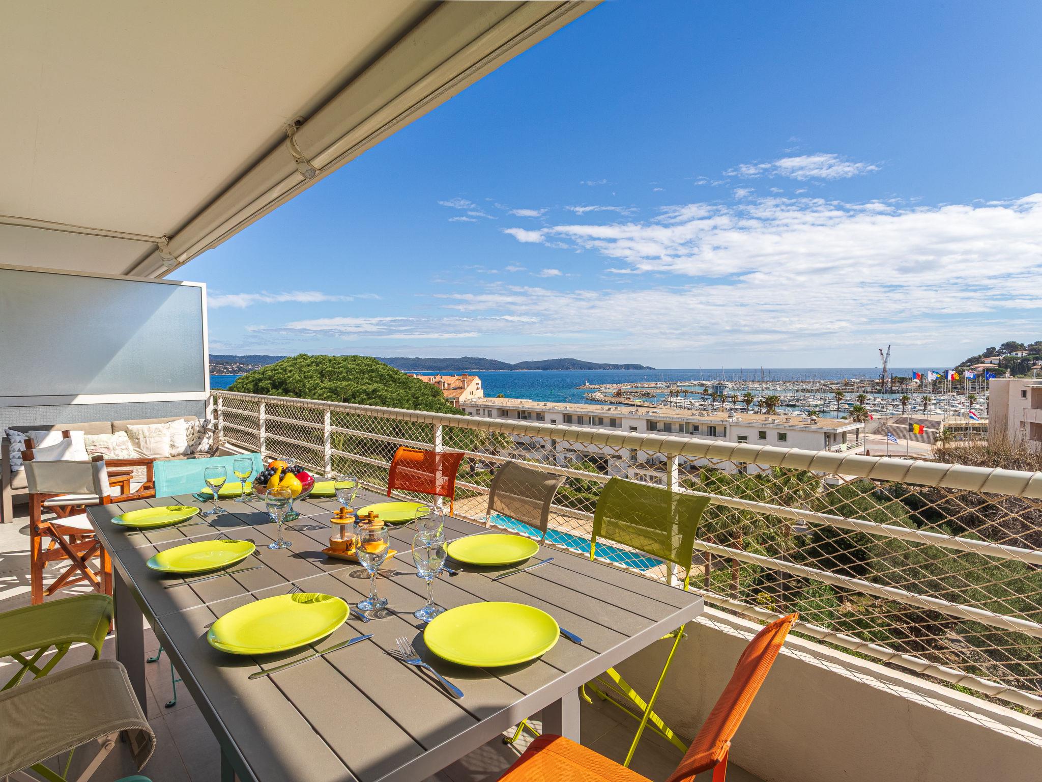 4-room apartment 75 m2 on 4th floor, south-east facing position. Bright, comfortable furnishings: living/dining room with TV (flat screen). Exit to the terrace. 1 room with 1 french bed (160 cm, length 200 cm), shower/WC. Exit to the terrace. 1 room with 2 x 2 bunk beds (90 cm, length 190 cm). 1 room with 1 french bed (140 cm, length 200 cm). Open kitchen (dishwasher, 3 induction hot plates, toaster, kettle, microwave, electric coffee machine, Capsules for coffee machine (nespresso) extra). Exit to the terrace. Bathroom, sep. WC. Air-conditioning. Large terrace 17 m2, south facing position and, east facing position, small terrace 6 m2, north facing position. Terrace furniture. Very beautiful view of the sea, the swimming pool and the port. Facilities: washing machine, dryer, iron, hair dryer. Internet (WiFi, free). Parking (fenced). Please note: non-smokers only. Smoke alarm. Offer by a private individual according to Art. 155, IV of CGI.