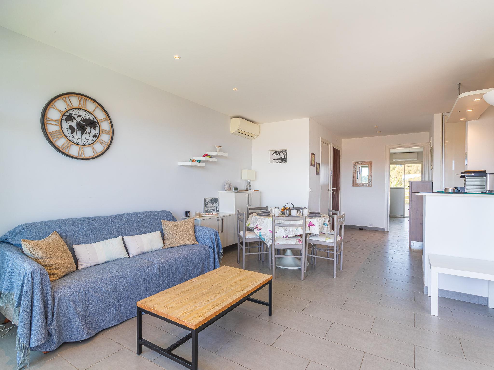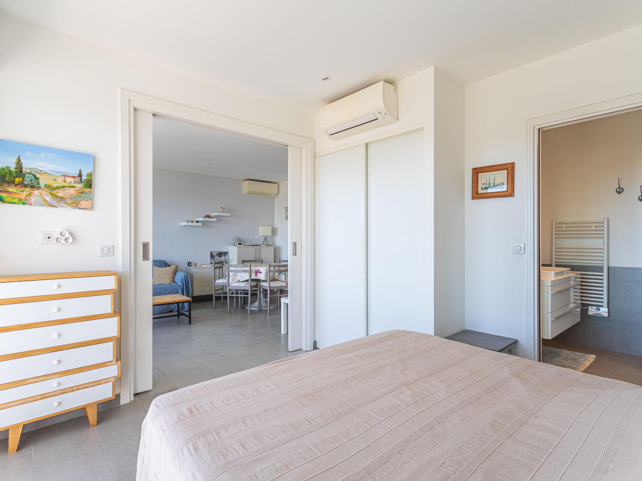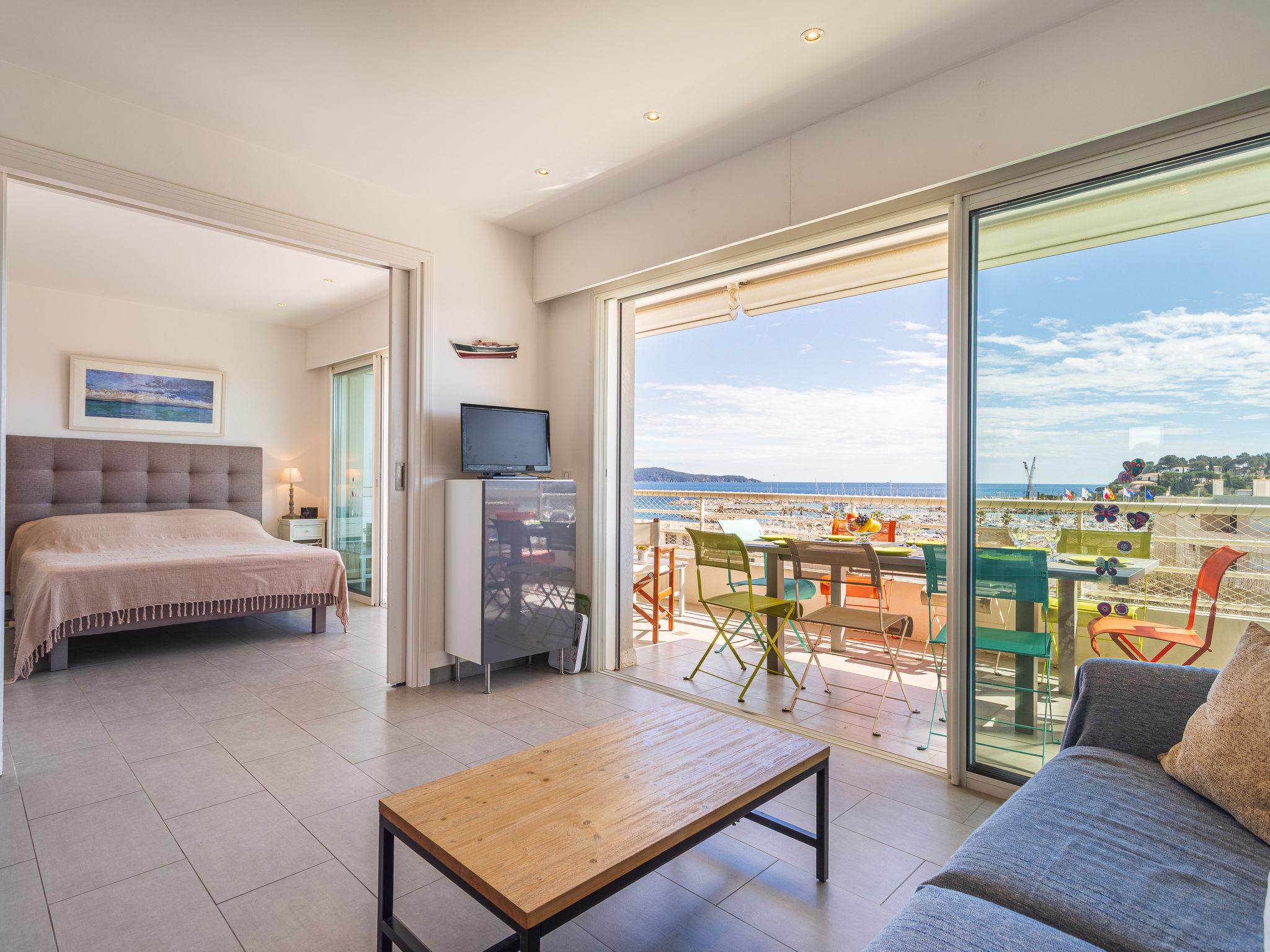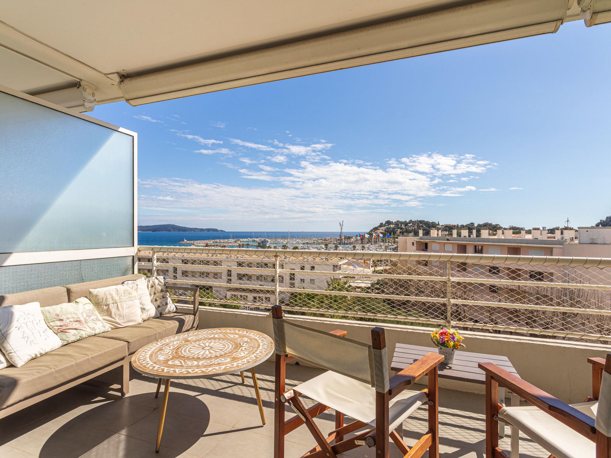 4-room apartment 75 m2 on 4th floor, south-east facing position. Bright, comfortable furnishings: living/dining room with TV (flat screen). Exit to the terrace. 1 room with 1 french bed (160 cm, length 200 cm), shower/WC. Exit to the terrace. 1 room with 2 x 2 bunk beds (90 cm, length 190 cm). 1 room with 1 french bed (140 cm, length 200 cm). Open kitchen (dishwasher, 3 induction hot plates, toaster, kettle, microwave, electric coffee machine, Capsules for coffee machine (nespresso) extra). Exit to the terrace. Bathroom, sep. WC. Air-conditioning. Large terrace 17 m2, south facing position and, east facing position, small terrace 6 m2, north facing position. Terrace furniture. Very beautiful view of the sea, the swimming pool and the port. Facilities: washing machine, dryer, iron, hair dryer. Internet (WiFi, free). Parking (fenced). Please note: non-smokers only. Smoke alarm. Offer by a private individual according to Art. 155, IV of CGI.