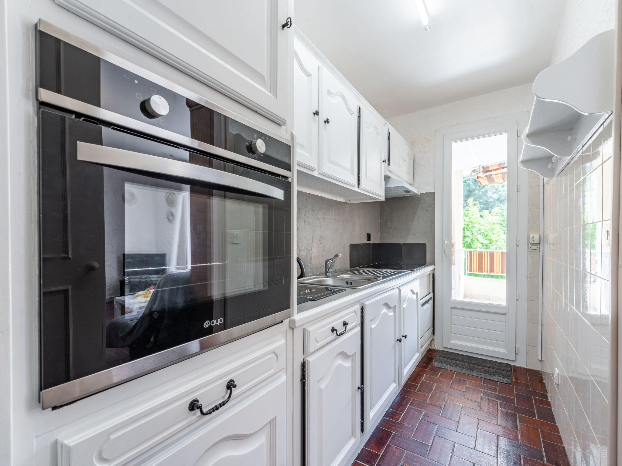 3-room apartment 53 m2 on 1st floor, south facing position. Partly renovated in 2021, comfortable and rustic furnishings: living/dining room with dining table and TV (flat screen). Exit to the terrace. 1 room with 2 beds (90 cm, length 190 cm). 1 room with 1 french bed (140 cm, length 190 cm). Kitchen (oven, dishwasher, 4 ceramic glass hob hotplates, toaster, kettle, microwave, freezer, electric coffee machine). Shower, sep. WC. Electric heating. Terrace 13 m2, south facing position. Terrace furniture. Facilities: washing machine, iron, hair dryer. Internet (WiFi, extra). Parking space n 37. Please note: non-smokers only. Smoke alarm. FR843045015