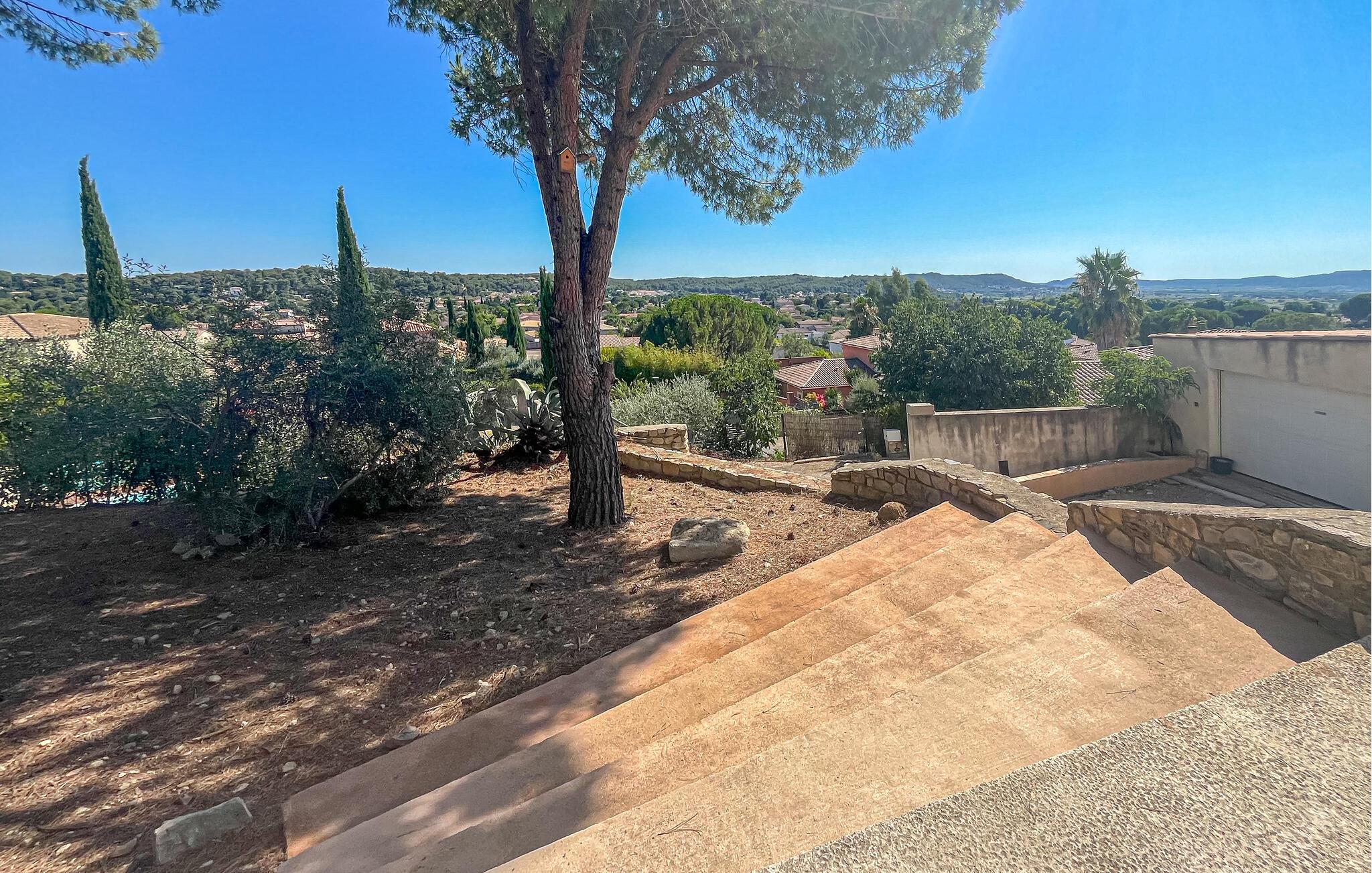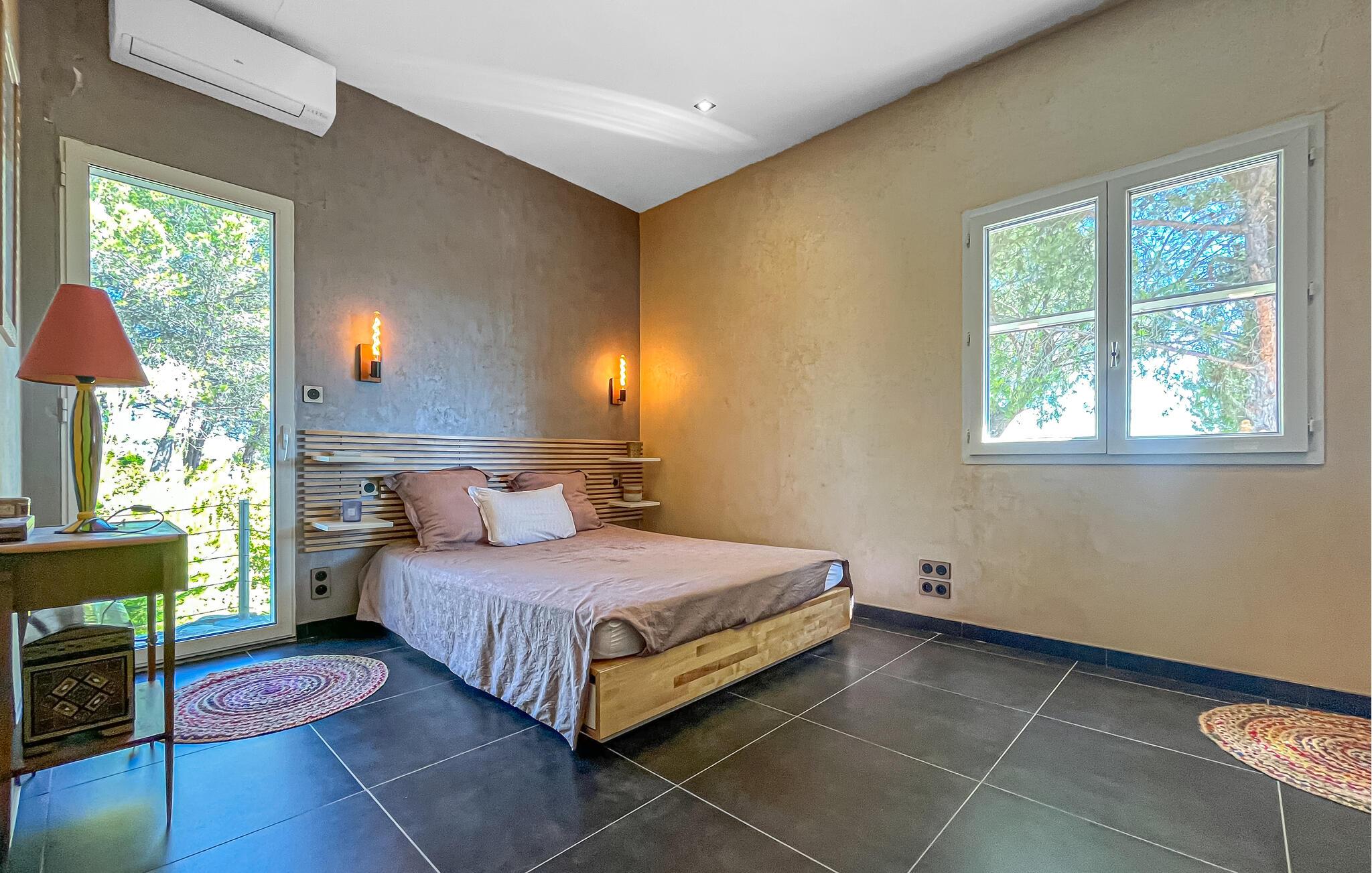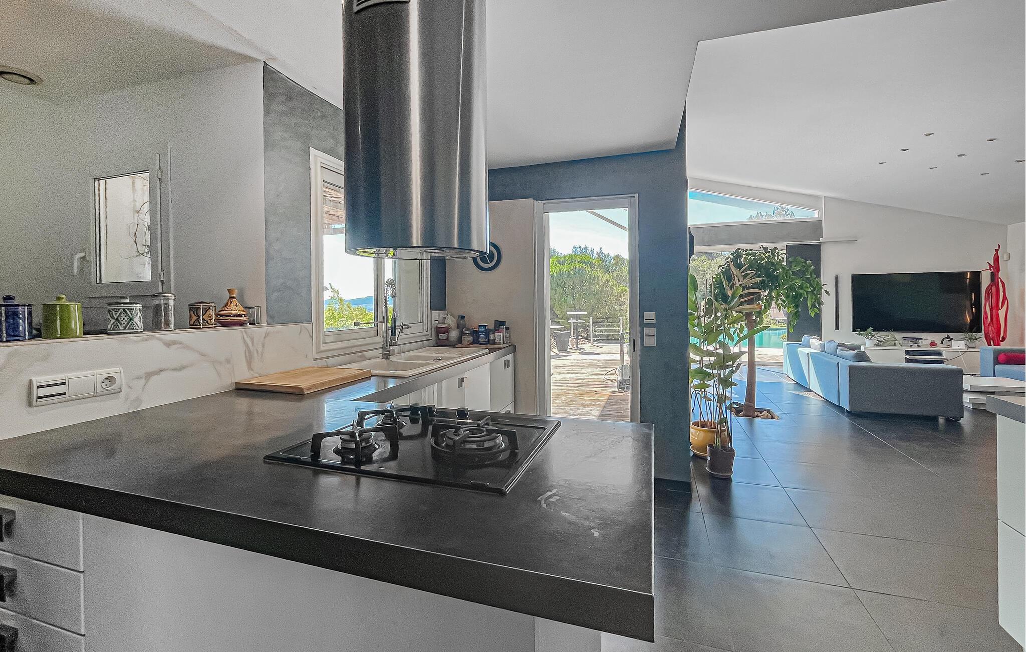 Denne luksuriøse villa kan fremvise en fredelig, høj beliggenhed med fortryllende udsigt over landskabet. Det lyse, stilfulde interiør byder på masser af plads til hyggelige måltider, hyggelige madlavningsaftener og livlige samtaler i det rummelige sofaområde.