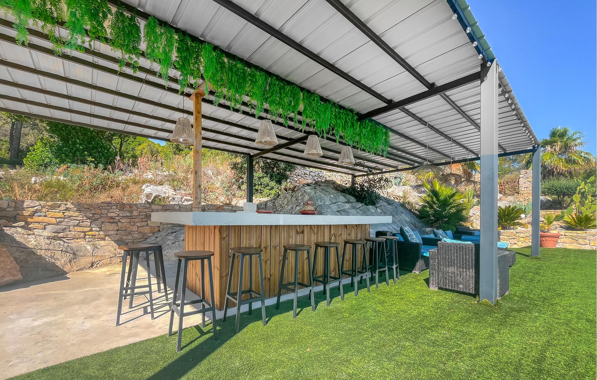 Nyd en afslappet svømmetur i den sensationelle infinity-pool som det første om morgenen og nyd den magiske middelhavsatmosfære med en espresso i skyggen af fyrretræerne, en drink i baren eller et glas vin i den hyggelige lounge. Sæt jer til rette i spabadet, og glæd jer til stemningsfulde timer ved bålstedet eller grillen.