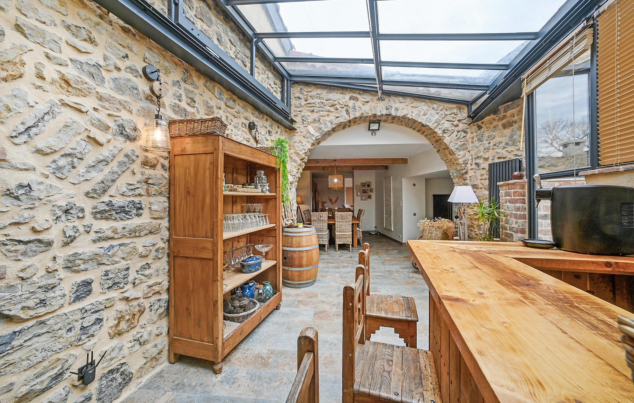 Stenhuset blev opført i 1700-tallet, men er blevet gennemrenoveret på en helt fabelagtig facon, og her venter jer en skøn base for en ferie med en større familie eller venneflok. Indretningen fremtræder på én gang rustikt og komfortabelt med en flot kombination af synlige stenvægge, varme træbjælker og gode, moderne faciliteter. Sov godt igennem i de behagelige soveværelser, inden I mødes til morgenmad i det veludstyrede køkken. Herfra får I en flot udsigt over landskabet, og om aftenen kan I hygge jer i al slags vejr ved baren i udestuen.