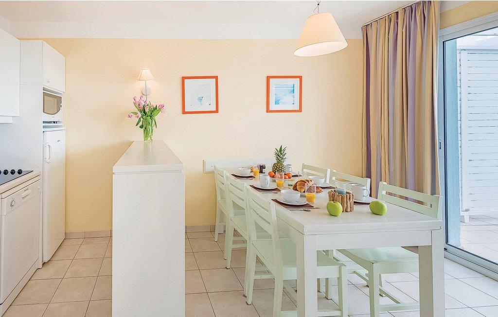 Fra opholdslokalet går I ud på balkonen, som er et fremragende sted at nyde morgenkaffen og solens første stråler. Herefter kan I gå ned til en af ??de to pools, der deles med de andre gæster eller til stranden. Og måske dagen skal gå på hæld med et glas vin eller to i aftensolen?
